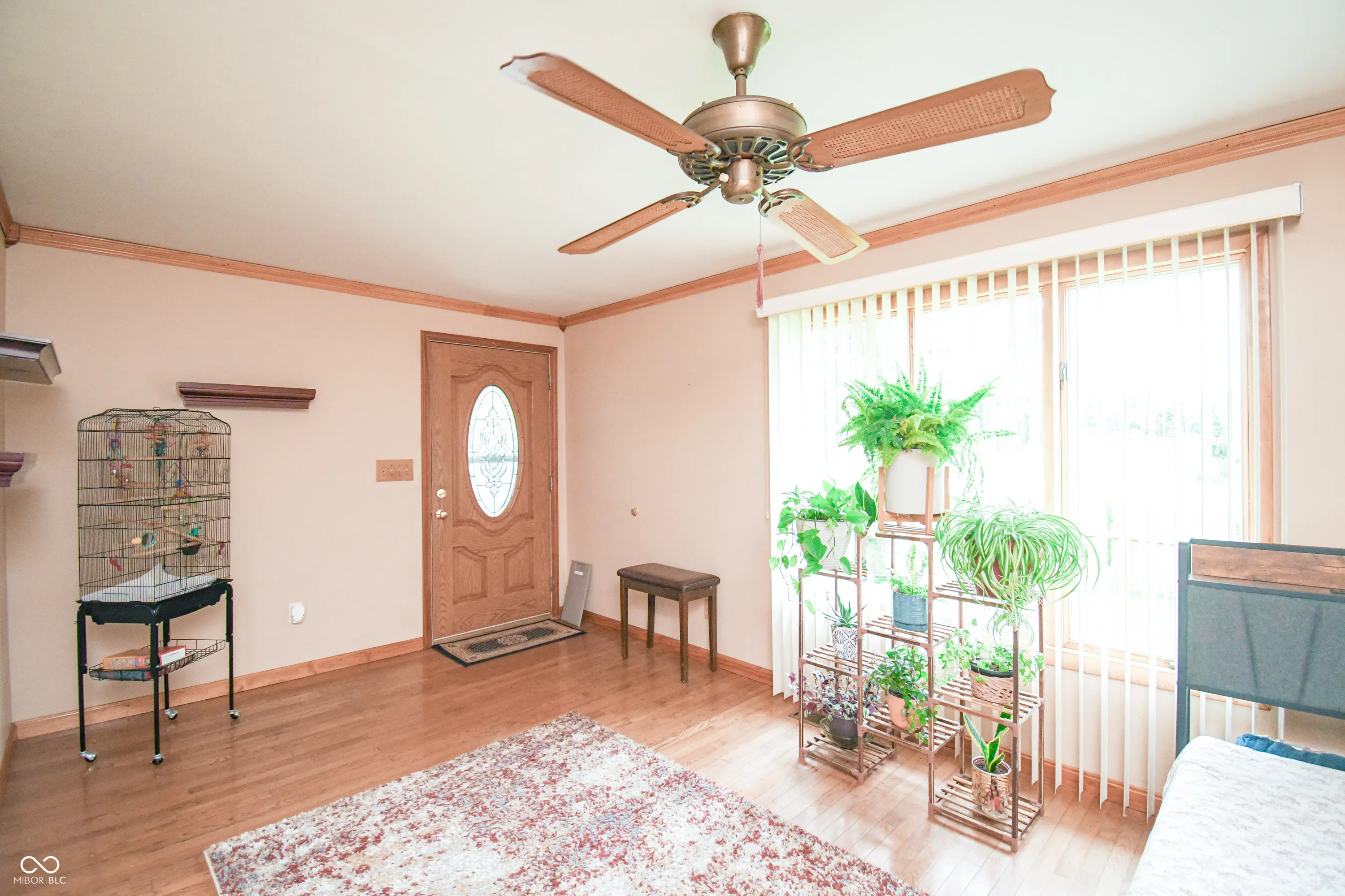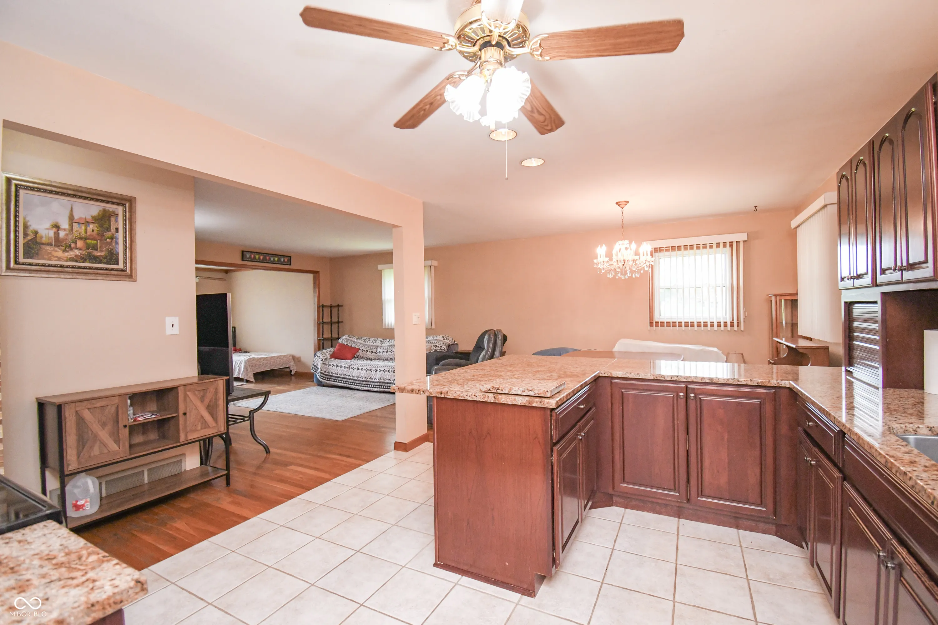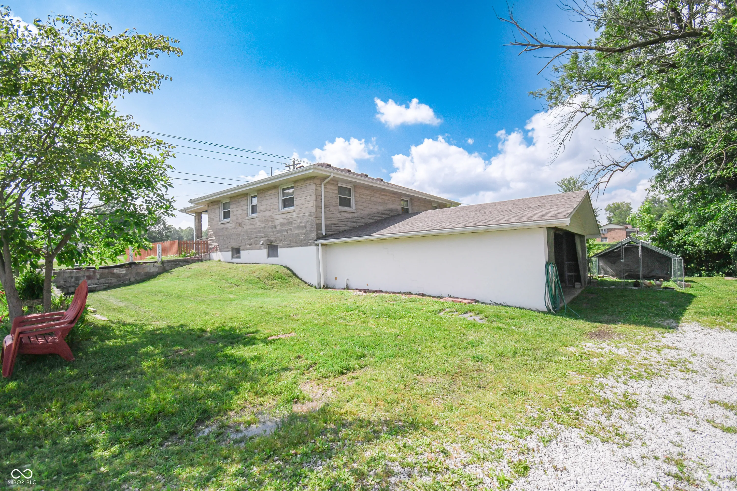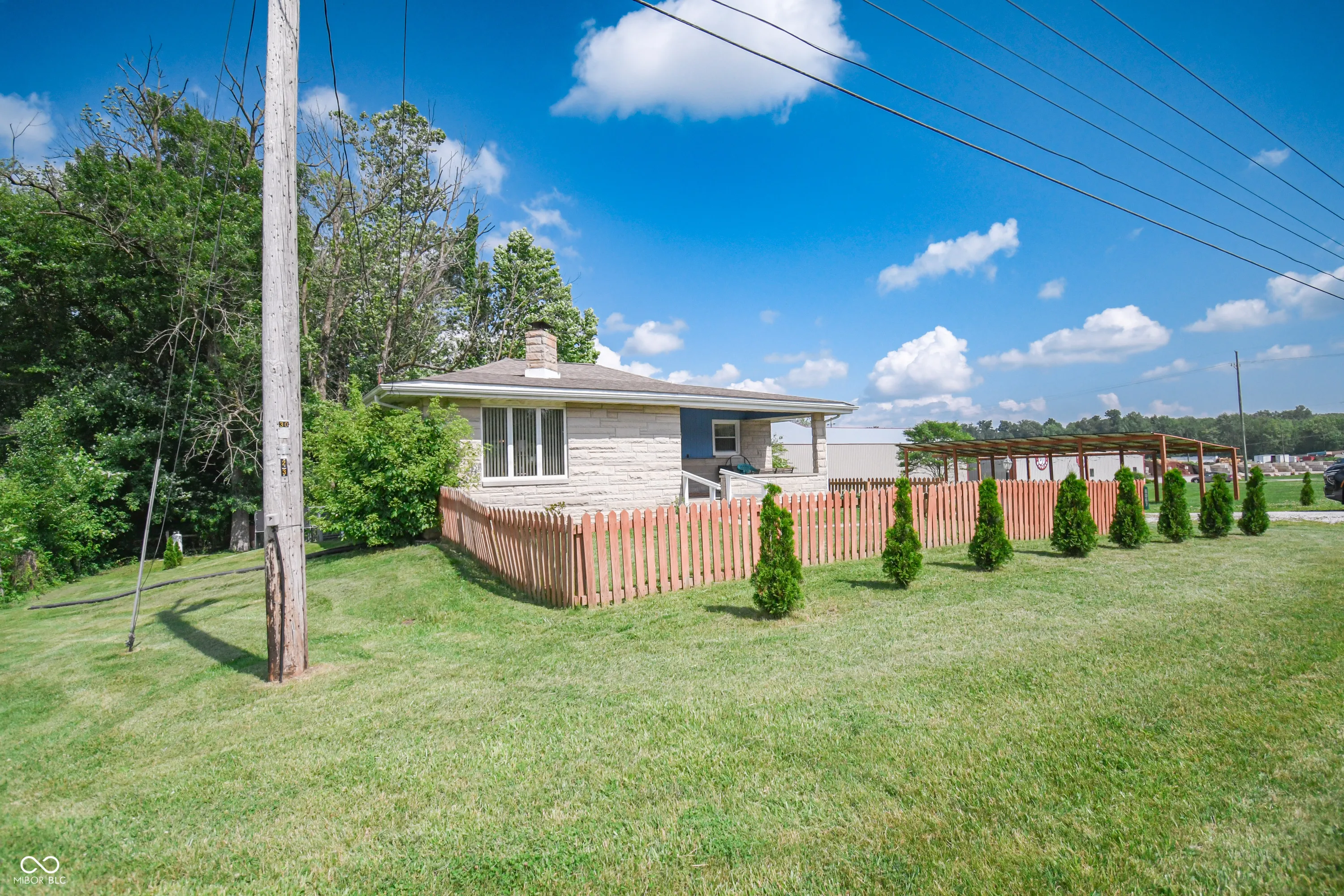 Welcome to this well-maintained Bedford stone home situated on a spacious 1-acre lot, offering the perfect blend of character, comfort, and convenience. This 3-bedroom, 1.5-bath home features an inviting covered front porch and fenced front yard. Step inside to find a warm and welcoming interior with updates that include newer windows, a tankless water heater, well pump, and pressure tank, providing modern efficiency and peace of mind. The home is equipped with LP gas forced-air heat and central air conditioning for year-round comfort. The walkout basement offers great potential for additional living space or storage, while the attached oversized 32×24 garage provides ample room for vehicles, tools, or a workshop. The kitchen comes with granite countertops, backsplash, plenty of cabinetry, and is fully equipped with all appliances, even the washer, dryer, and water softener stay, making this home truly move-in ready. Please note: Solar panels and solar equipment will not remain with the property. Don’t miss the opportunity to own this solid, well-kept home with generous outdoor space, excellent updates, and true small-town charm!