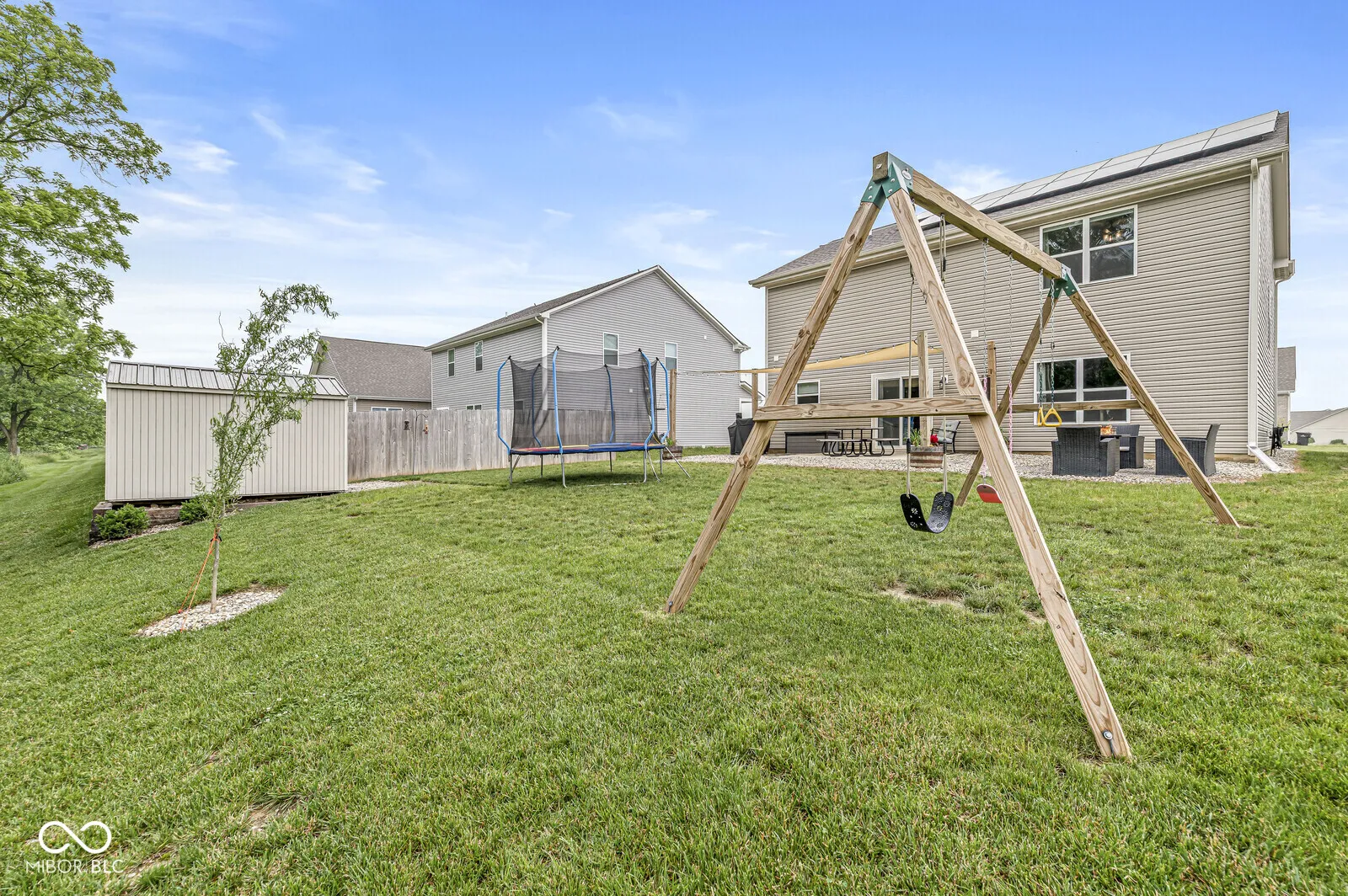 Maplewood at Huntzinger Farms! Gorgeous 2023 Build, 4 Bedroom and 2 1/2 Bath Home with Solar Panel Plant in Pendleton Schools. A large Foyer Entry greets you upon entry. A Spacious Great Room is open to eat Kitchen and Breakfast Room. An Eat-in-Kitchen with Breakfast Room, high efficiency newer Samsung appliances with induction range, quartz countertops, pantry, center island, and beautiful cabinetry. Forma Dining Room with solid surface flooring. Bonus Room/Loft makes for a great second living space. Huge Primary Bedroom with tray ceilings and a full en-suite with double sink, large step-in shower, and with custom shelving in the walk-in-closet. Three roomy additional bedrooms, all steps from the Full Family Bath with double sinks and full tub/shower. Step outside of the Great Room and Kitchen to the concrete open covered patio and grilling/cooking area. A stone fire pit area, great for summer nights! Two car Attached Garage. New large storage shed. A 6.15 kW capable Solar Panel Plant! The Solar Power produces enough energy to power the home from sunrise to sunset. Solar Panel’s come with a 25 year warranty on modules, inverters, racking, and mounting. 25yr warranty on labor. 25 year warranty on plant performance Hanwha Q.Peak Duo Solar Panels. Reduce your dependence on harmful, non-renewable energy sources. Almost non-existent energy bills in the summer months and reduced energy cost in the winter with year-round performance. Solar energy is sustainable, renewable, aiding in minimizing carbon impact and virtually maintenance free. Sell over-produced energy back to the electric company. Builder Warranty from 9/1/2023…a 2 year coverage on all mechanical systems: materials and workmanship, plumbing, heating/air conditioning, and electrical systems. A 4 year coverage on roof and roof system [material and workmanship]. A 10 year coverage on structural defects, footings, beams, trusses, bearing walls, structural fasteners. Minutes from Downtown Pendleton and I-69!