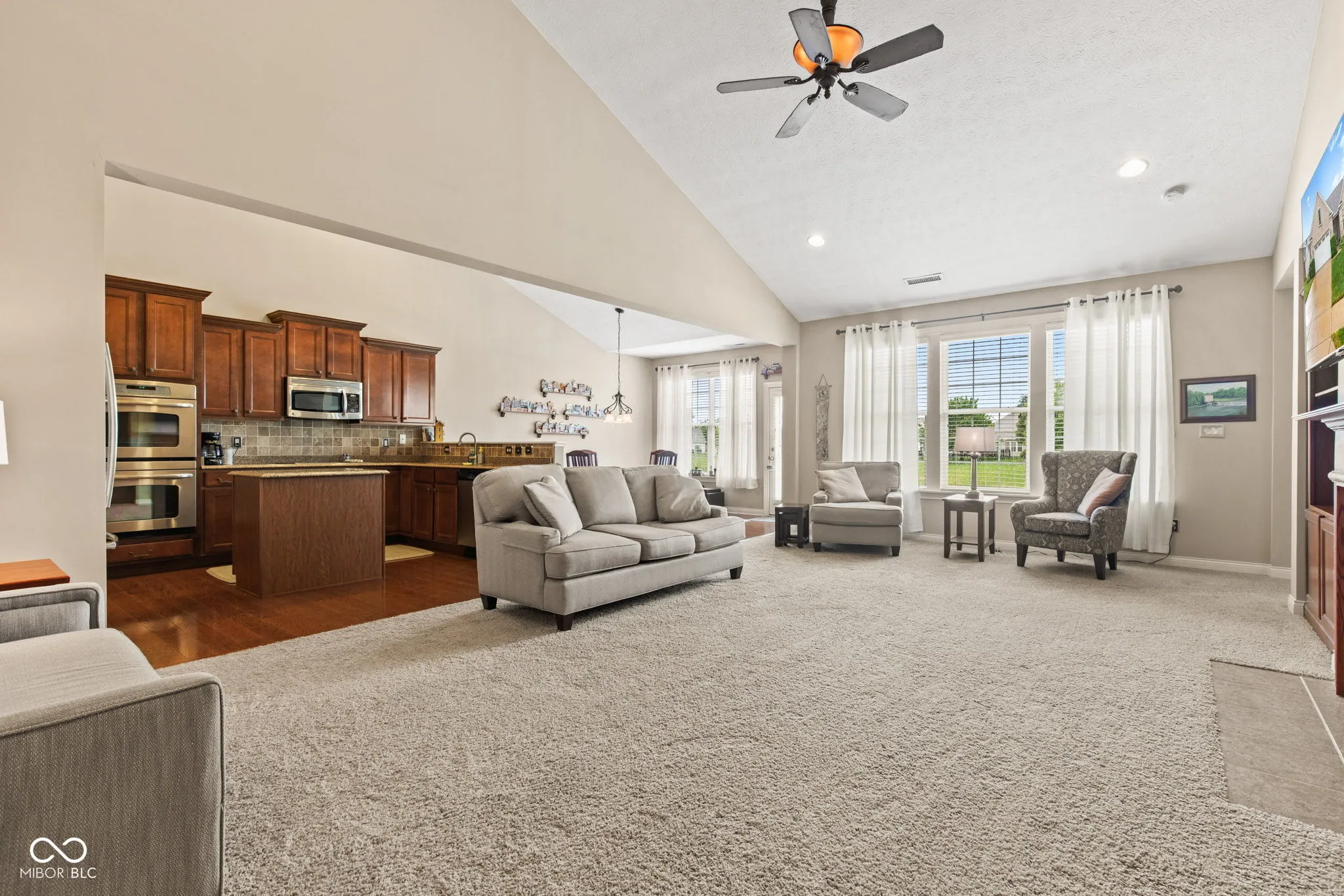 Discover this meticulously maintained residence nestled in the desirable Greens at Prairie Crossing in Noblesville. Boasting an impressive 2,852 square feet, this home features three spacious bedrooms and two-and-a-half bathrooms, accommodating comfort and elegance. Step into the expansive living room designed for entertaining. Adjacent, the dining room awaits special occasions, beautifully balancing functionality and style. Retreat to the stunning en-suite, complete with a luxurious walk-in closet and tranquil ambiance. The kitchen, a chef’s delight, boasts a double oven, making meal preparation a breeze. Step outside to the inviting back patio, where serene pond views provide a picturesque backdrop. Cozy evenings can be spent near the gas fireplace, fostering warm memories. The property is enhanced by a two-year-old roof and new windows in the loft, ensuring peace of mind for years to come.