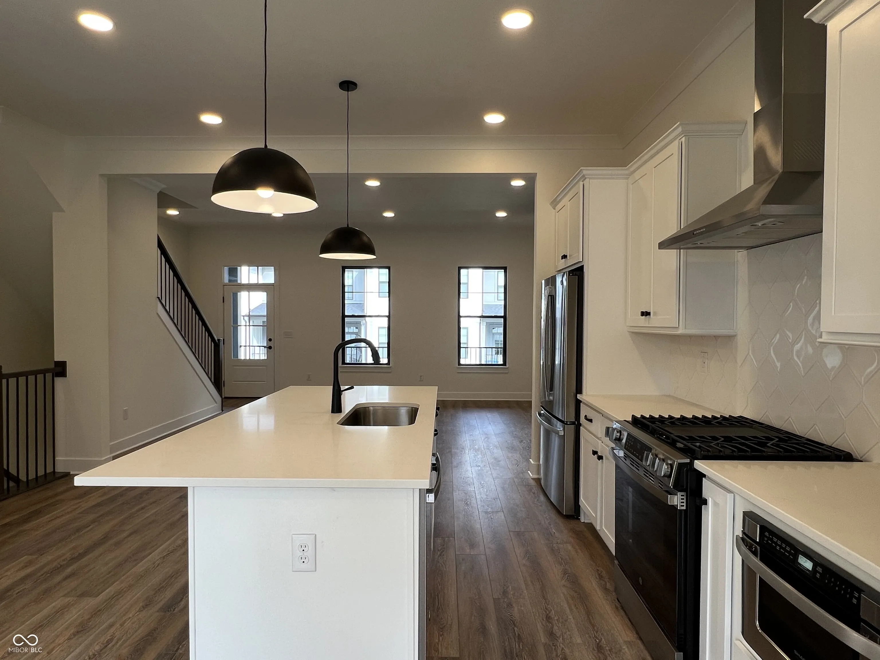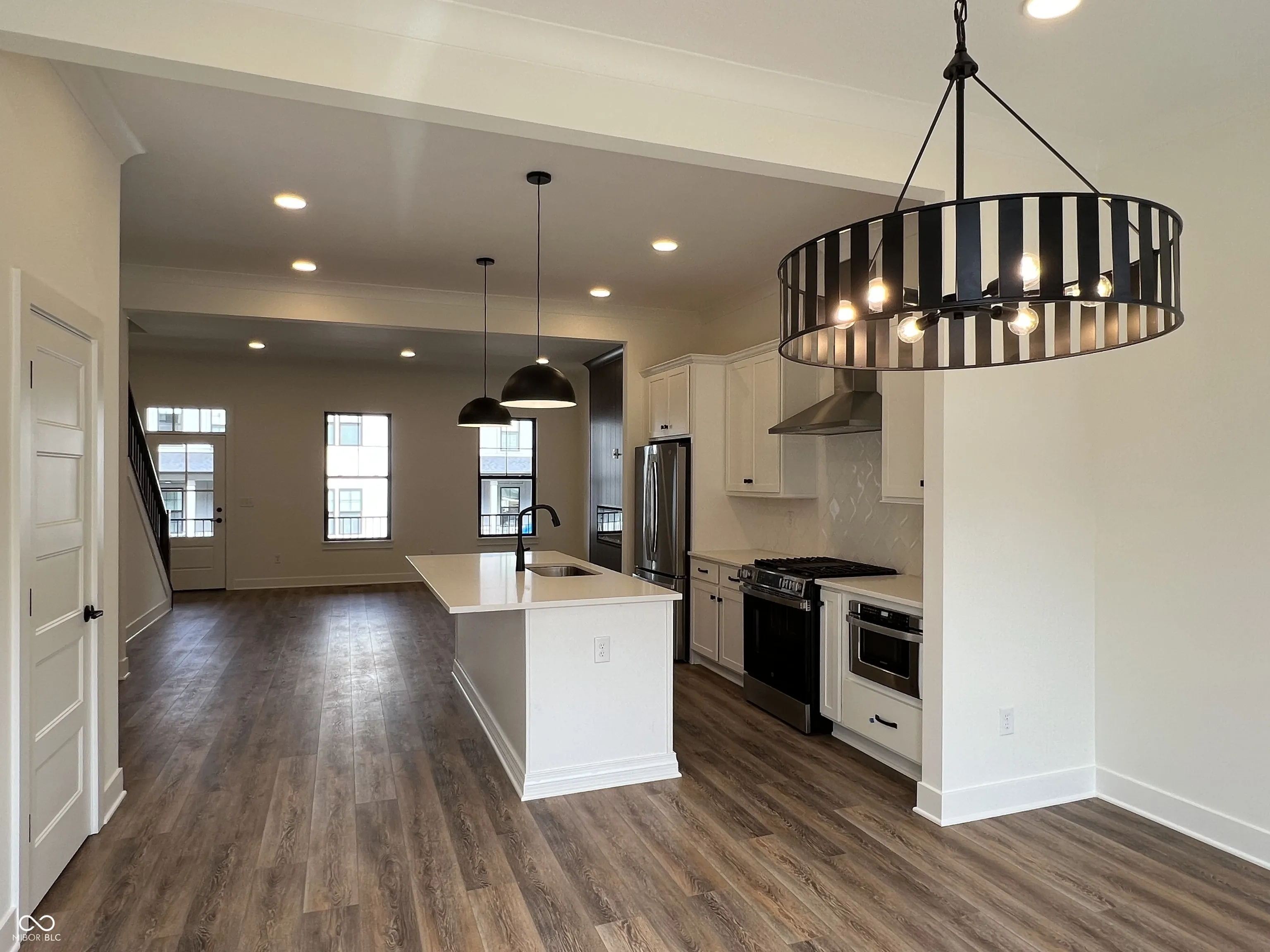 Enjoy the lock-and-leave lifestyle in the heart of downtown Carmel with this luxurious townhome built by Old Town Design Group. The versatile entry-level bedroom with private WIC & bath is available for use as a private retreat or a functional home office. Upstairs you’ll find an open-concept floor plan, with great room, dining, and kitchen, plus a 22×8 covered outdoor living area off of the great room. Prepare culinary delights in a well-equipped kitchen featuring quartz countertops, painted cabinetry, and stainless steel appliances, including a microwave drawer and a gas convection oven with built-in air fryer. The third floor boasts the conveniently located laundry room and 2 bedrooms, including the primary suite with floor-to-ceiling tiled shower and double vanities. Other amenities include: raised ceilings on all levels, pre-wiring for speakers in great room, large covered front porch, additional media outlets, custom shelving in all closets and pantries, and an electric fireplace with painted accent wall in the great room. Relax by the community pool, stay active in the fitness center, or pamper your furry friend at the dog wash station — all located within North End and available to residents. Also within the North End community, you’ll find Indie Coffee Roasters, Ash & Elm Cider’s Carmel Taproom, Fields Market Garden & Le Petit Gateau bakery, as well as Freelands, Carmel’s newest farm-to-table restaurant. Walking paths connecting to the Monon Trail allow for easy access to Downtown Carmel.