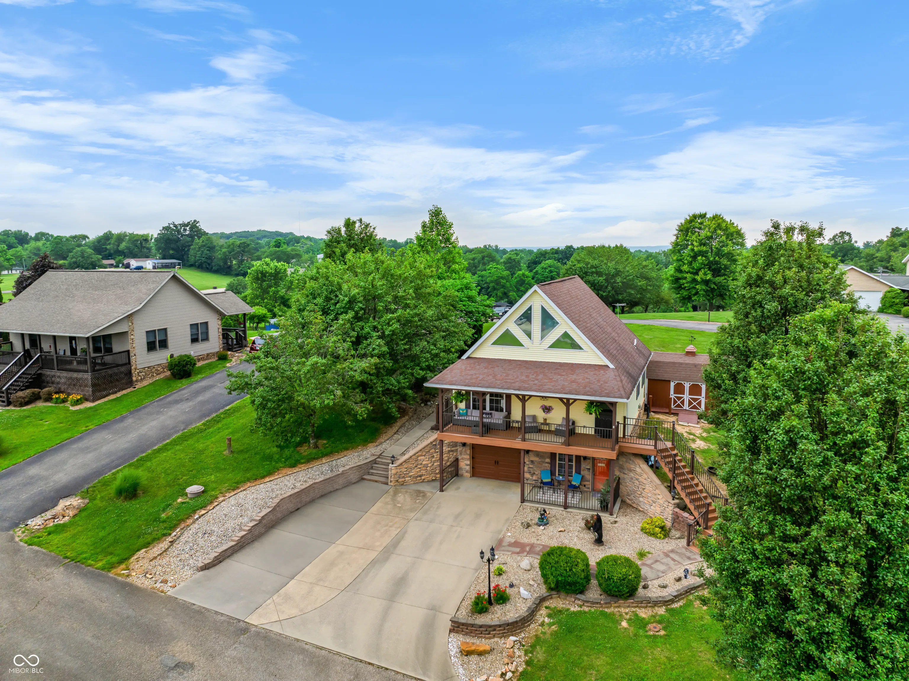 ASK HOW THIS HOME QUALIFIES FOR A LOWER RATE. Motivated Sellers and Immediate Possession. Modern Lake Living with a Rustic Twist – Minutes from Lake Patoka! Tucked in the heart of Southern Indiana’s natural beauty, this stunning retreat offers the perfect blend of modern elegance and cozy cabin charm. With panoramic views, multiple outdoor entertaining spaces, and thoughtful design elements throughout, this home is more than just a getaway-it’s a lifestyle. Step inside to soaring vaulted ceilings and an open-concept main level featuring a gas fireplace that sets the mood year-round. The kitchen shines with rich cherry cabinetry, tons of natural light, and a layout perfect for cooking, gathering, and late-night snack missions. Downstairs, the walk-out basement brings warmth and character with cedar walls and pine ceilings, creating a rustic lodge feel that’s as inviting as a warm cup of cocoa. Whether you’re hosting a crowd, or just stretching out, there’s plenty of room for guests, games, or both. Entertain like a pro with multiple Trek decks ideal for grilling, chilling, or just catching a cotton-candy sunset over the trees. Outside, you’ll find a large shed, and space to let your imagination run wild-add a barn, pool, garden, or even a hobby vineyard (because, why not?). And yes, you’re walking distance to both a local brewery and winery-cheers to that! Whether you’re searching for a permanent residence, vacation home, or looking for a place to retire and relax, this gem near Lake Patoka checks every box. Modern. Scenic. Versatile. And ready for your next adventure.