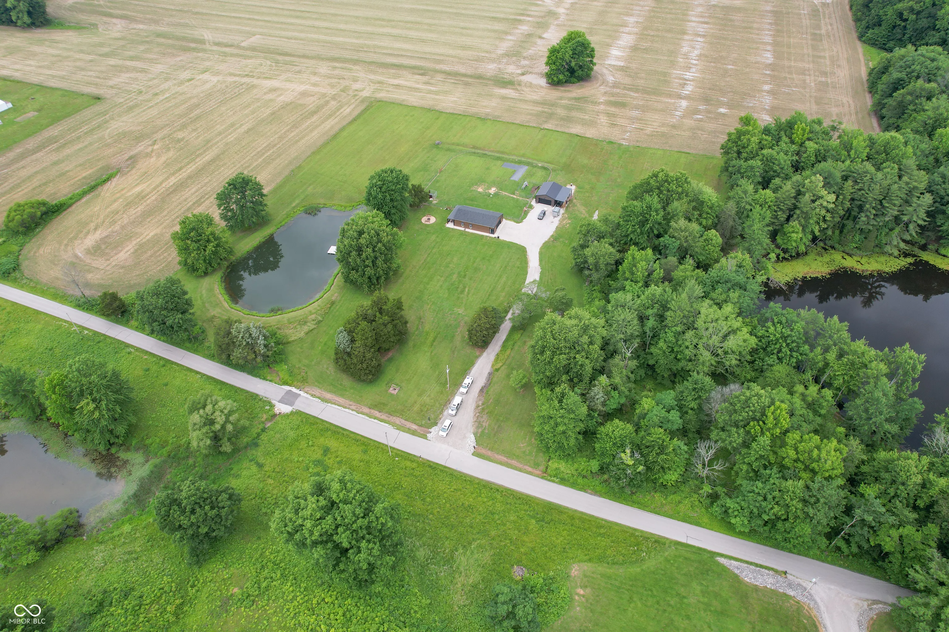 Welcome to your country oasis! Tucked away between North Vernon and Madison is a 5.8 acre piece of paradise. From sunrise to sunset the property feels like vacation. Enjoy fishing, swimming or relaxing on your private, stocked pond. The pond has a new trex dock complete with a bench. Enjoy spending time with friends and family around the fire pit or sunsets under your covered porch. The small bungalow has been meticulously maintained. The updated kitchen features white cabinets and champagne bronze fixtures along with brand new stainless steel refrigerator. Enjoy shiplap walls and custom trim ceilings. The primary bedroom window has a beautiful view of the pond. The bonus room could be used as a second bedroom, office, or walk-in closet. The home also has a 780 sq. ft. attached garage which is currently used as extra living space and makes a perfect place to entertain. The garage has a half bath, storm shelter, and tons of storage. The home also has a pole barn with concrete floors, electric, and lean-to with RV hook-up. If you love to entertain, there are camper/RV hook-ups by the pond as well. Bring your friends and family out for the weekend. The home has a brand new roof, gutters, paint, driveway culvert and stone and more. Come check out this quiet oasis and you’ll feel like you’re always on vacation.