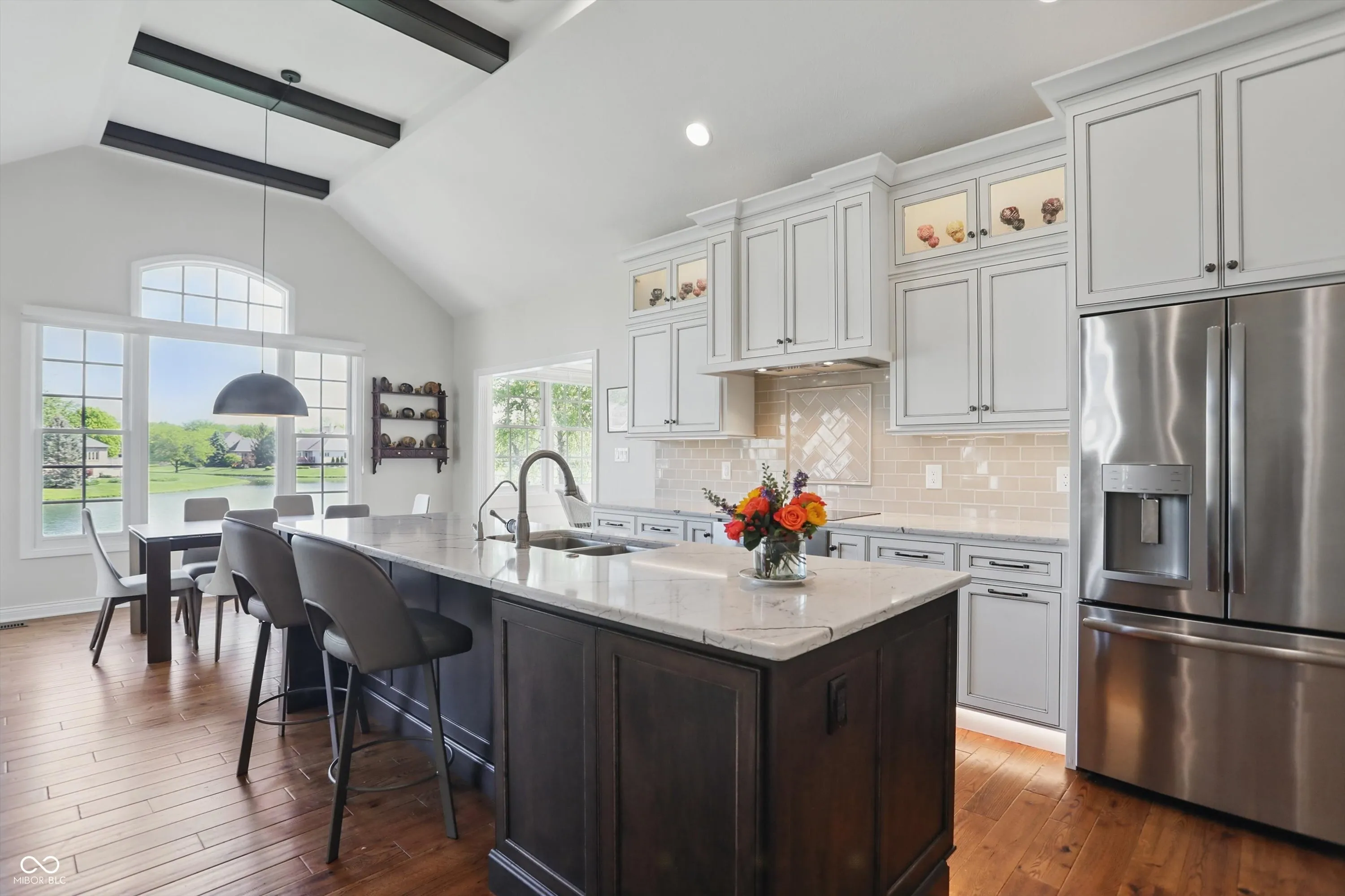 Discover this exquisite 3-bedroom, 3.5-bath full brick ranch in Chapman’s Claim, nestled among picturesque tree-lined streets. This luxurious home boasts a designated dining room and a great room with 14-foot ceilings, built-in bookcases, hardwood floors, and multiple places for stunning water views. The newly remodeled eat-in kitchen features Amish cabinetry, a beamed ceiling, and custom lighting. The primary suite offers cathedral ceilings, sunroom access, and an ensuite with a tile shower, soaking tub, new vanity, and large walk-in closet. Main-floor laundry adds convenience. The finished basement includes large windows, a rec area, a wet bar, a third bedroom, and a spacious flex room. Enjoy privacy and water views from the back deck. The 3-car side-load garage provides high ceilings, a Tesla charger, and stairs to an oversized storage area (374 sq ft). Recent updates include: Kitchen ’20, Roof ’20, New water softener, tankless water heater ’21, HVAC ’24, hardwood floors ’20, garage door openers ’19, Bosch Appliances ’21. Ask your Realtor for a complete list of updates available to them on the listing. Multiple Offers: Offer deadline of 5pm on 6/29 with seller decision time to be 6/30 by 5pm. No escalations, please have expirations match seller’s decision timeline, please send highest and best.