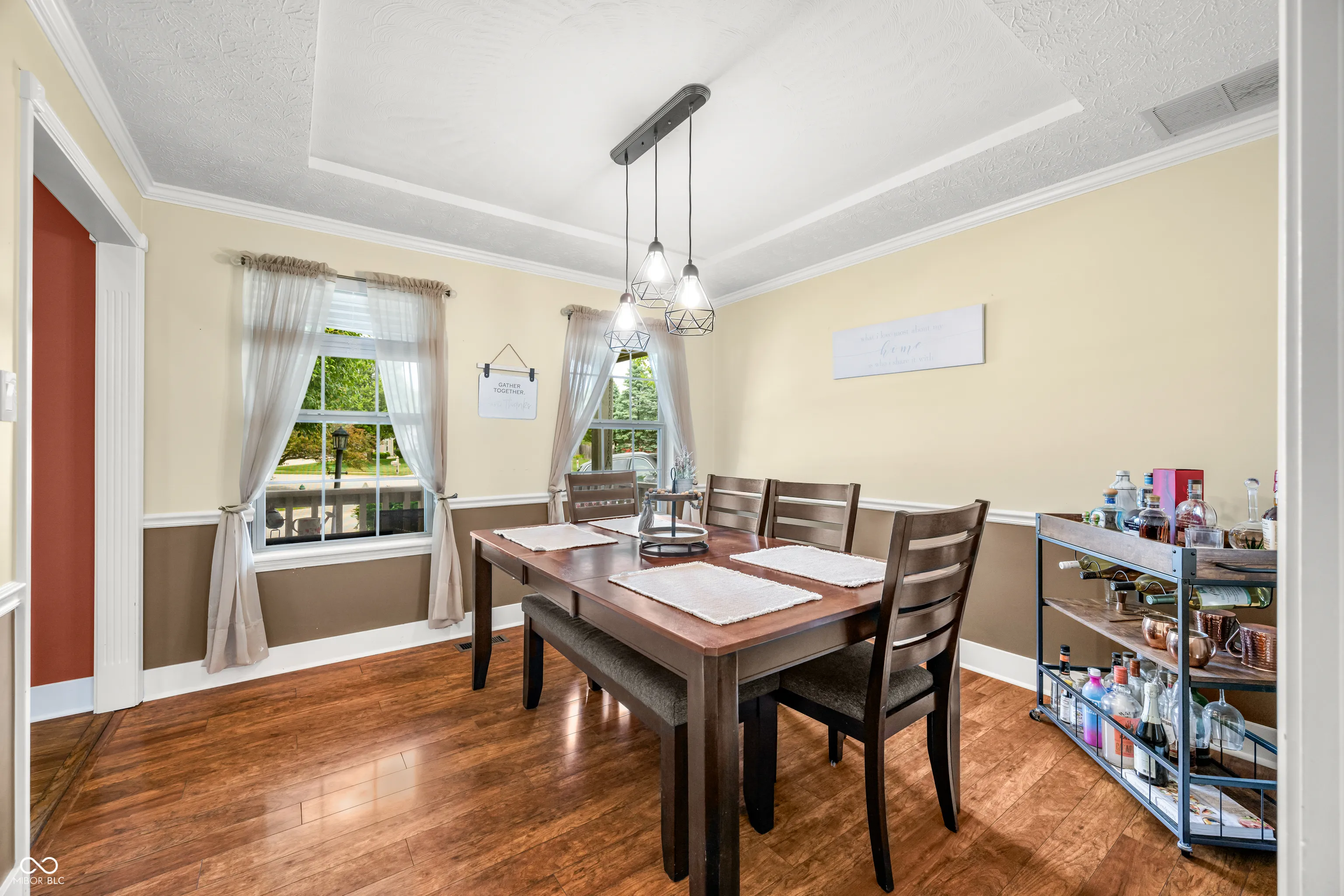 Nestled at 7833 Meadow Bend DR, Indianapolis, IN, this single-family residence in Marion County presents an attractive property in great condition. The heart of this home is undoubtedly the living room, where a fireplace creates a cozy atmosphere, perfect for gathering with loved ones, while the beamed and vaulted ceiling adds architectural interest. Imagine relaxing evenings spent in this inviting space, enjoying the warmth of the fire and the grandeur of the ceiling above. The primary bedroom offers a tranquil retreat with the addition of crown molding, providing an elegant touch to the room. Envision waking up each morning in this serene space, ready to start your day feeling refreshed and rejuvenated. The bathroom offers a spa-like experience with a tiled walk-in shower, providing a luxurious space to unwind, and a double vanity, providing convenience and ample space. The kitchen features a kitchen bar and peninsula, creating a functional and stylish space for meal preparation and casual dining. Imagine preparing your favorite meals in this well-appointed kitchen, with plenty of counter space and a convenient bar area for entertaining. Beyond the interior, this property offers an outdoor dining area and patio, ideal for enjoying meals, gatherings, or relaxation in the fresh air. The woods view provides a beautiful backdrop for outdoor activities, while the porch and shed offer additional space for storage and relaxation. With 2625 square feet of living area on a generous 12320 square feet lot, this two-story home also features a laundry room and walk-in closet, blending comfort and practicality. Seize the opportunity to own this wonderful home, offering a blend of comfort, style, and outdoor enjoyment.