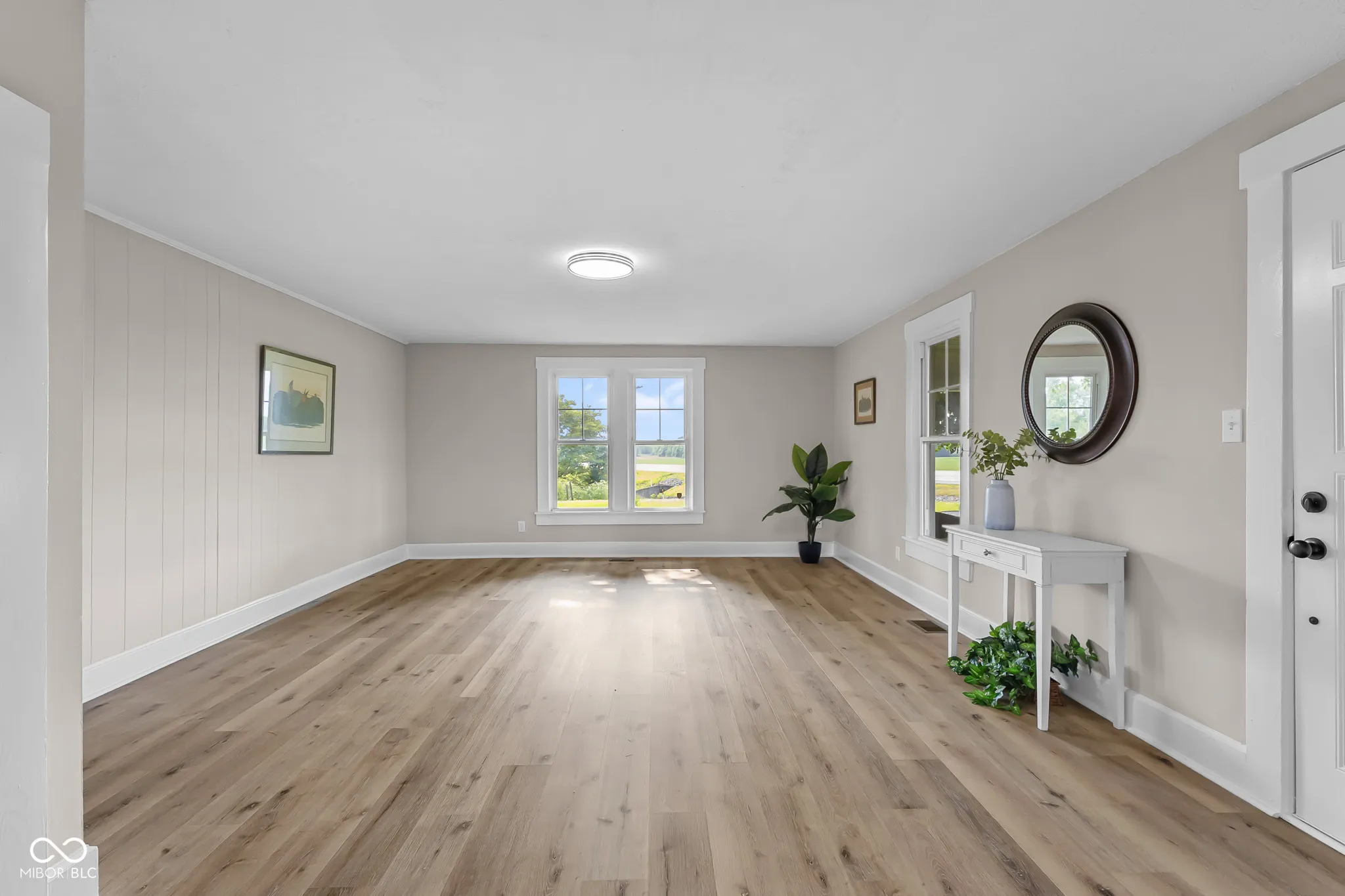 Welcome to 14855 E State Road 46! This recently renovated rural retreat features 4 beds, 2 full baths, and is situated on 2.2 acres! From your covered front porch you will enter into the large living room. An adjacent family room flows into the dining area and then into your updated kitchen! The large laundry room is the perfect place for additional storage or a drop zone for the family. Two bedrooms, a full bath, and an additional office space round out the main level. Upstairs you will find the third bedroom, the primary bedroom, and brand new bath complete with dual vanities and a walk-in closet. Two HVAC systems keep both floors comfortable year round. The oversized two-car garage has enough room for parking and a workshop area. With 2.2 acres, there is plenty of space for an additional outbuilding , or simply enjoying the privacy the land affords you. Conveniently located between Columbus, Greensburg, and Hope, you’ll want to see this beautiful home in person!