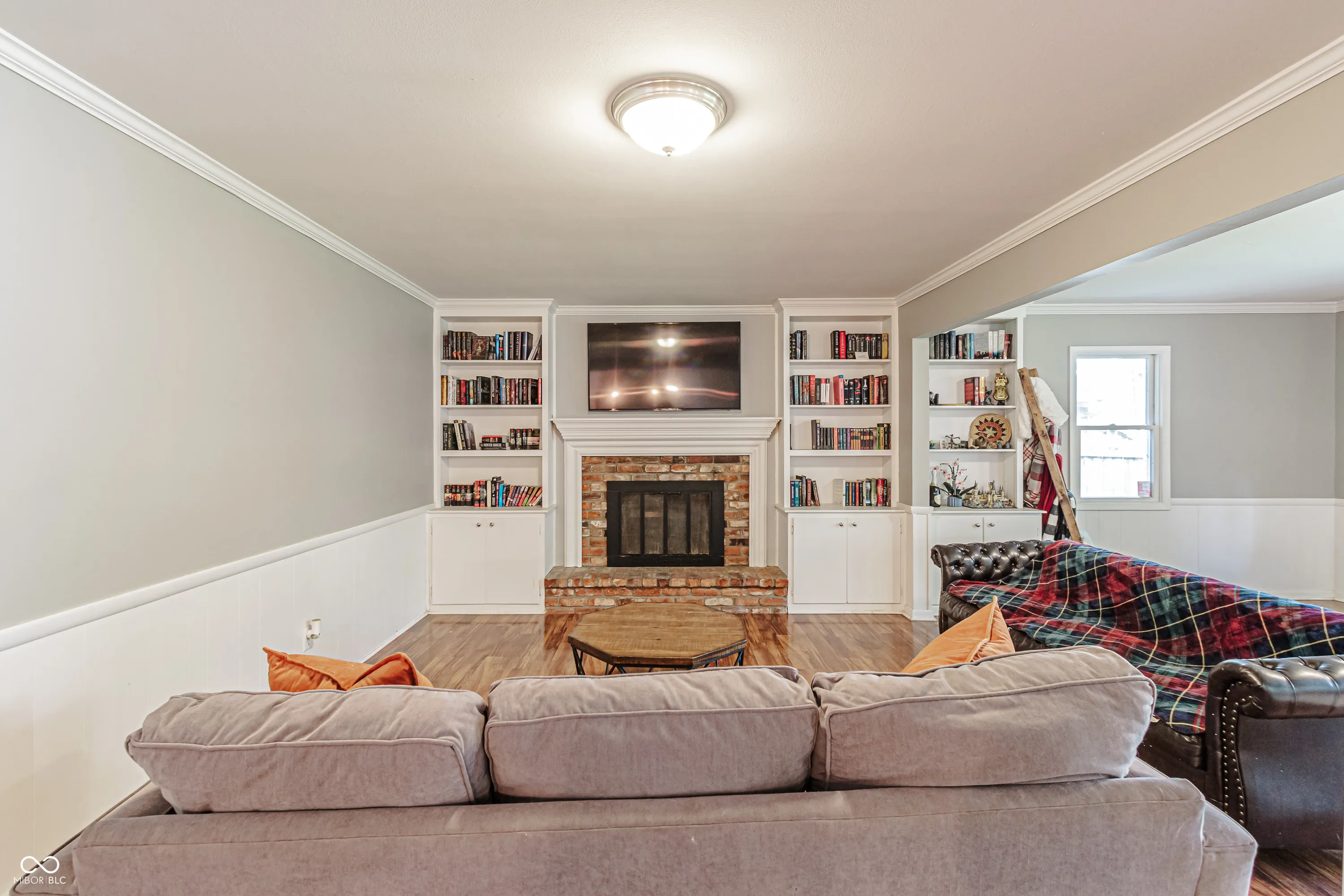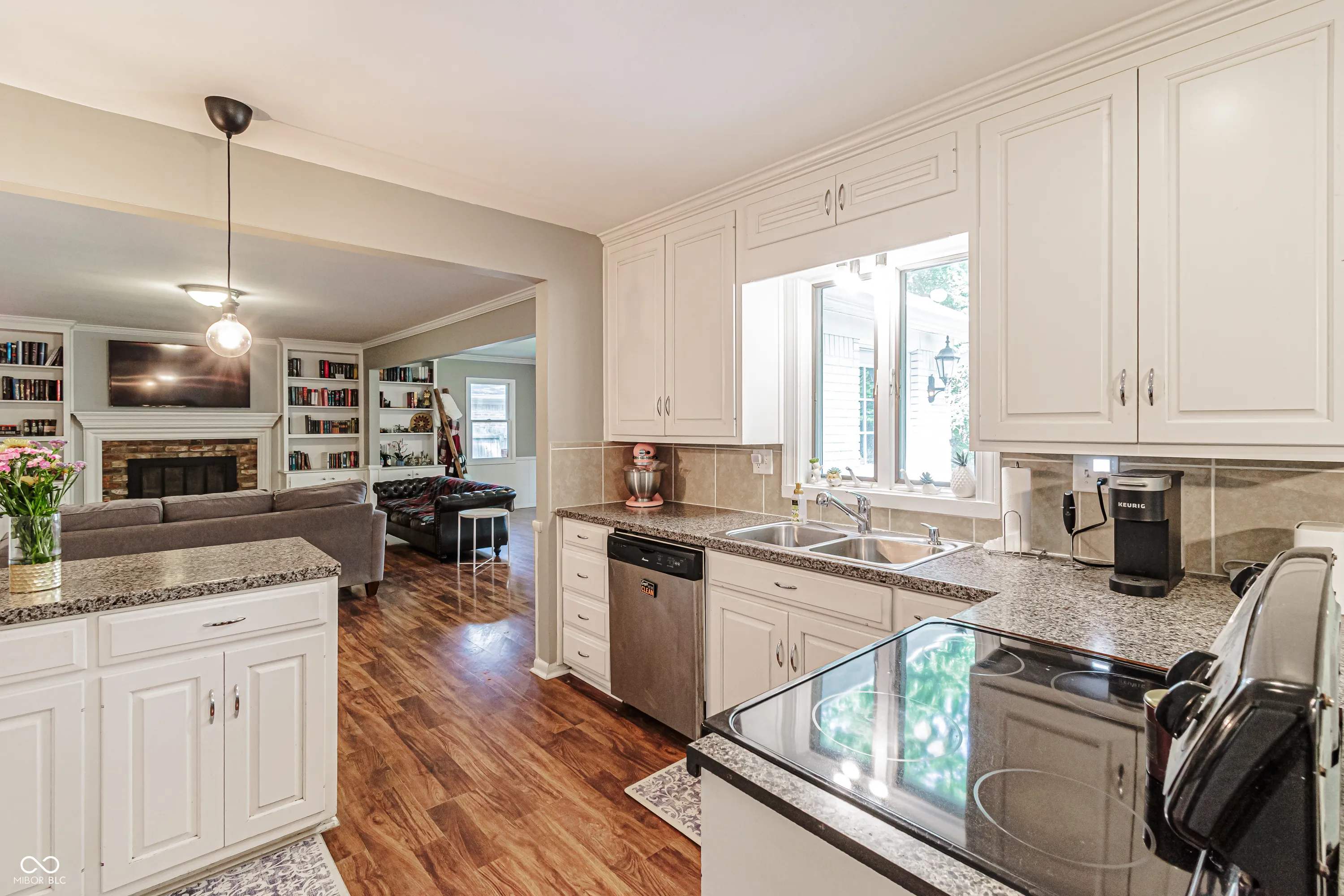This well-maintained 3-bedroom, 2-bath brick ranch features laminate wood flooring throughout and an open-concept living room and kitchen – perfect for entertaining. Enjoy a cozy fireplace with built-in shelves and storage, plus a fully privacy-fenced backyard with a fire pit for gathering with friends and a mini barn offering extra storage or workspace. Located in MSD Wayne Township with easy access to I-465, and just minutes from the Indianapolis International Airport and Indianapolis Motor Speedway. Don’t miss this great opportunity! Also, NO HOA!