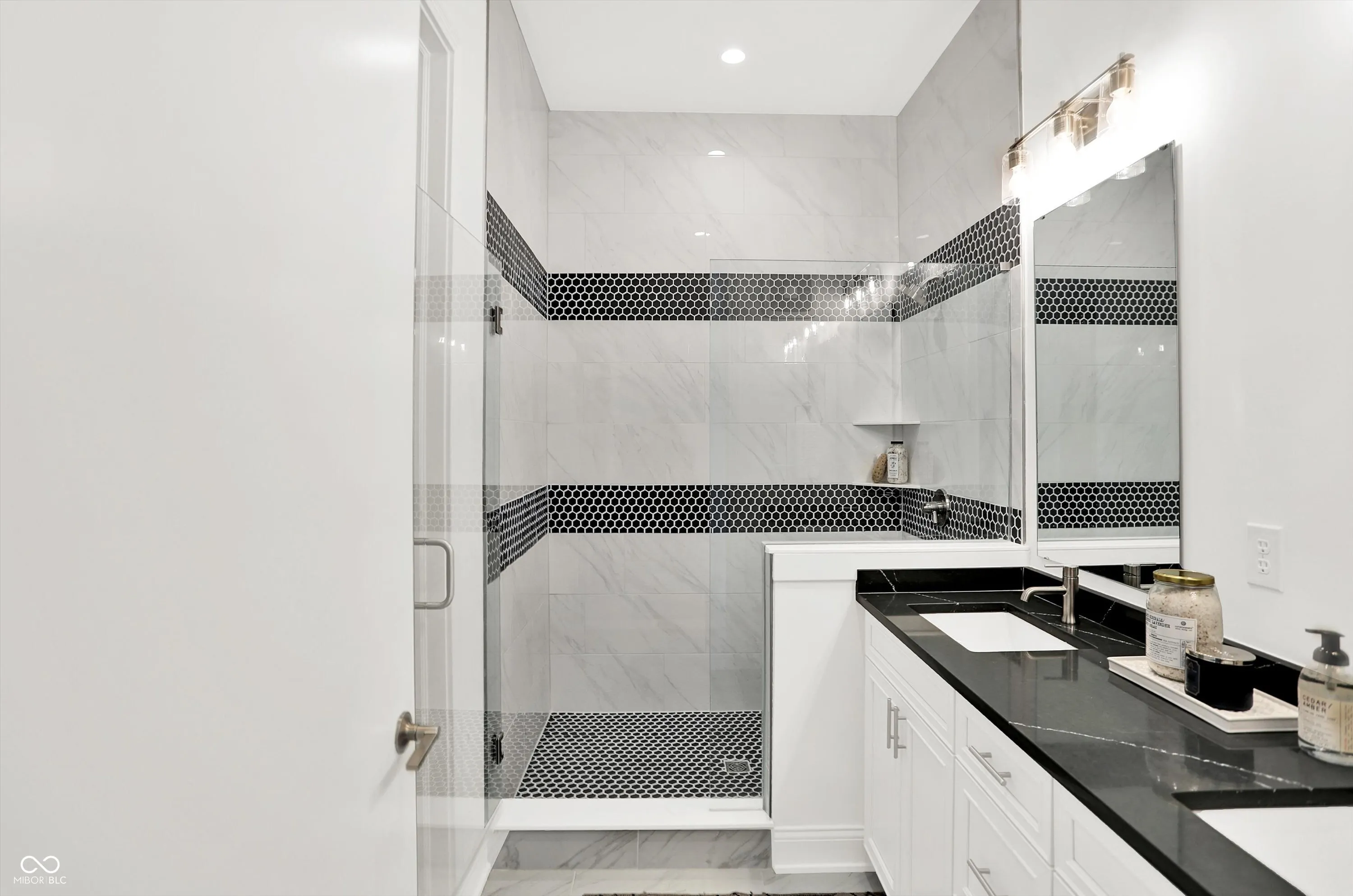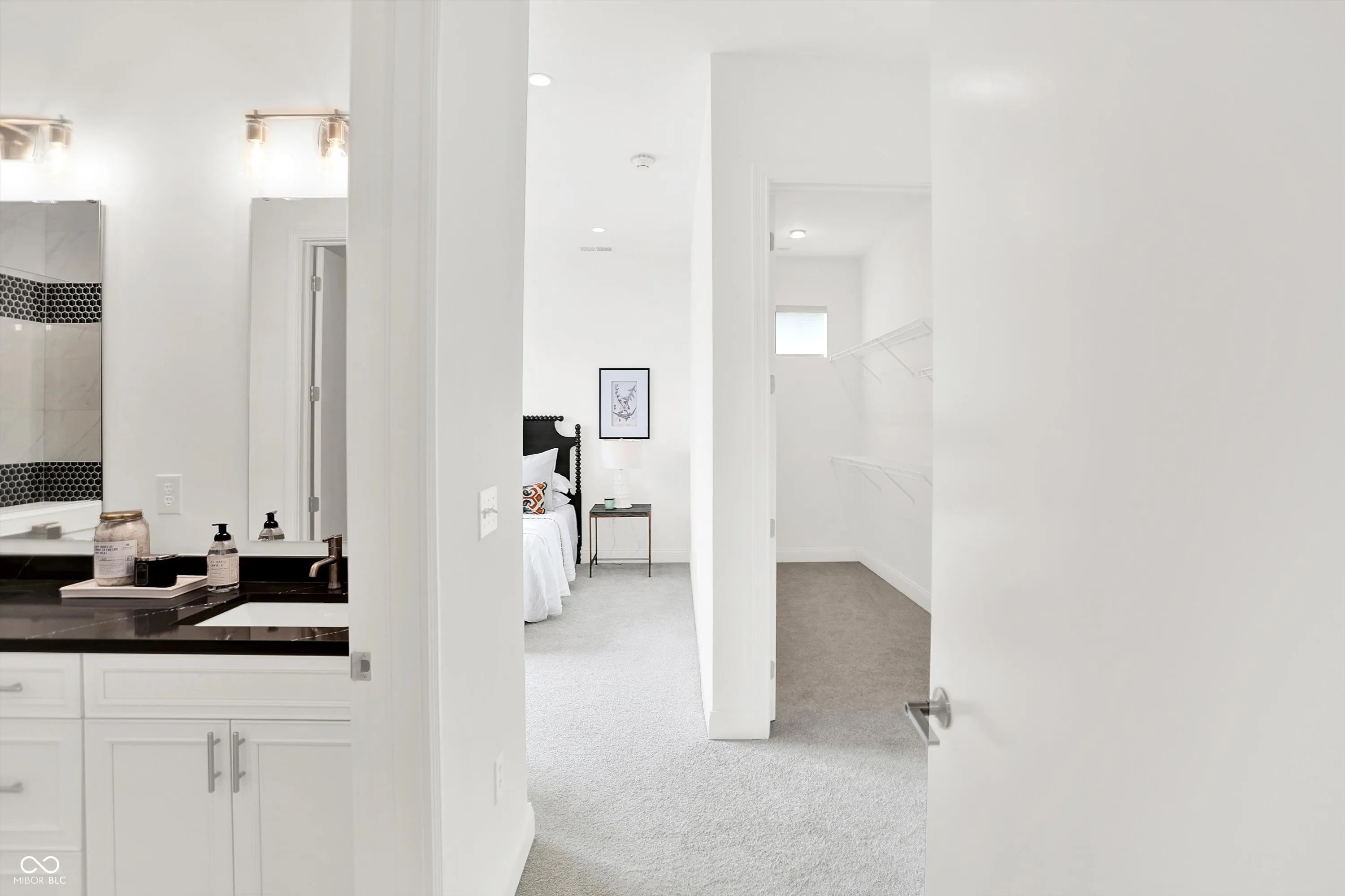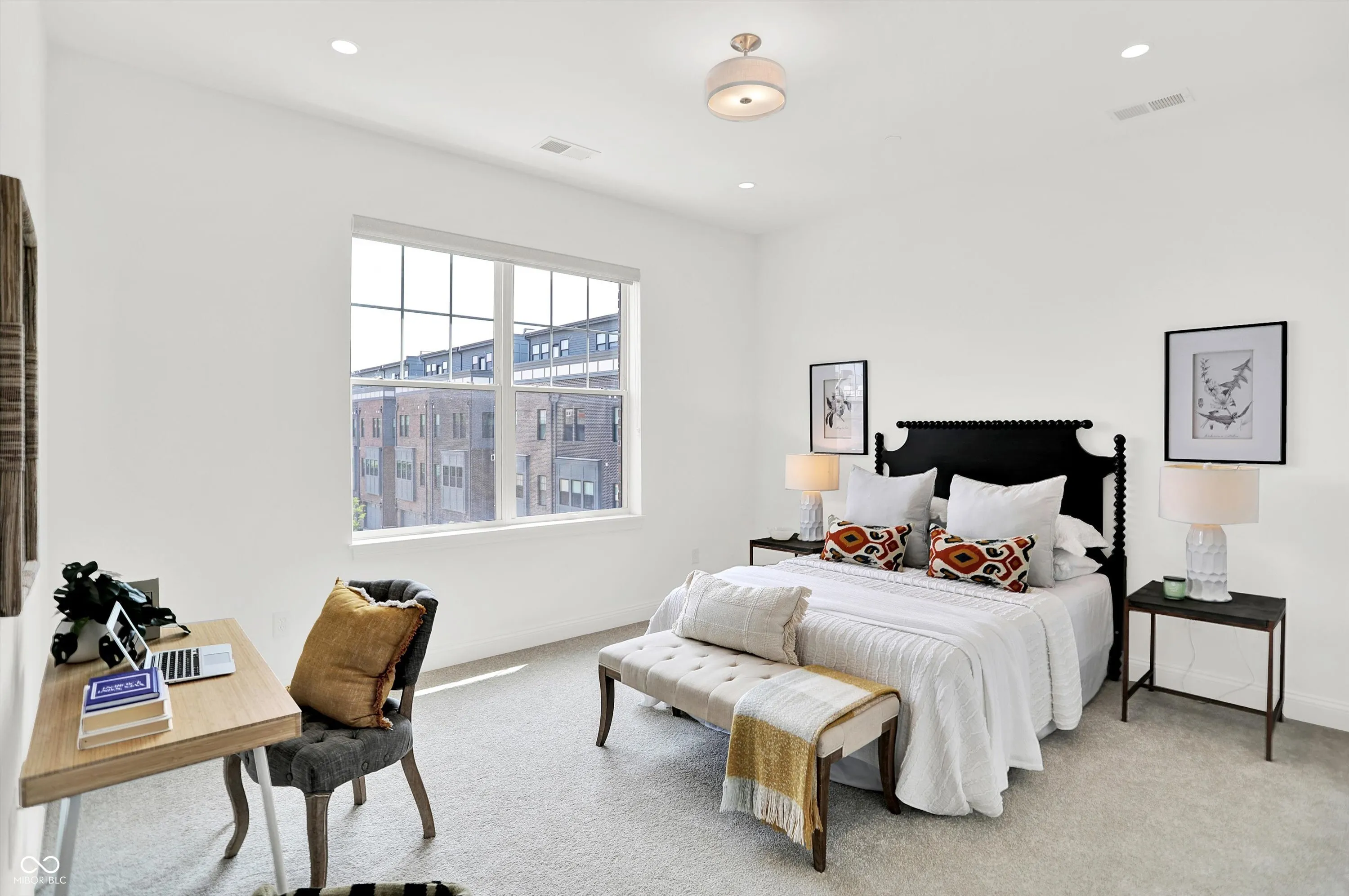 Welcome to 920 Veterans Way, a never-lived-in luxury end unit offering superior privacy, designer finishes, and a rare attached 2-car garage with direct interior access-no elevators or parking garages required. This spacious 1,515 sq ft, 2-bedroom, 2-bath home showcases 10′ ceilings, abundant natural light from multiple exposures, and a private covered balcony facing the courtyard, perfect for relaxing outdoors. Inside, the open-concept design features luxury vinyl plank flooring, designer lighting, Smart Home technology, and an elevated finish package. The kitchen impresses with quartz countertops, soft-close cabinetry, subway-tile backsplash, upgraded hardware, a walk-in pantry, and a large island ideal for entertaining. The living and dining spaces offer seamless flow and expansive windows, creating a bright, modern aesthetic. Both bedrooms include generous closets and abundant storage, while the baths feature quartz vanities, premium tilework, and stylish fixtures. Additional highlights include a whole-building water softener, secure private entry, a dog wash station, and a tranquil courtyard with fountain views. The building’s attractive brick and masonry exterior complements its urban-loft character and prime setting in the sought-after Melange community. Perfectly positioned just steps from the Monon Trail and Carmel’s vibrant Arts & Design District, residents enjoy unmatched walkability to Midtown Plaza, the Palladium, Christkindlmarkt, the Farmers Market, restaurants, coffee shops, and boutiques. This maintenance-free residence blends upscale design, private amenities, and a premier location-delivering the best of Carmel living in one elegant package.
