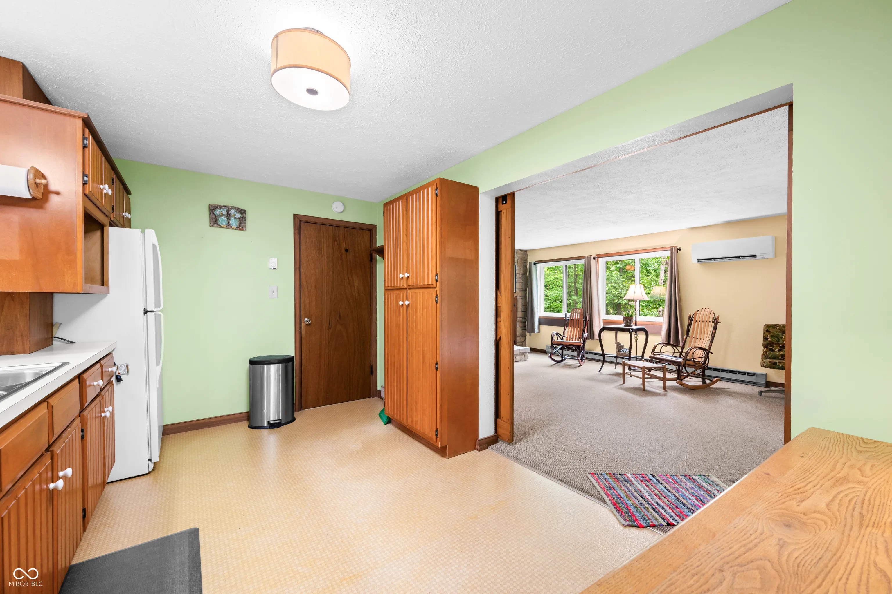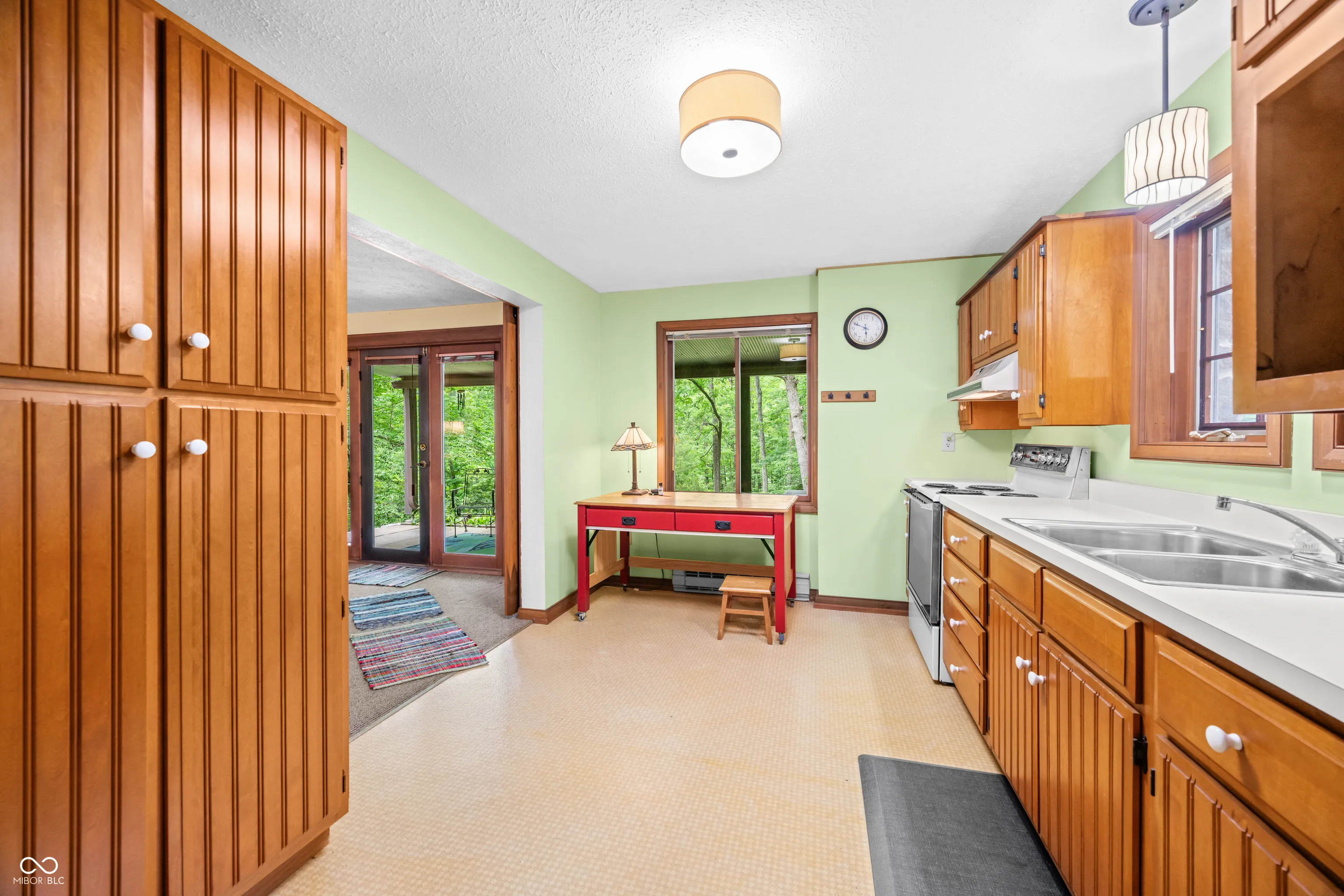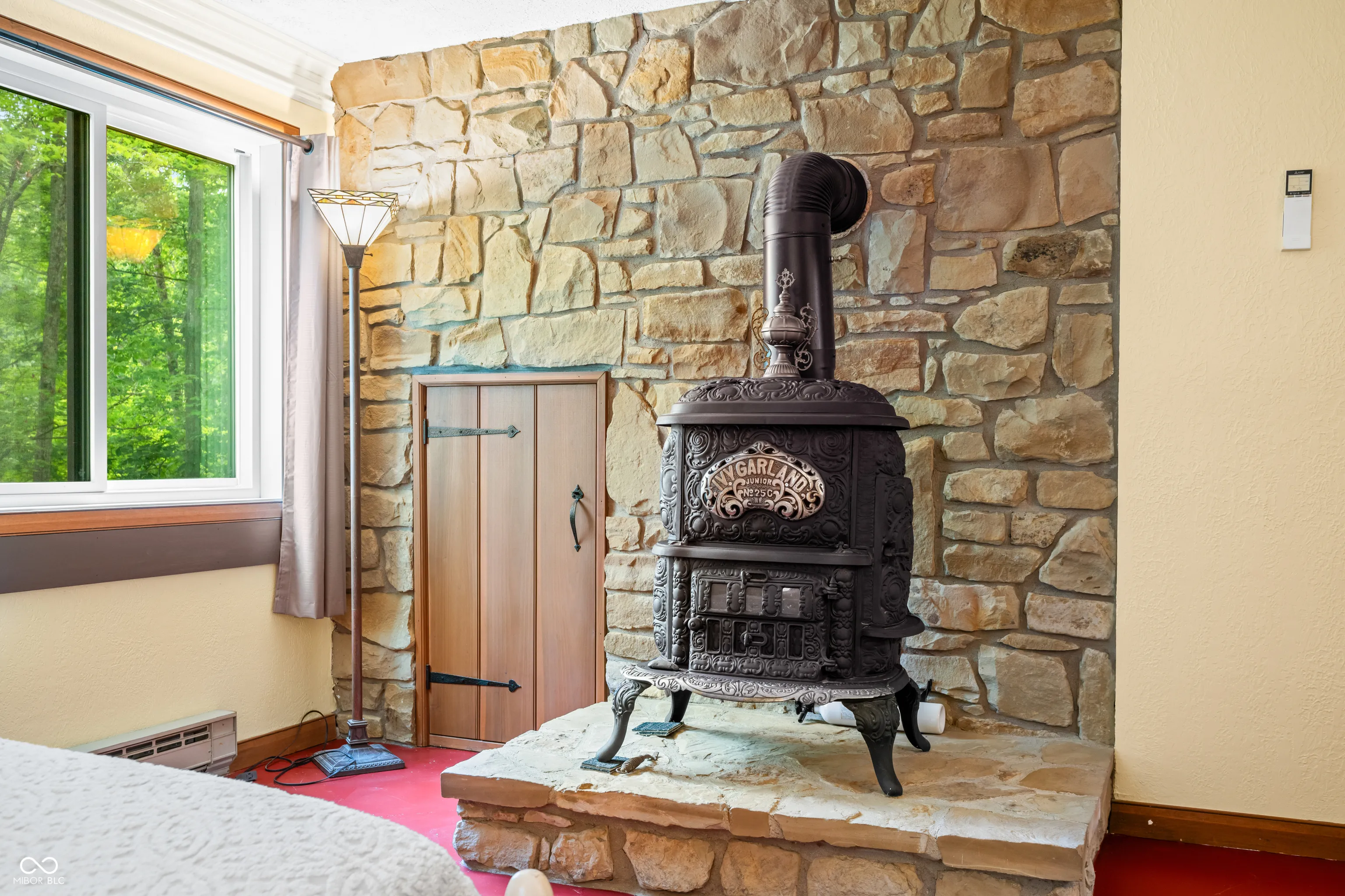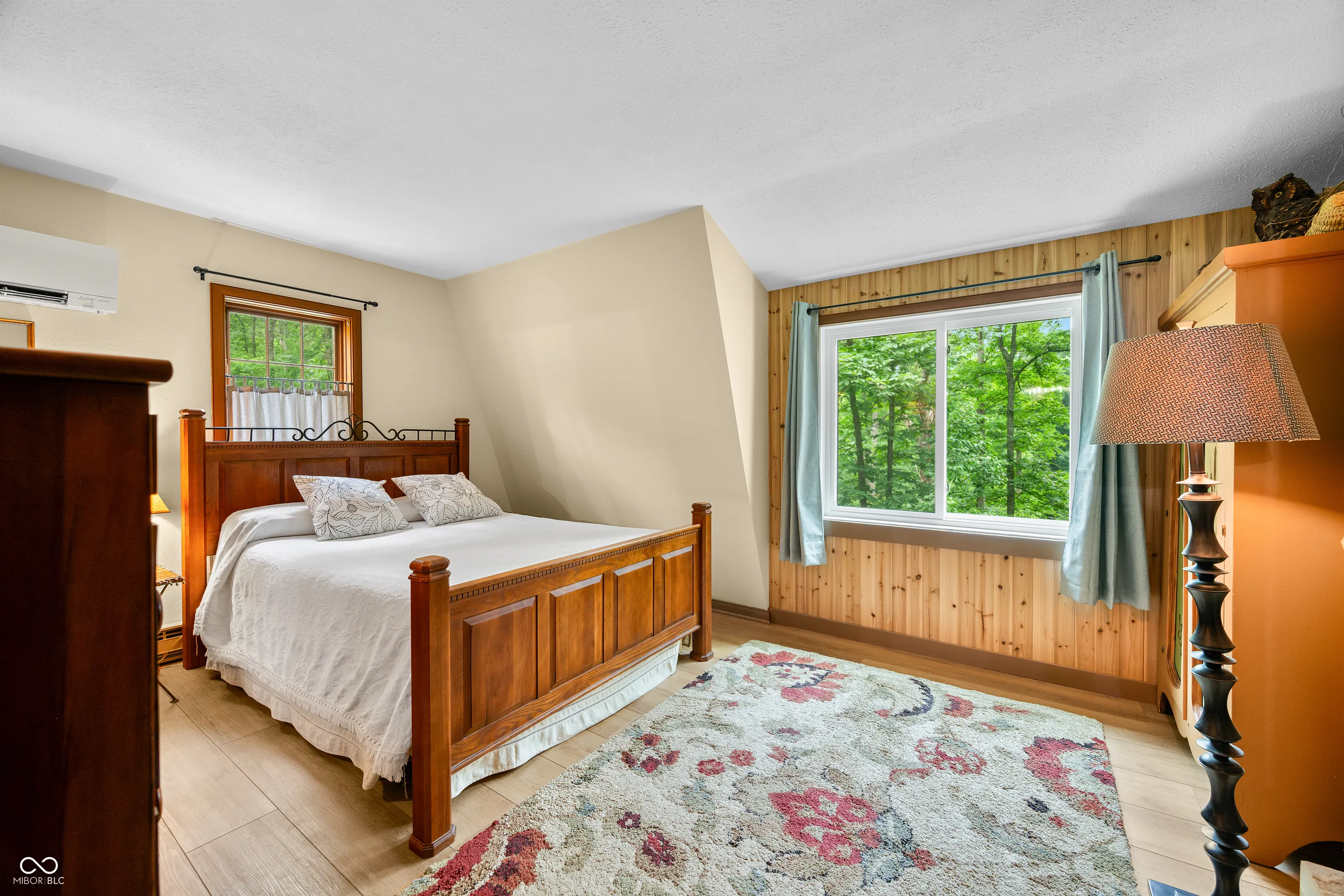 This might just be the most unique home in all of Brown County! The exterior of this home has a barn shape roof with a cupola for getting up close views of the birds and possible eagles soaring by! The cupola has a custom made ladder access resembling that of a library ladder and would be the perfect spot to read, meditate, or just enjoy the sights all around! The home sits on just over 2 acres and has access and view of the shared pond. Enjoy the outdoors from the covered patio on the lower level or the covered deck on the main level, both have a relaxing view of the pond and garden area. There is a detached two car garage with a 17’x13′ workshop and 8’x13′ office area not to mention an abundance of storage, speaking of storage there is also a 23’x35′ barn with double sliding doors and inside you will find a 10’x15′ craft room! Inside the split level home you are greeted with brick flooring the main level features an abundance of windows, double Brown County stone fireplace, open concept great room and poplar kitchen cabinets, walk-in closet and his and her bathrooms. The lower level has two woodburning stoves with Brown County stone backdrops, hardwood kitchen cabinets, large great room, bedroom, bathroom/laundry room and utility room. This home does NOT qualify for a short term rental, but is the perfect set up for a “Homestay” or bed and breakfast.