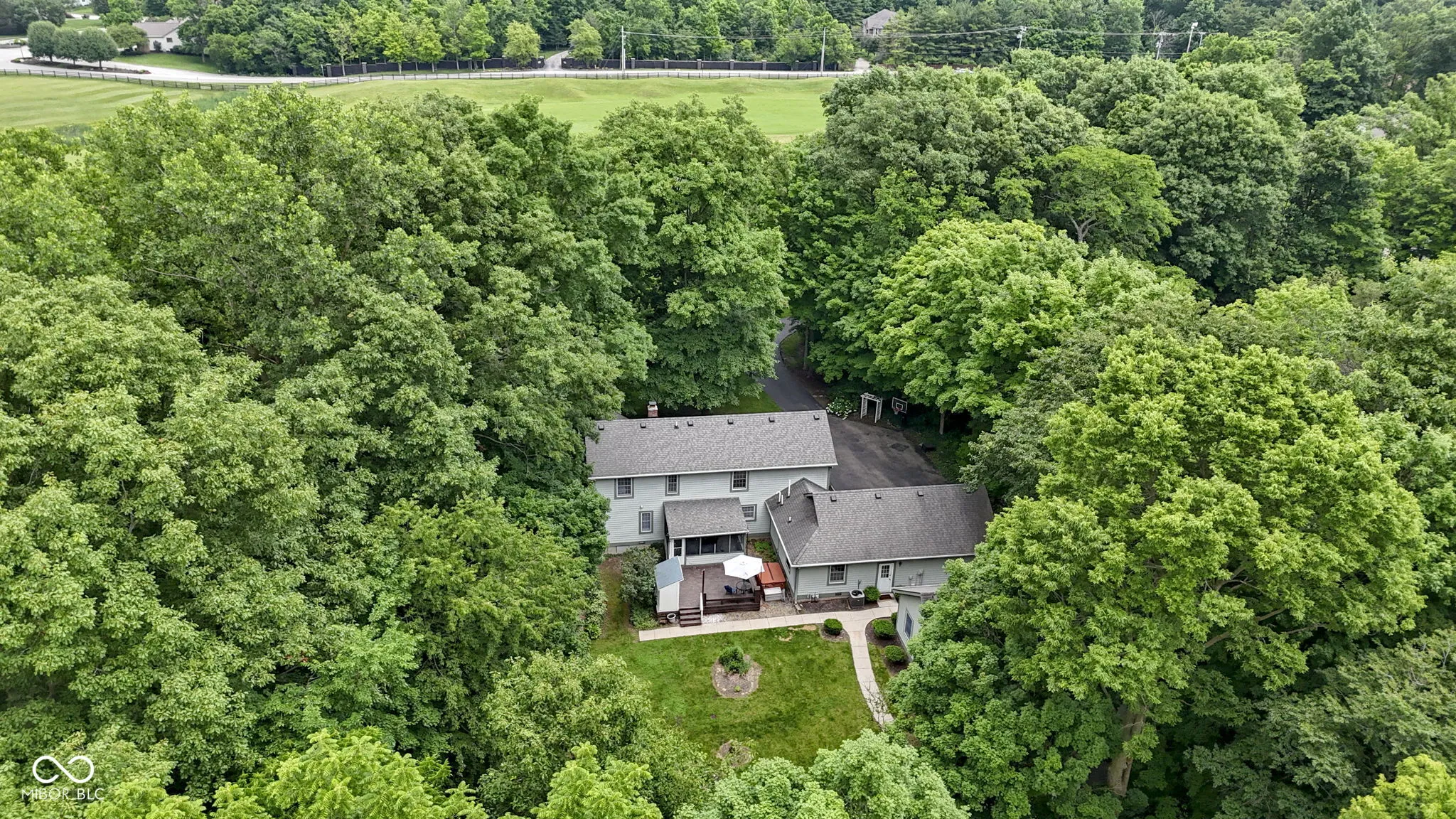 Extraordinary find, 1.37 Acres in the heart of FISHERS, with views of the 9th hole of IRONWOOD GOLF COURSE! Enjoy a little slice of the country with this serene property nestled among towering trees! Greeted by a long drive, that takes you back to your own private oasis. A charming, covered porch, with landscape beds ready for the finishing touches of gardening enthusiast! Open the door cathedral vaulted ceiling in the expansive great room with a floor to ceiling brick fireplace. Perfectly positioned to be a focal point of the room! Step into the dining room drenched in natural light, features updated LVP flooring, running seamlessly into the breakfast room and kitchen. Tons of cabinet space with a breakfast bar, prep space defining the kitchen from the dining area. Kitchen features updated cabinets, subway tile backsplash, Quartz counters, SS appliances, and pantry! Just off the kitchen is a half bath and family friendly foyer with access to the screened in porch with views of your freshly stained deck and the gorgeous backdrop of nature for days! Family room for a second living space, convenient to laundry closet. Tucked off of the main living space, is the Owner’s suite. Complete with sitting area and ensuite bath, featuring dual sink vanity, soaking tub, and separate water closet with shower. Upstairs: 3 Bedrooms, 2 with WI closets, and access to attic for plenty of storage! Full bath and catwalk overlooking the greatroom. Step out the backdoor to your freshly stained deck that is sure to be the host of many cookouts! Complete with a grill house, and hot tub. 4 car garage, one bay it turned into a workshop that’s heated and cooled. Endless possibilities! No maintenance storage sheds included. Large firepit area, ready to host the crew for smores or campouts! This backyard is calling your name for memories to be made! Best of both worlds being nestled on Ironwood Golf Course in the front of the property and able to enjoy 360′ views of nature and wildlife!