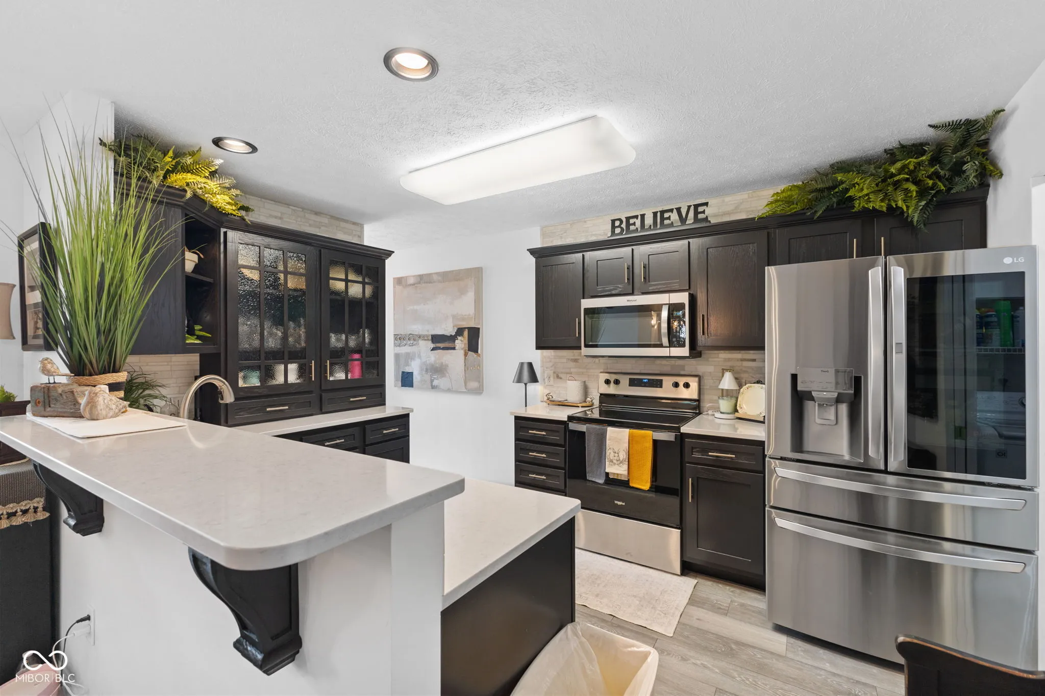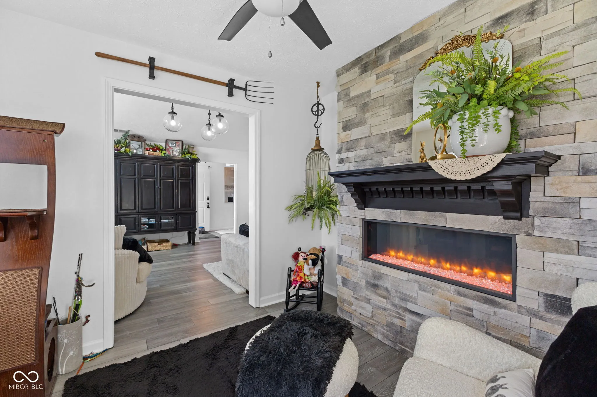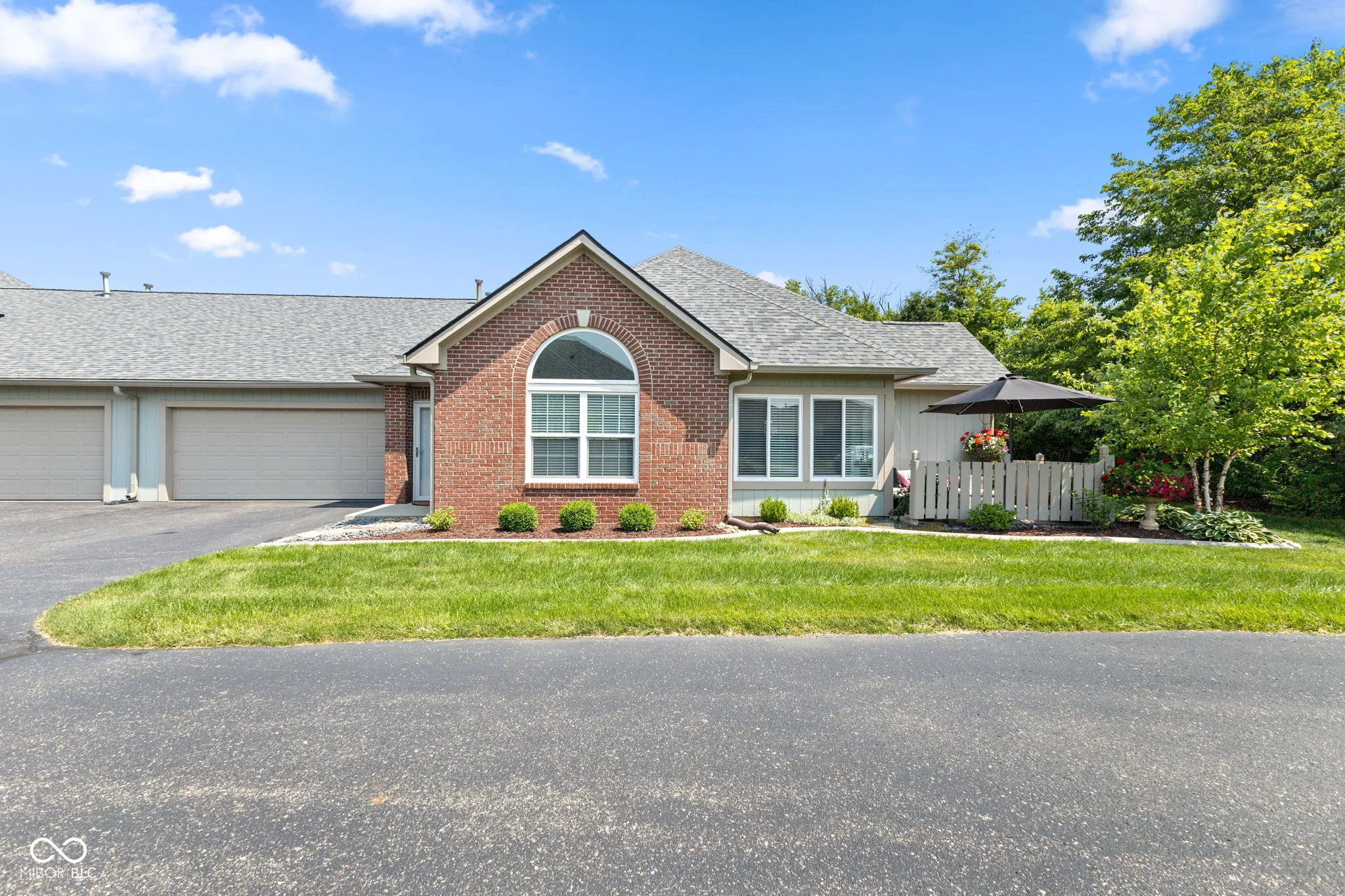 This stunning 2-bedroom, 2-bath home in Stones Bay offers over 1,300 square feet of beautifully updated, maintenance-free living in the heart of Center Grove. Featuring soft, high-end carpet in the bedrooms, a luxurious primary suite with a built-in desk, and spacious walk-in closet, this home blends comfort and function. The open-concept living and dining space flows effortlessly into a dream kitchen with Amish-crafted oak cabinets, quartz countertops, a marble backsplash, and top-of-the-line appliances. A cozy sunroom showcases a custom electric fireplace with beautiful stone detail and a solid oak mantle, perfect for relaxing or entertaining. Outside, enjoy the private, tree-lined patio and low-maintenance lifestyle. Major updates in 2022 include a new roof, Leaf Guard gutters, Pella windows, water heater, water softener, epoxy garage floor and more! Additional features include an epoxy-coated garage floor, upgraded plumbing with a slop sink, and a semi-annual HVAC service contract with Airtron. Located in a vibrant community with a clubhouse, pool, and nearby amenities-this home is move-in ready. Just unpack and enjoy the good life!