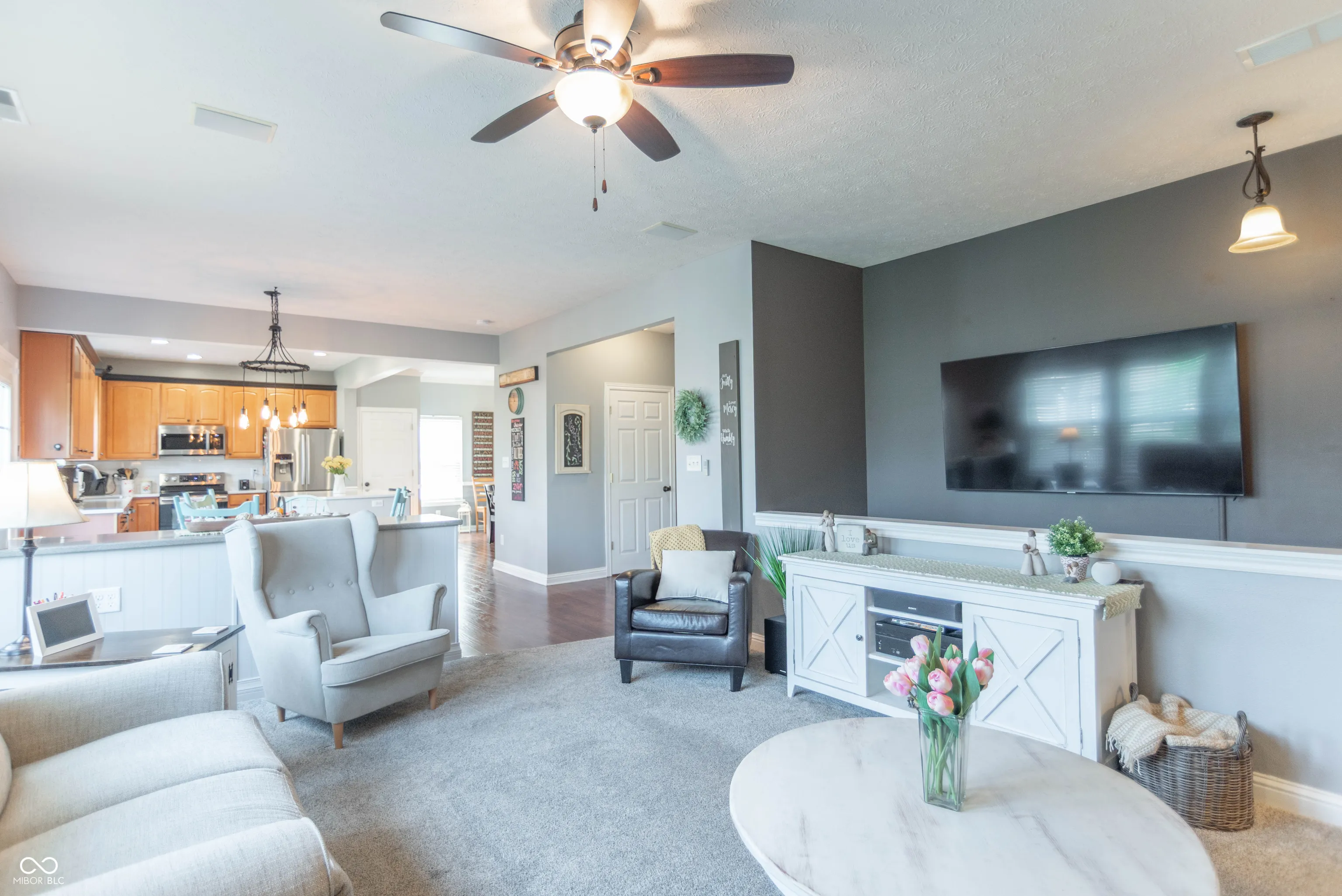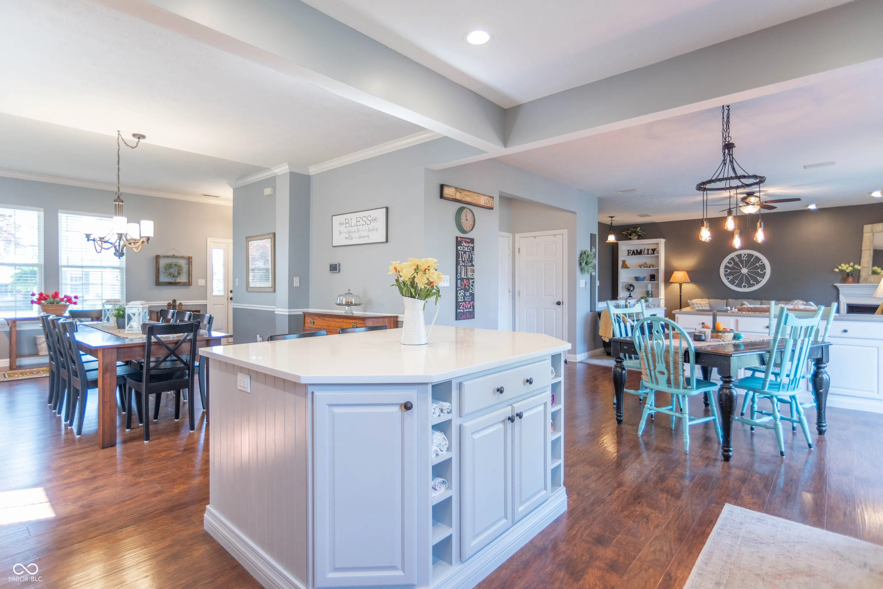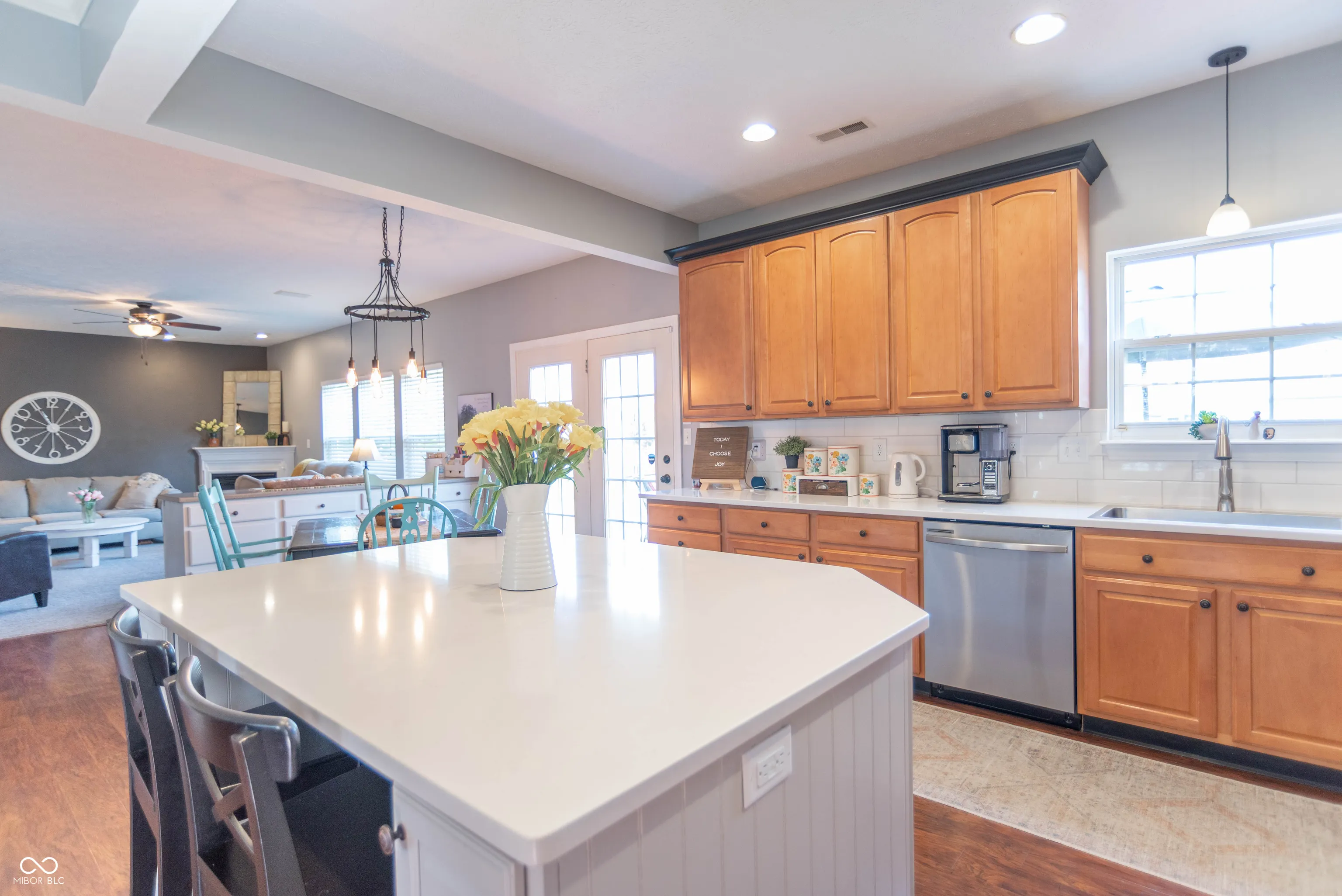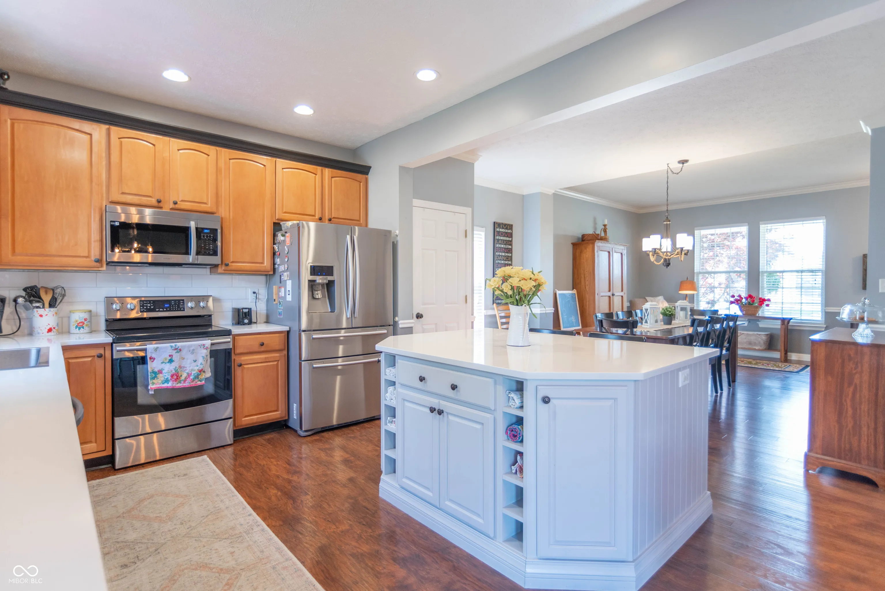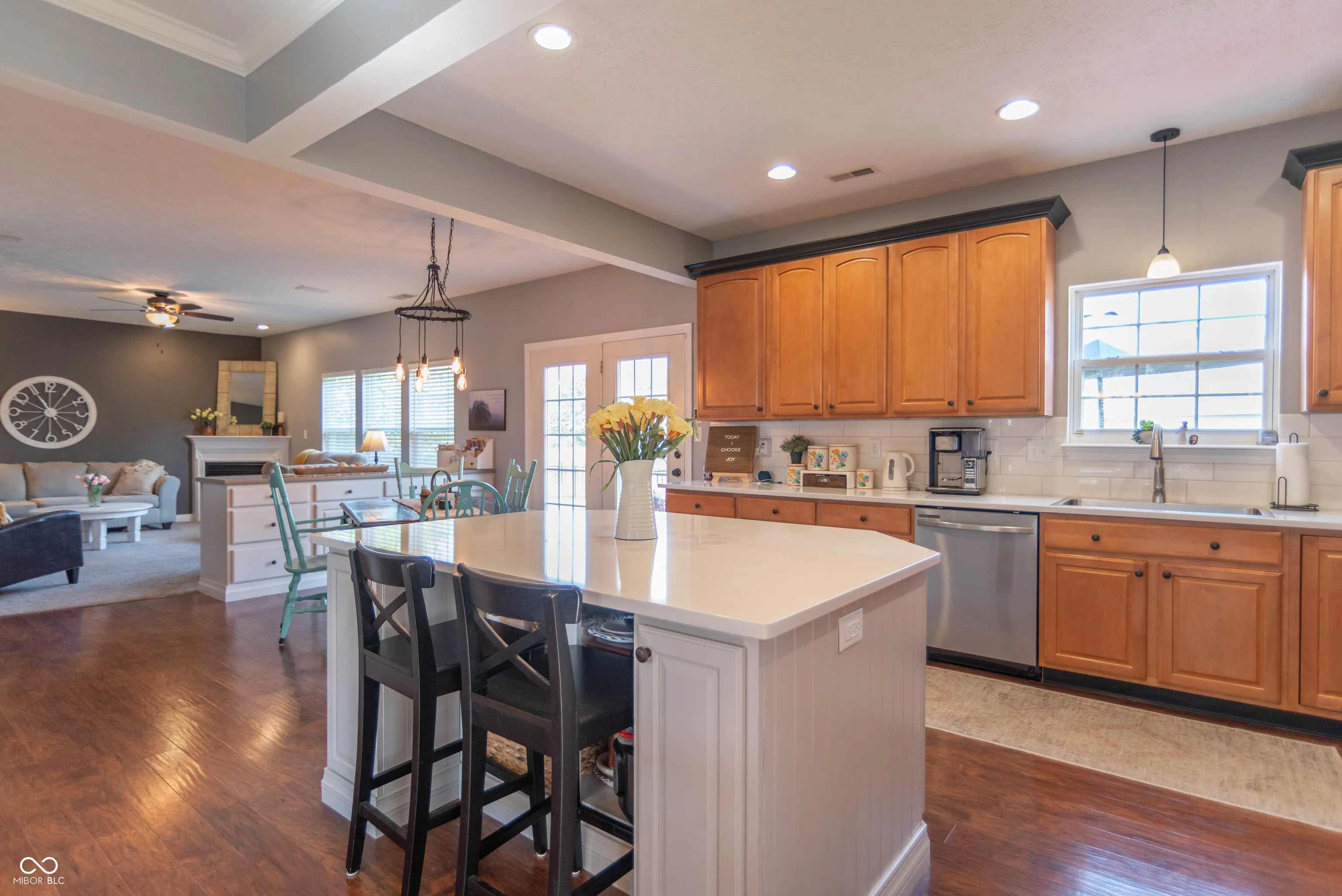 Gorgeous home is ready to move-in and enjoy. This desirable home has been well maintained and beautifully updated. 4-BRs, 2.5 baths, finished basement with theater room and rec room & 3-car garage. Very nice landscaping makes a great first impression. Open 1st floor plan feels luxurious and inviting. Kitchen features handsome maple cabinets, quartz counter-top, center island, SS appliances, and hardwood floors with that hand hewn look. Relax … many mechanicals have been updated, deck is composite for long trouble-free life. Niceties include a soaking tub in master suite, walk-in closets, gas fireplace for ambiance and warmth. Utility sink in garage and 2nd floor laundry, both for your convenience. Also … the water softener and surround sound stay!