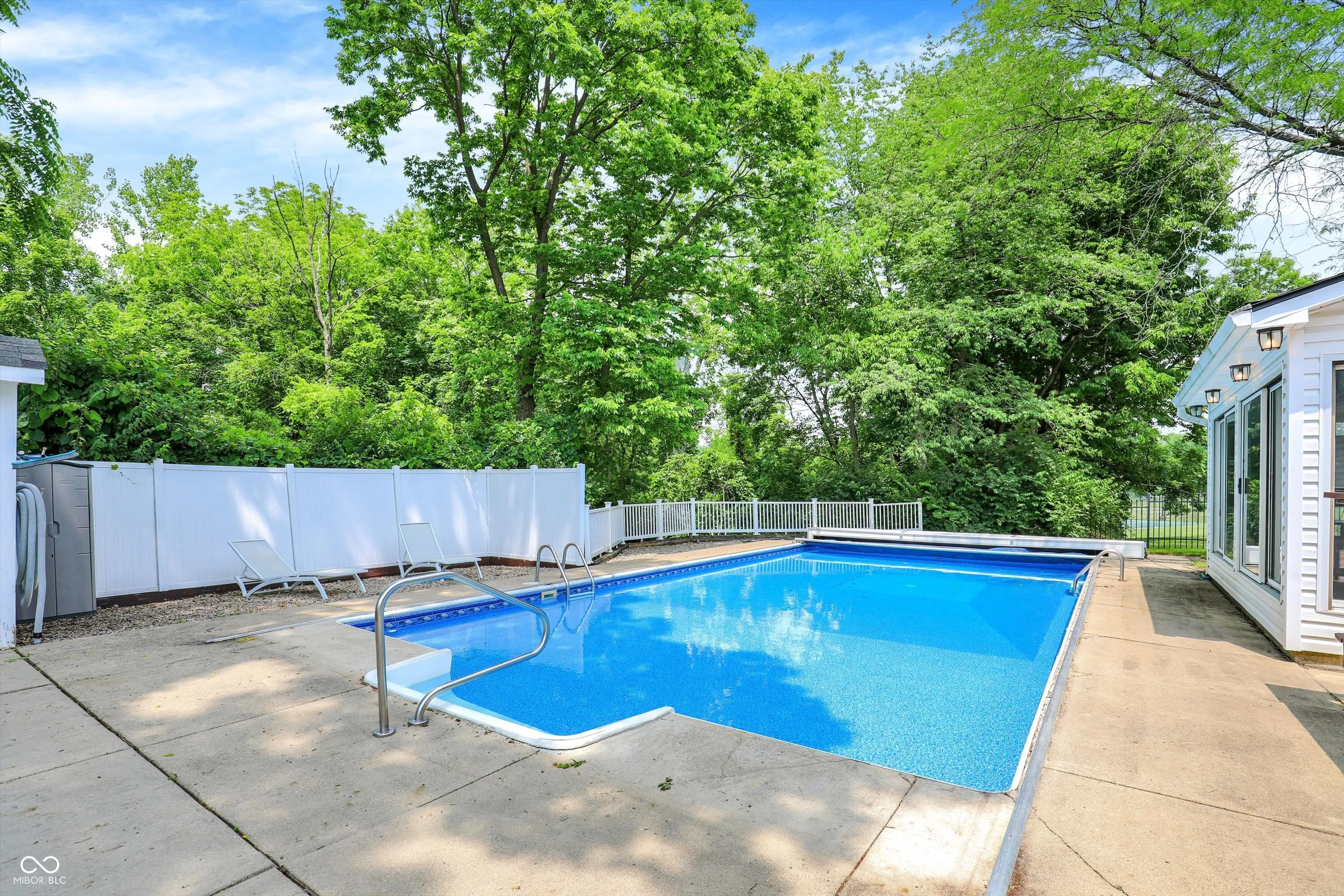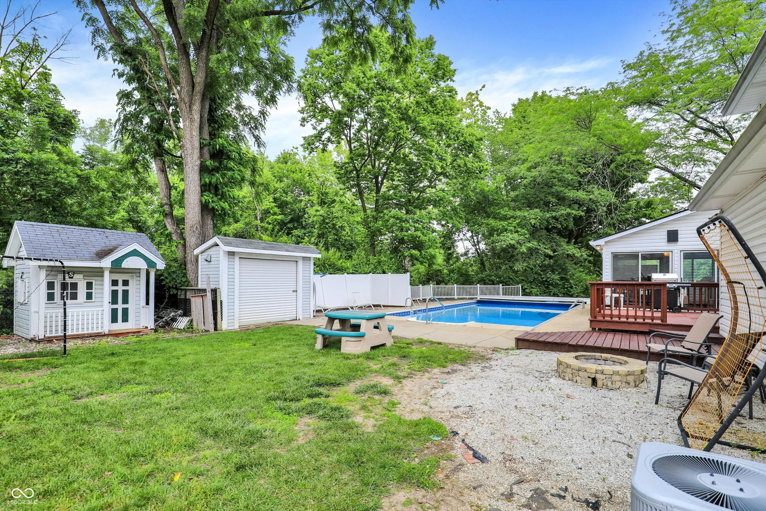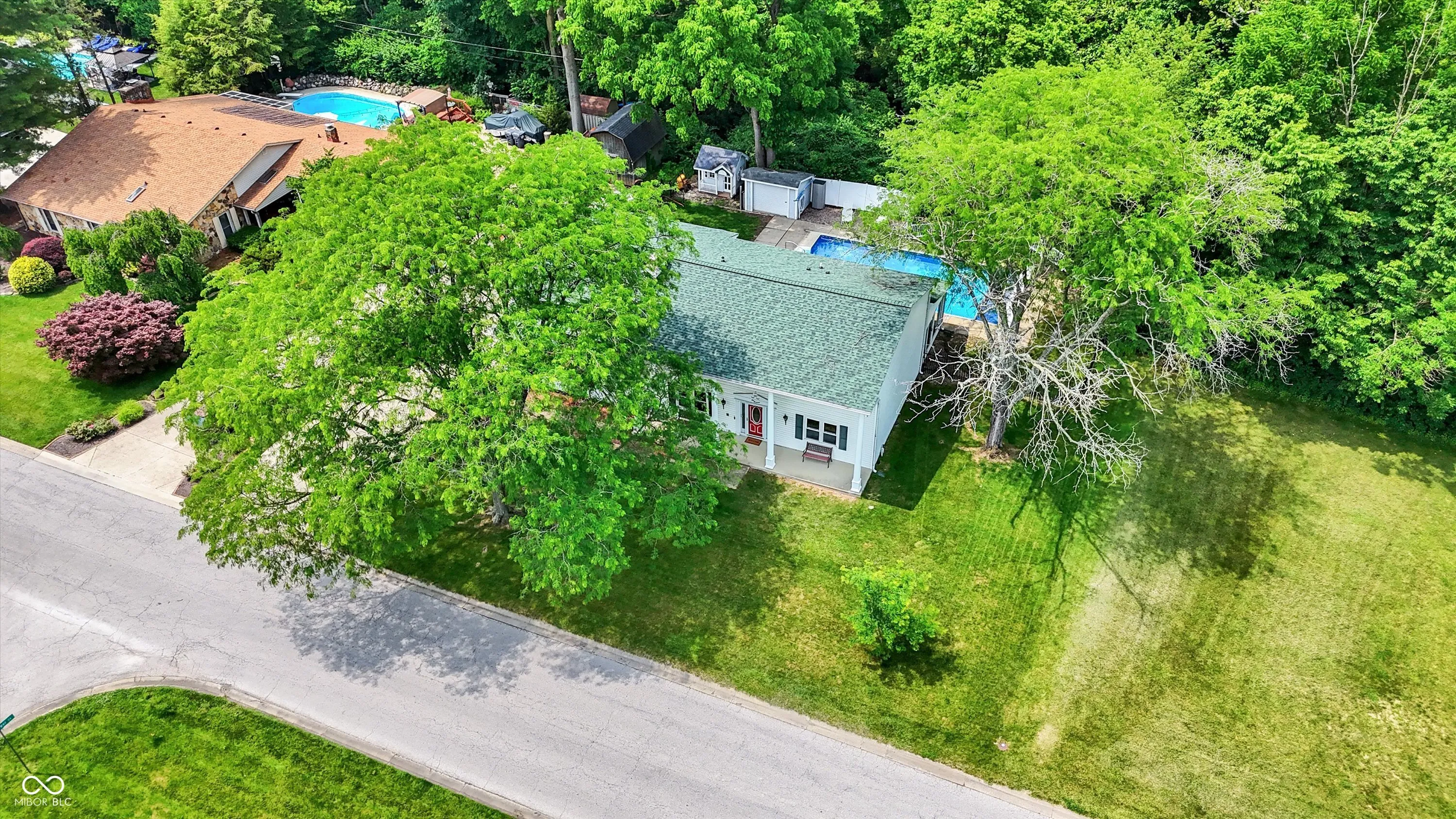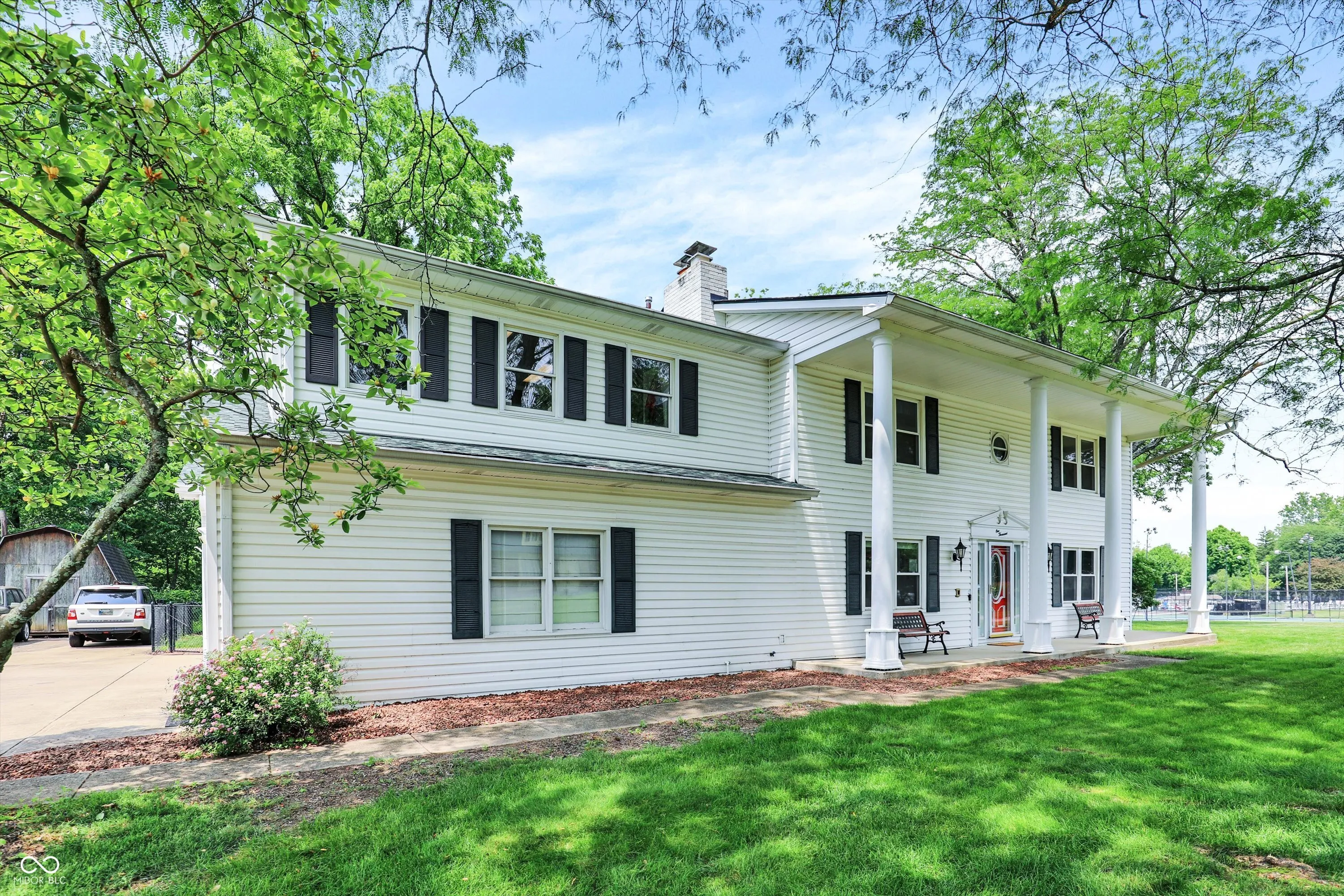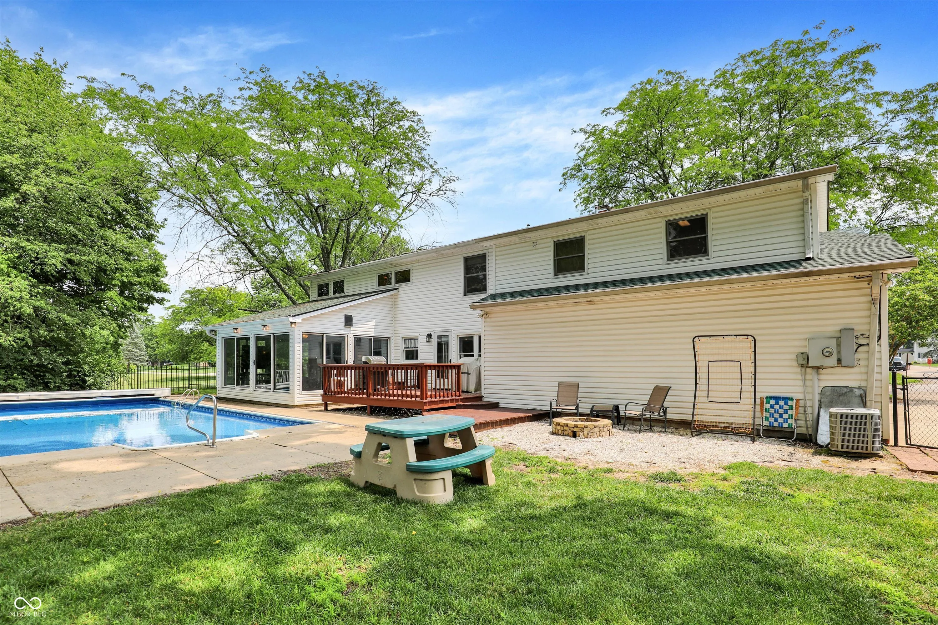 Discover a rare opportunity in the highly sought-after, no-HOA community of Carefree w/in the prestigious Center Grove School District! This original model home is finally available, offering over 3300 SF of meticulously designed living space, perfect for any lifestyle. Step inside an inviting open-concept main floor that flows seamlessly. The completely updated gourmet kitchen is a chef’s dream, featuring a custom center island w/ convenient barstool seating, top-of-the-line stainless steel appliances incl a gas stove, & an add’l built-in oven. The family room is a cozy retreat w/ a charming gas-log fireplace & a beautiful wood mantle. The Living Room & Dining Room effortlessly extend into an all-season sunroom, featuring sliding glass doors on all walls, offering abundant natural light & serene views. The main level boasts updated laminated hardwood flooring, while brand new carpet graces the stairs and hallway, providing comfort & style throughout. Updated double-pane windows enhance energy efficiency & comfort. This home uniquely caters to diverse needs w/ a dedicated separate wing, ideal for in-law quarters or a children’s retreat. This area features a bedroom, a full bathroom w/ a laundry area, & a versatile bonus room w/ endless possibilities. This private space is easily accessible via a stairwell from the 3-car garage, which also includes a Tesla EV universal charger – a true modern convenience! The nearly half-acre, tree-lined lot provides a private oasis. The fully-fenced backyard is an entertainer’s dream, showcasing an in-ground heated pool w/ an automatic pool cover for effortless enjoyment, a pool house, a delightful playhouse, & a large storage shed. Beyond your private haven, the Carefree Club Membership grants exclusive access to a wealth of community amenities, including a sparkling pool, a clubhouse, tennis & basketball courts, & a playground area. Experience unparalleled comfort, luxury, & community living in this exceptional Carefree home!