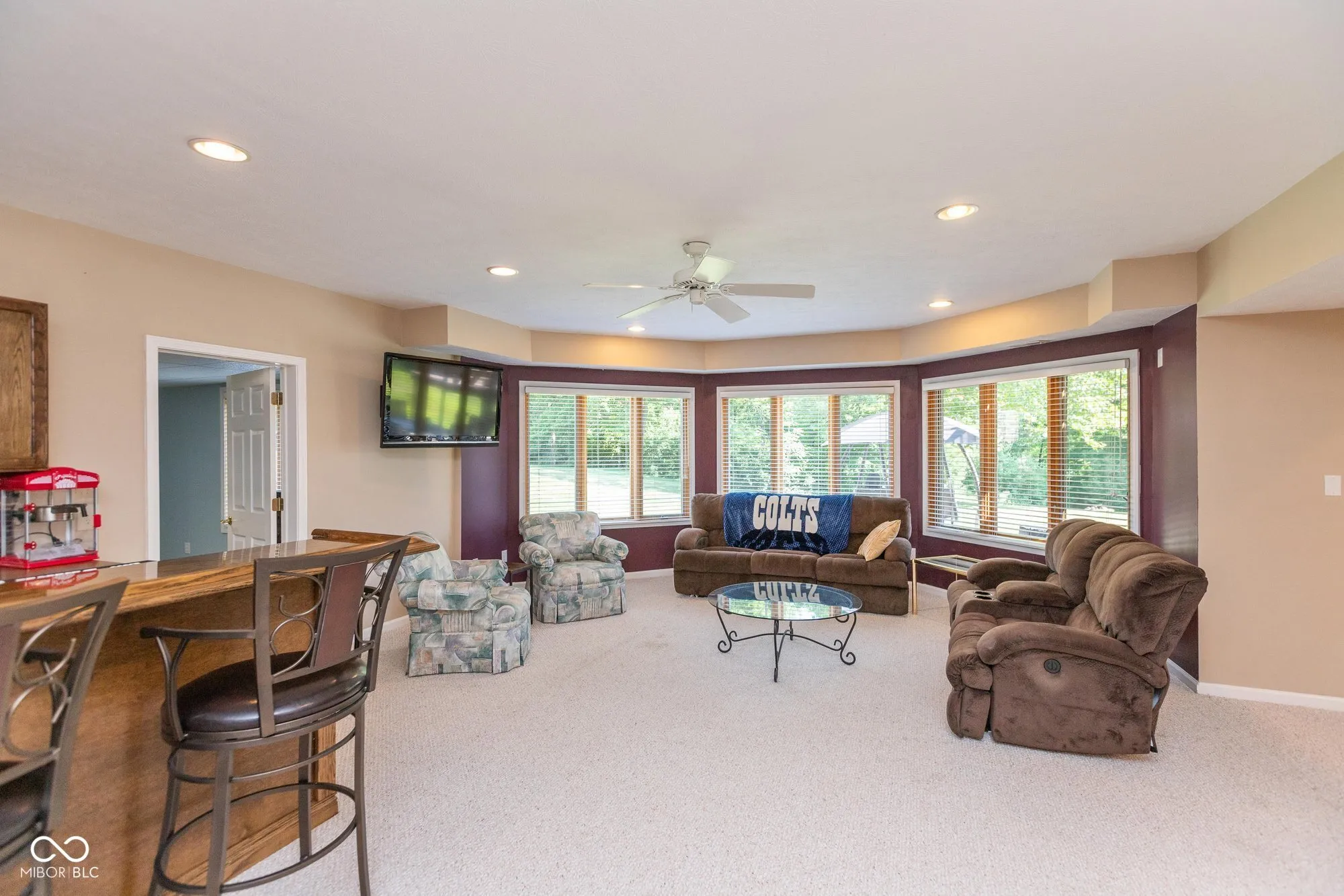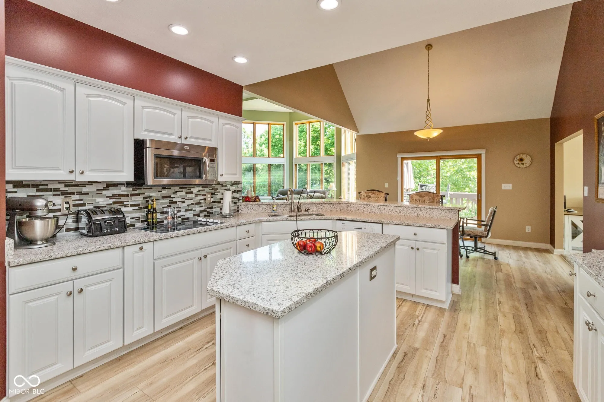 Welcome to your dream home in the highly sought-after Cedar Bend neighborhood on nearly 3/4 of an acre! This grand, beautifully maintained 5-bedroom, 4.5-bath residence boasts nearly 5,700 square feet of thoughtfully designed living space, including a fully finished walkout basement and scenic pond views from the backyard. Step inside to a dramatic great room with soaring ceilings, a cozy gas fireplace, a speaker system, and expansive windows that flood the space with natural light and frame the picturesque backyard. The gourmet kitchen is a chef’s dream, featuring stainless steel appliances, granite countertops, a walk-in pantry, ample cabinetry, double ovens, a separate center island, bar seating, and a breakfast area. Just off the kitchen, you’ll find a formal dining room, as well as a main-floor sunroom with large windows-ideal for relaxing or entertaining. The main-level master suite offers a peaceful retreat overlooking the backyard, with an expansive en-suite bathroom that includes a soaking tub, dual vanities, a makeup counter, an enclosed shower, and a generously sized walk-in closet. Upstairs, you’ll find three additional bedrooms, two of which have their own private en-suite baths, plus a spacious bonus room perfect for a playroom, office, or additional living space. The finished walkout basement offers even more versatility with a wet bar, additional bedroom, playroom or workout room, and multiple spaces for relaxing or entertaining. Enjoy the outdoors from the deck overlooking mature trees and the peaceful pond, or unwind on the covered patio below, complete with a gas grill hookup. A spacious three-car garage rounds out this exceptional home.