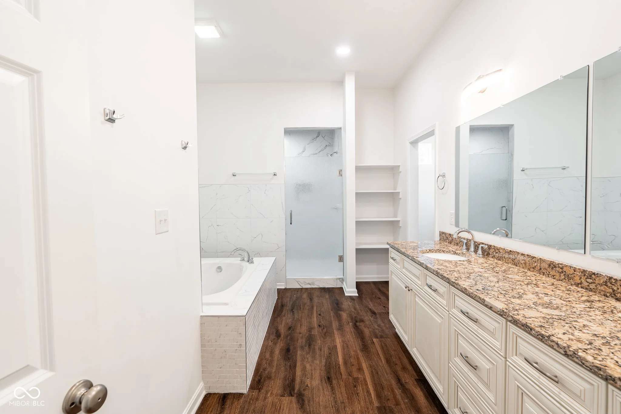 Located at 1210 Churchman AVE, INDIANAPOLIS, IN, this attractive single family residence presents an exceptional opportunity to own a beautiful new home. The living room offers a warm and inviting atmosphere, anchored by a fireplace that promises cozy evenings and a focal point for gatherings. The kitchen is a culinary dream, designed for both functionality and aesthetic appeal. Shaker cabinets provide ample storage, perfectly complemented by the elegance of stone countertops and a striking backsplash. The large kitchen island offers a central gathering spot for meal preparation and casual dining, while the tray and wood ceiling adds an architectural detail. The hidden pantry room is an added bonus. The bathrooms are designed with comfort and style in mind. Enjoy the luxury of a tile tub, perfect for soaking and relaxation. The double vanity provides ample space for getting ready, while the walk in shower offers a spa-like experience. This home offers four bedrooms, providing space for rest and rejuvenation, and includes a convenient laundry room for ease of living, and a large office space. Enjoy the privacy and security of a fenced backyard, and benefit from the ample storage offered by the walk-in closet. This two-story residence, built in 2024, offers a modern layout with an open floor plan and a generous 3600 square feet of living area. This is an extraordinary residence that is ready to welcome you home.