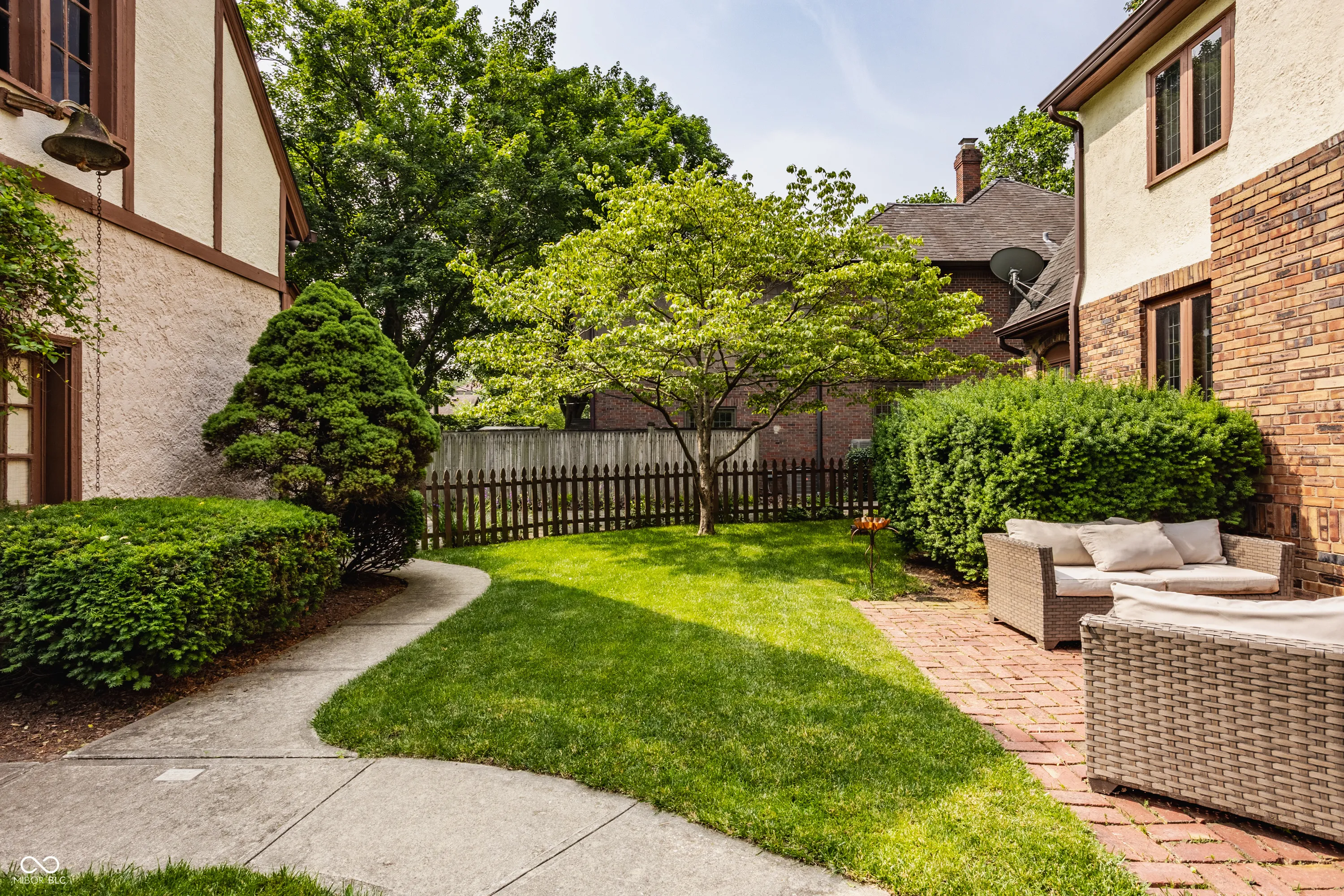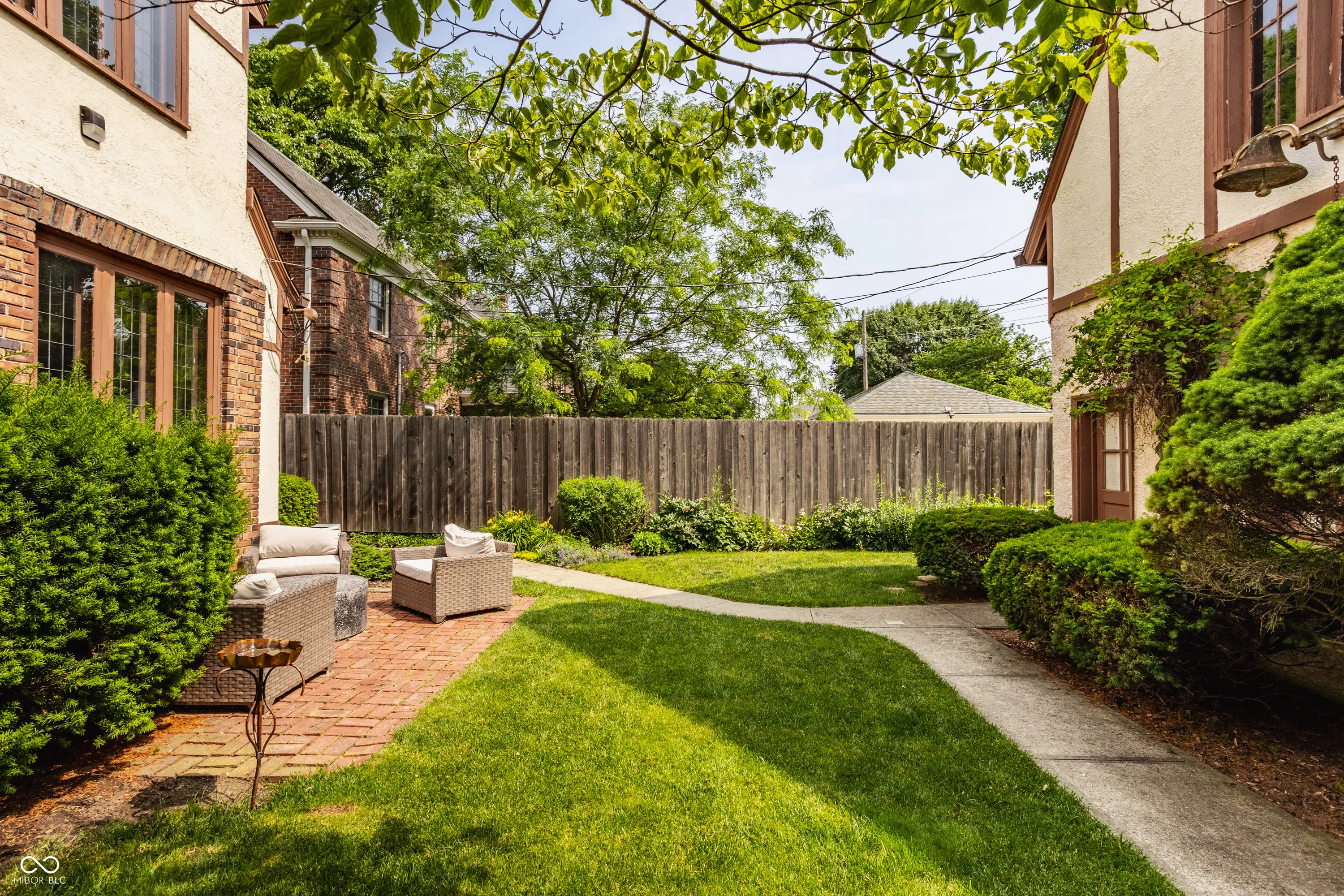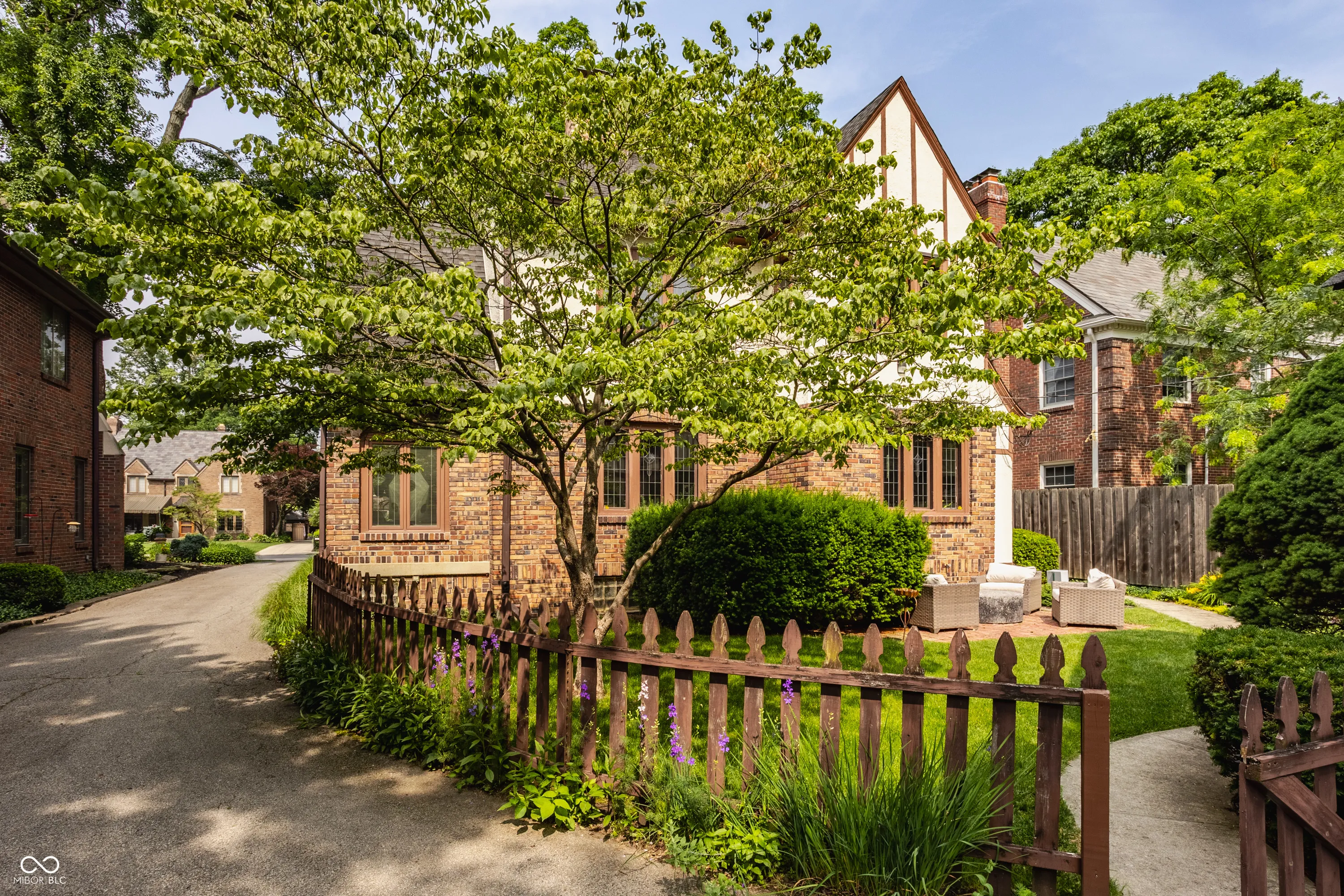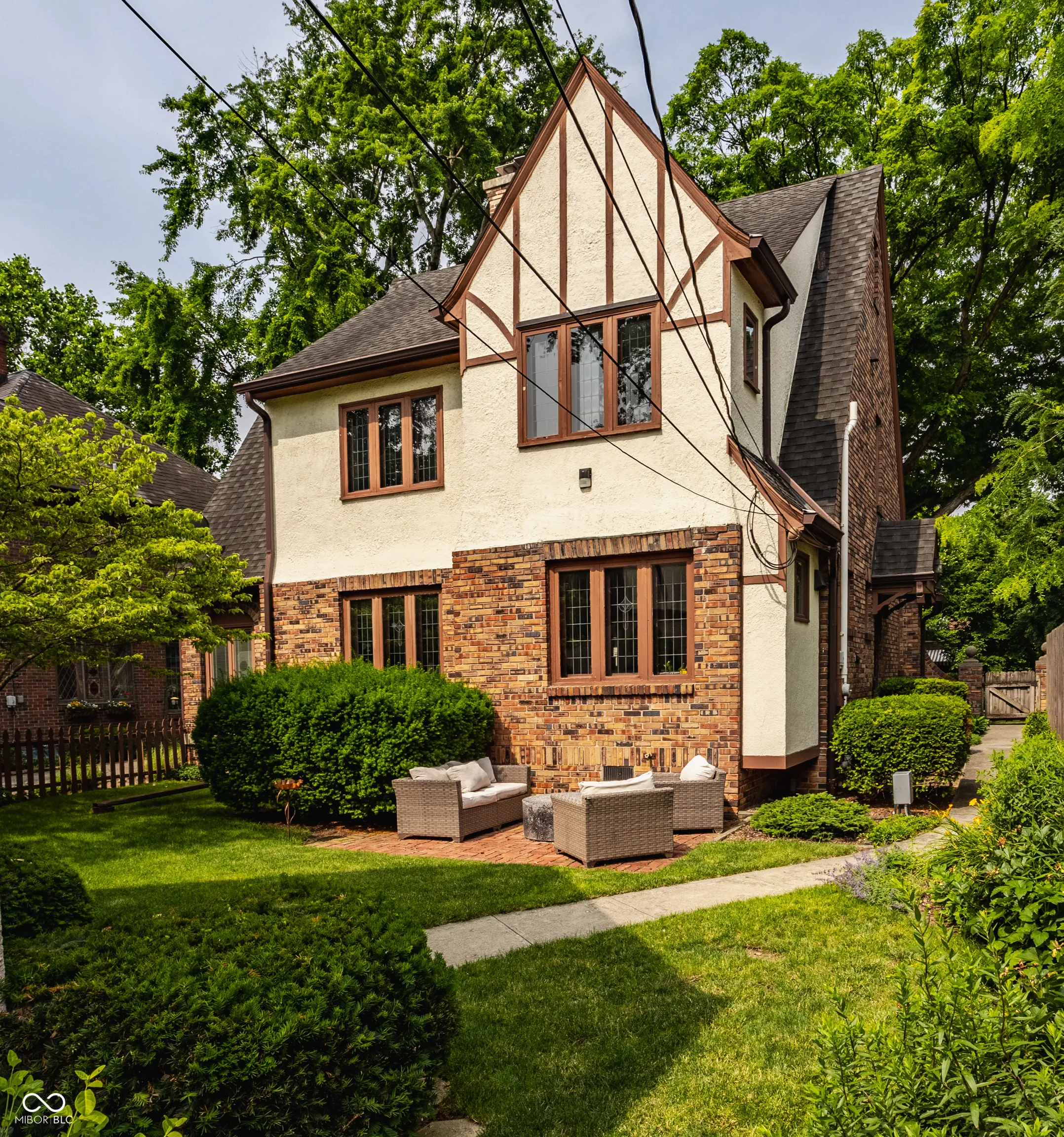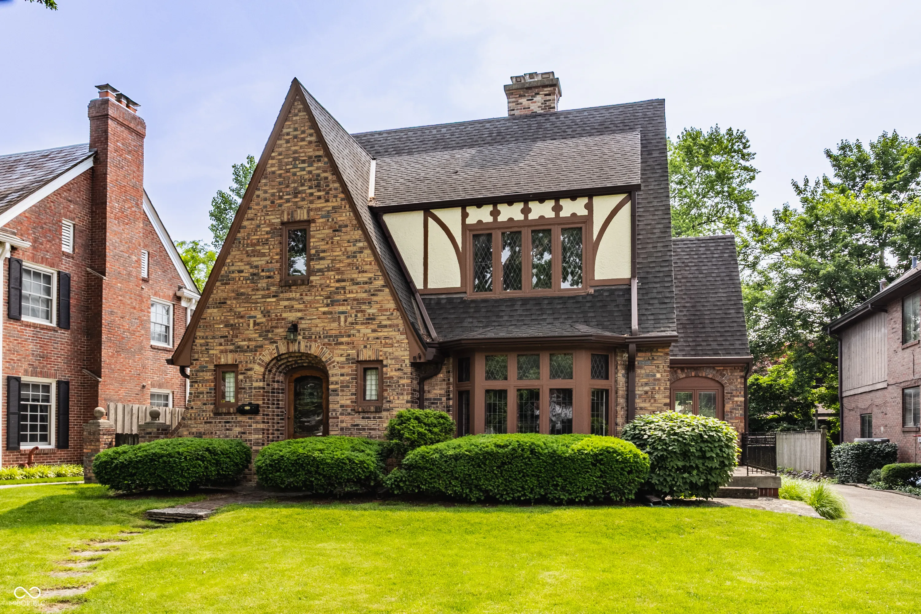 Nestled on coveted Pennsylvania Street in the heart of Meridian Kessler, this charming brick Tudor blends timeless character with modern updates. Leaded glass windows, bowed decorative windows, and gleaming hardwoods pair beautifully with fresh paint, new lighting, and updated flooring throughout. The main level features a sun-filled living room with gas fireplace, a formal dining room, an enchanting sunroom with exposed brick walls, and half bath. The stunning white kitchen boasts subway tile, stainless steel appliances, and ample storage. Upstairs offers an oversized primary suite with sitting or dressing area, two additional bedrooms, and two beautifully updated bathrooms. The finished basement provides extra living space, laundry area, half bath, and storage. Enjoy summer evenings on the open side patio or the private paver patio in the backyard oasis. A detached 2-car garage with upper storage completes this exceptional Meridian Kessler gem.