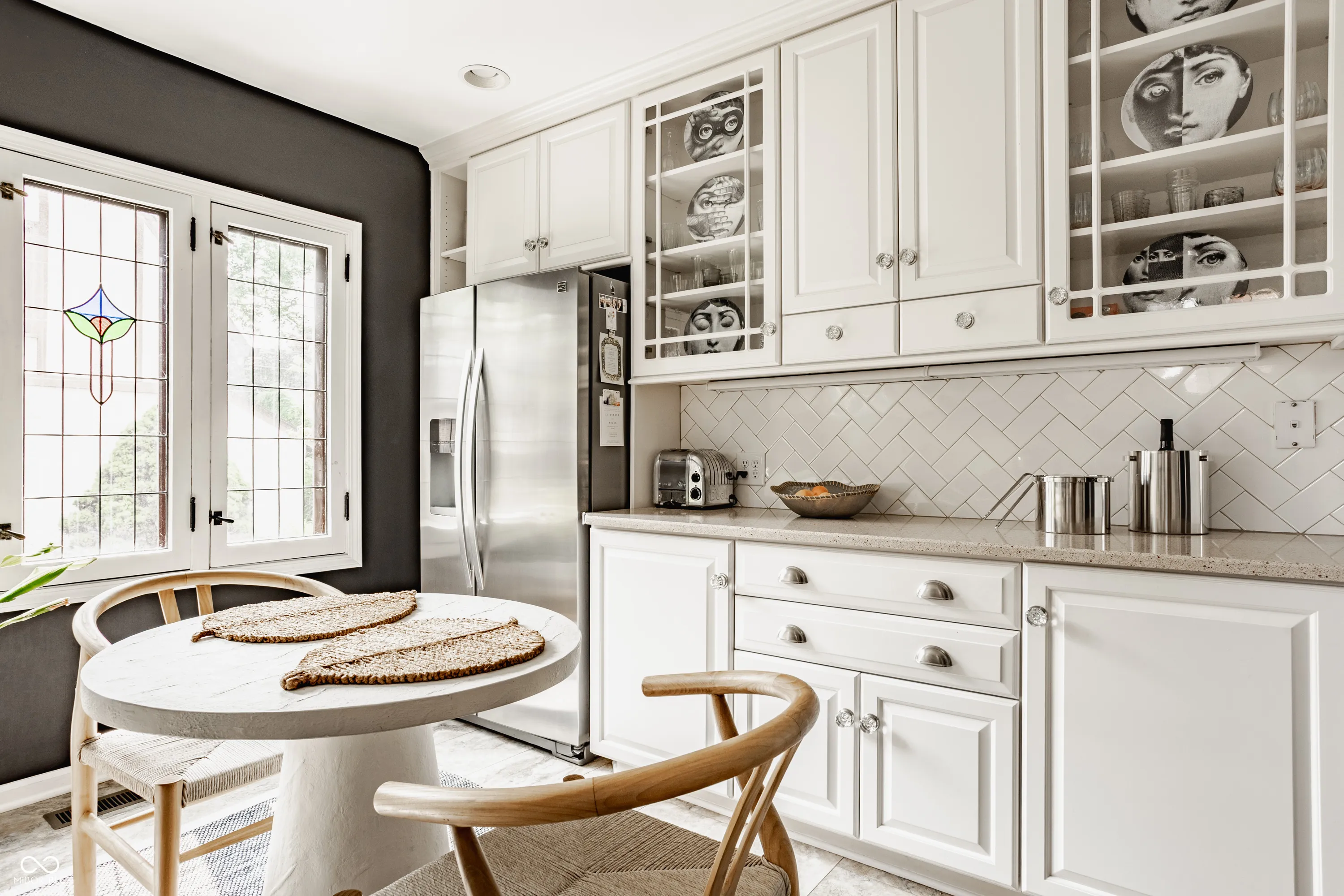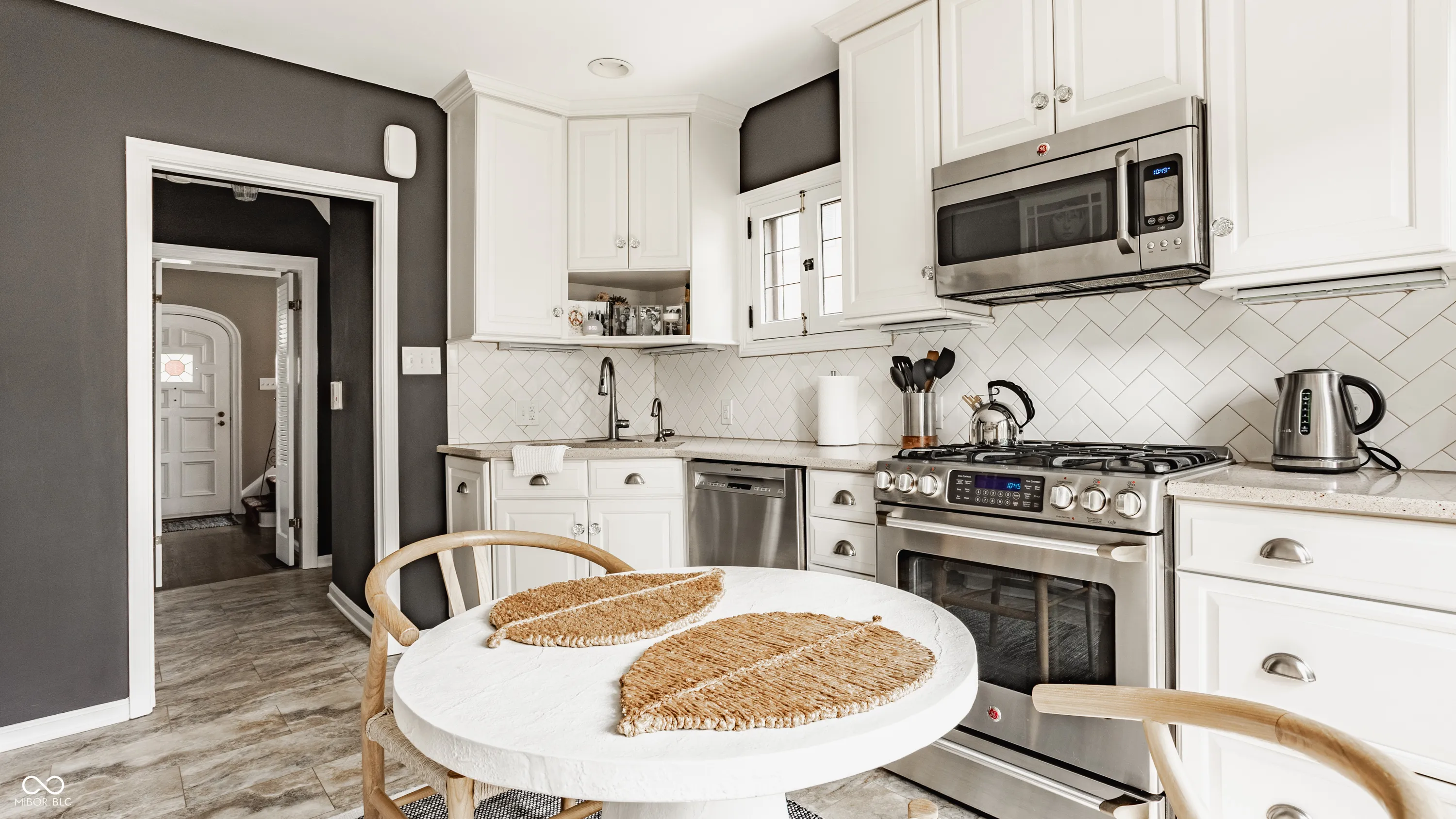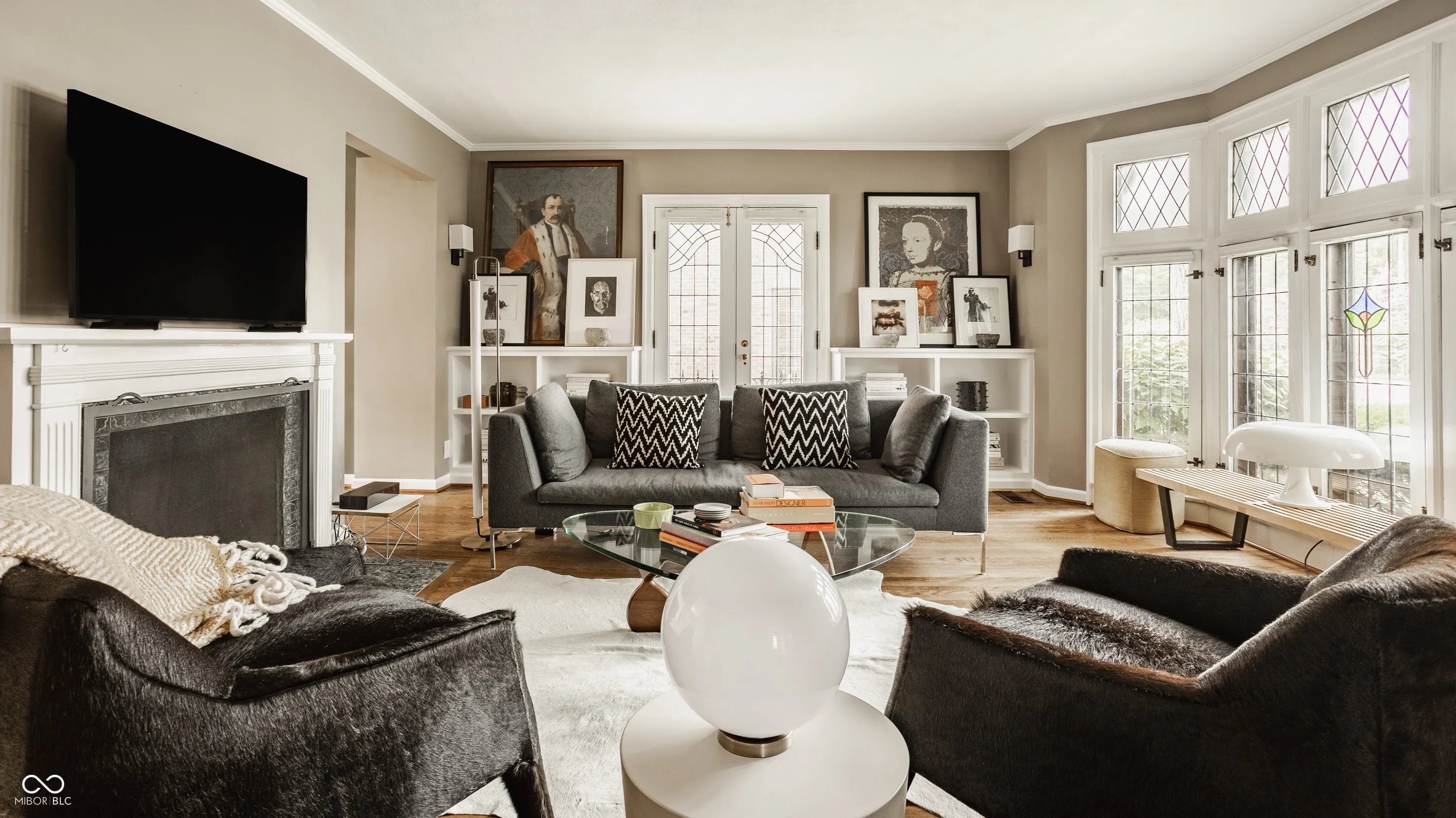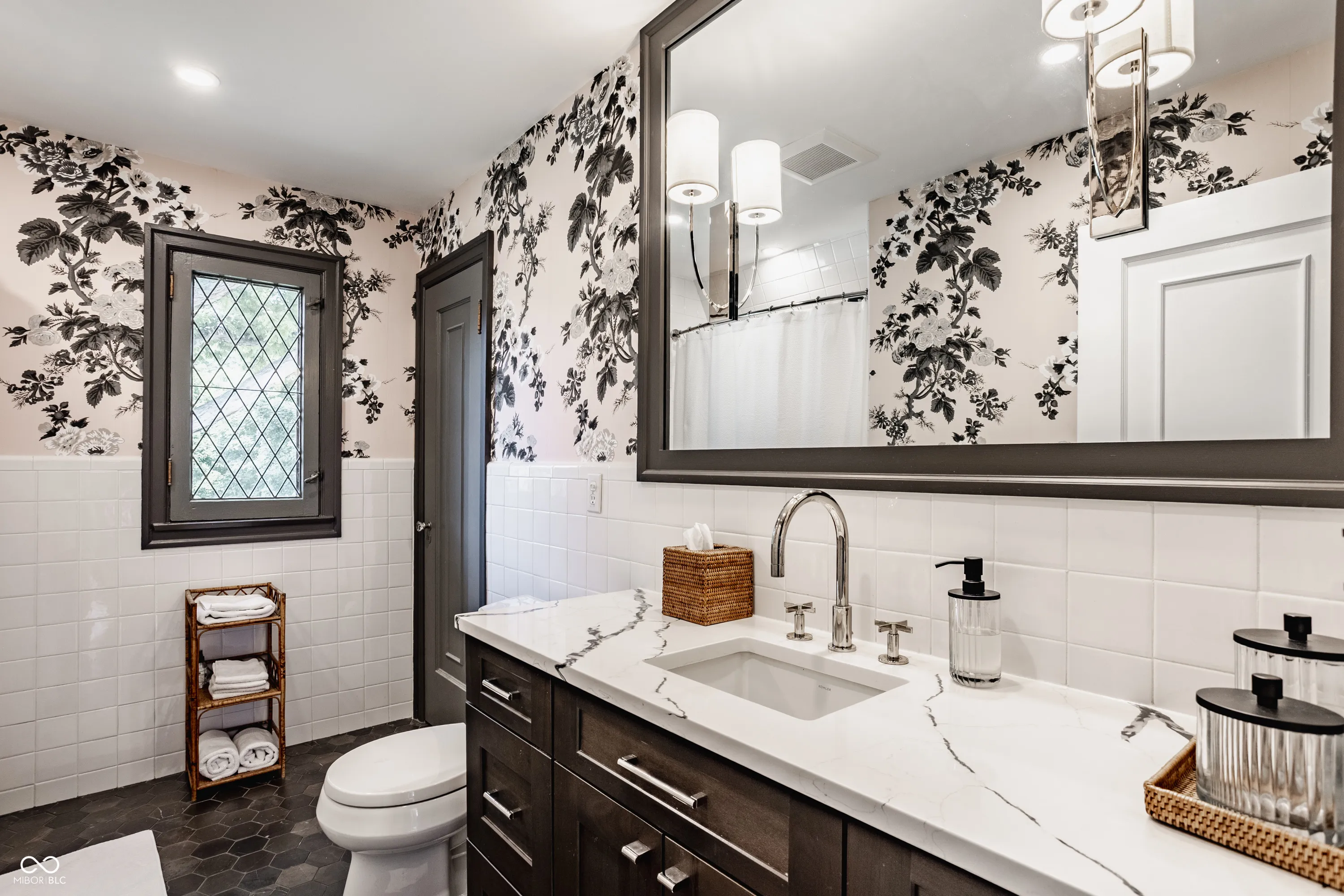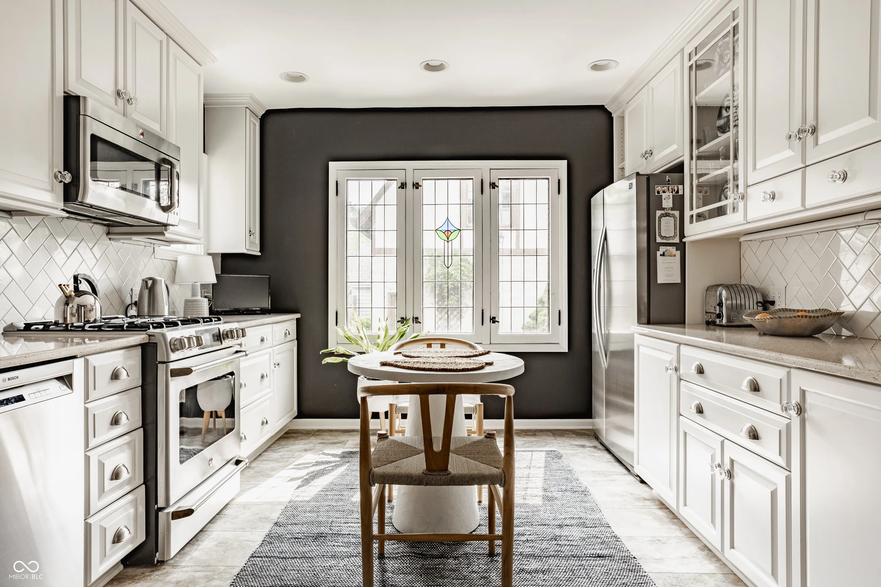 Nestled on coveted Pennsylvania Street in the heart of Meridian Kessler, this charming brick Tudor blends timeless character with modern updates. Leaded glass windows, bowed decorative windows, and gleaming hardwoods pair beautifully with fresh paint, new lighting, and updated flooring throughout. The main level features a sun-filled living room with gas fireplace, a formal dining room, an enchanting sunroom with exposed brick walls, and half bath. The stunning white kitchen boasts subway tile, stainless steel appliances, and ample storage. Upstairs offers an oversized primary suite with sitting or dressing area, two additional bedrooms, and two beautifully updated bathrooms. The finished basement provides extra living space, laundry area, half bath, and storage. Enjoy summer evenings on the open side patio or the private paver patio in the backyard oasis. A detached 2-car garage with upper storage completes this exceptional Meridian Kessler gem.