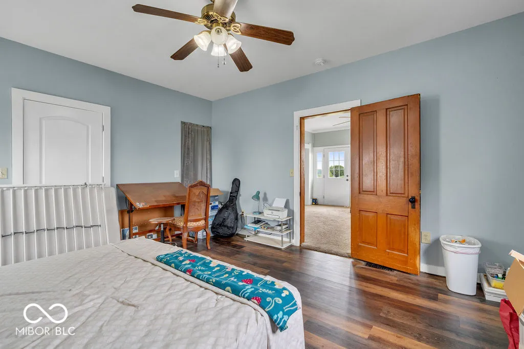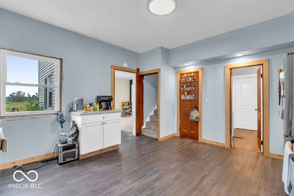 A Country Retreat with Endless Potential! Escape to peace and privacy with this 3-bedroom,2-bath two-story farmhouse, perfectly situated on nearly 6 acres and set far back from the road. This location is fantastic! Surrounded by open fields, this picturesque property offers a serene rural setting with a spacious pasture–ideal for animals, gardening, or simply enjoying the view. The large county kitchen features a sunny breakfast room and flows seamlessly into the main level laundry. The primary bedroom is located on the main floor, while two generously sized bedrooms await upstairs. Additional highlights include a newer roof, vinyl windows throughout, a two-car detached garage, and a separate storage building–perfect for tools, hobbies, or extra space. With a little vision and Tlc, this farmhouse has the potential to become a dream rural retreat or hobby farm. Whether you’re looking to renovate for yourself or invest in a property with great bones and acreage, this is your chance to create something special.