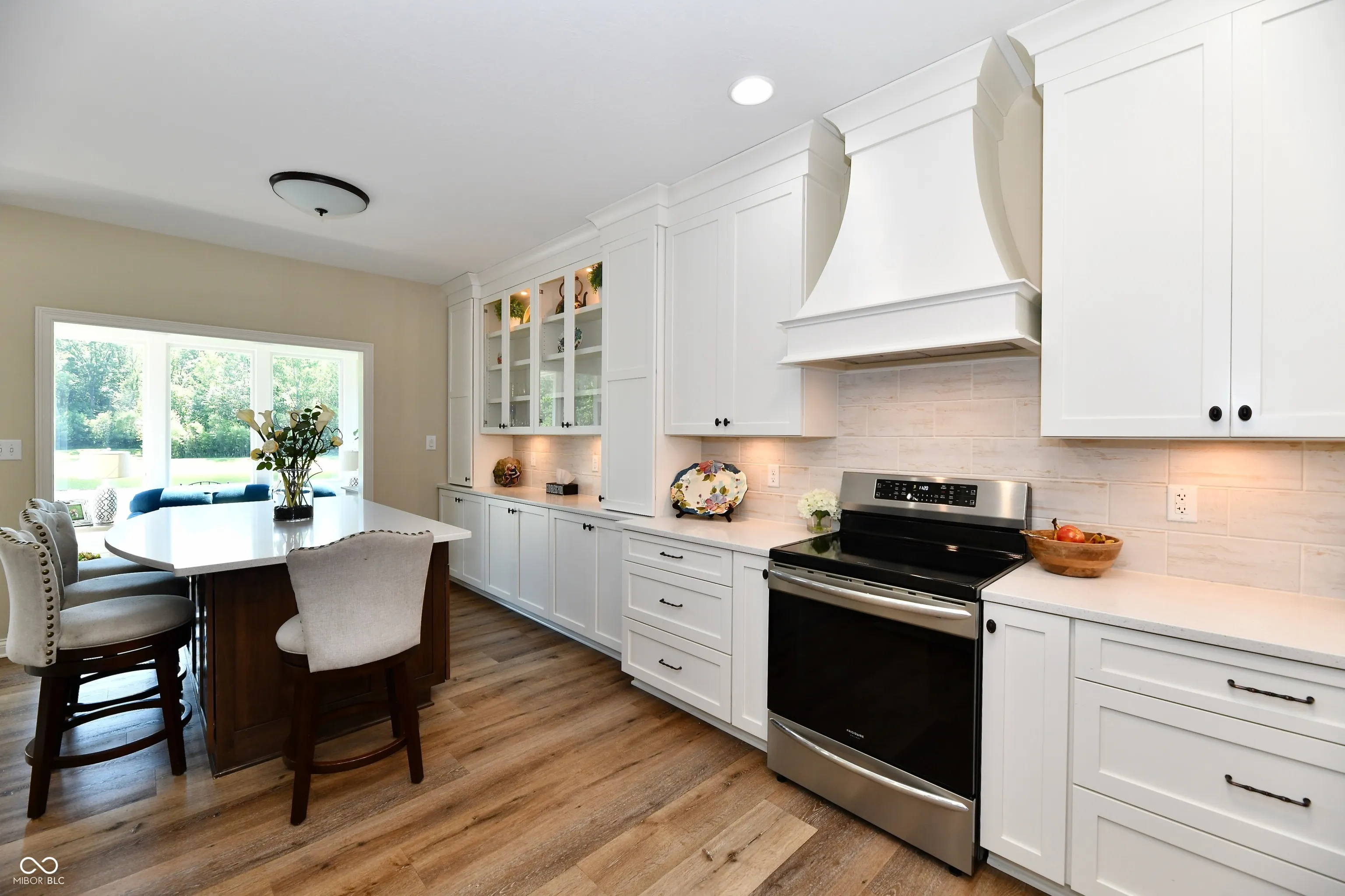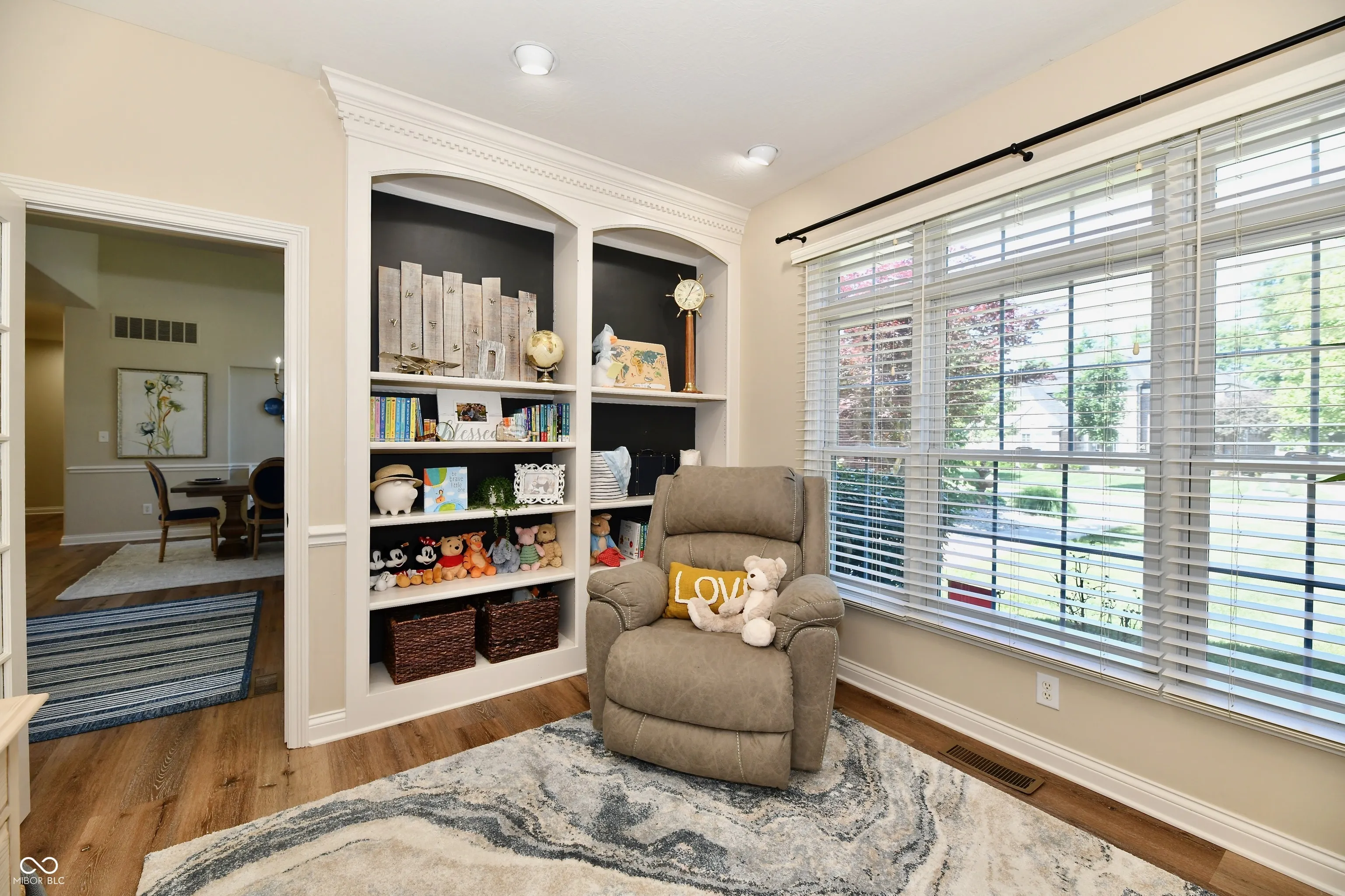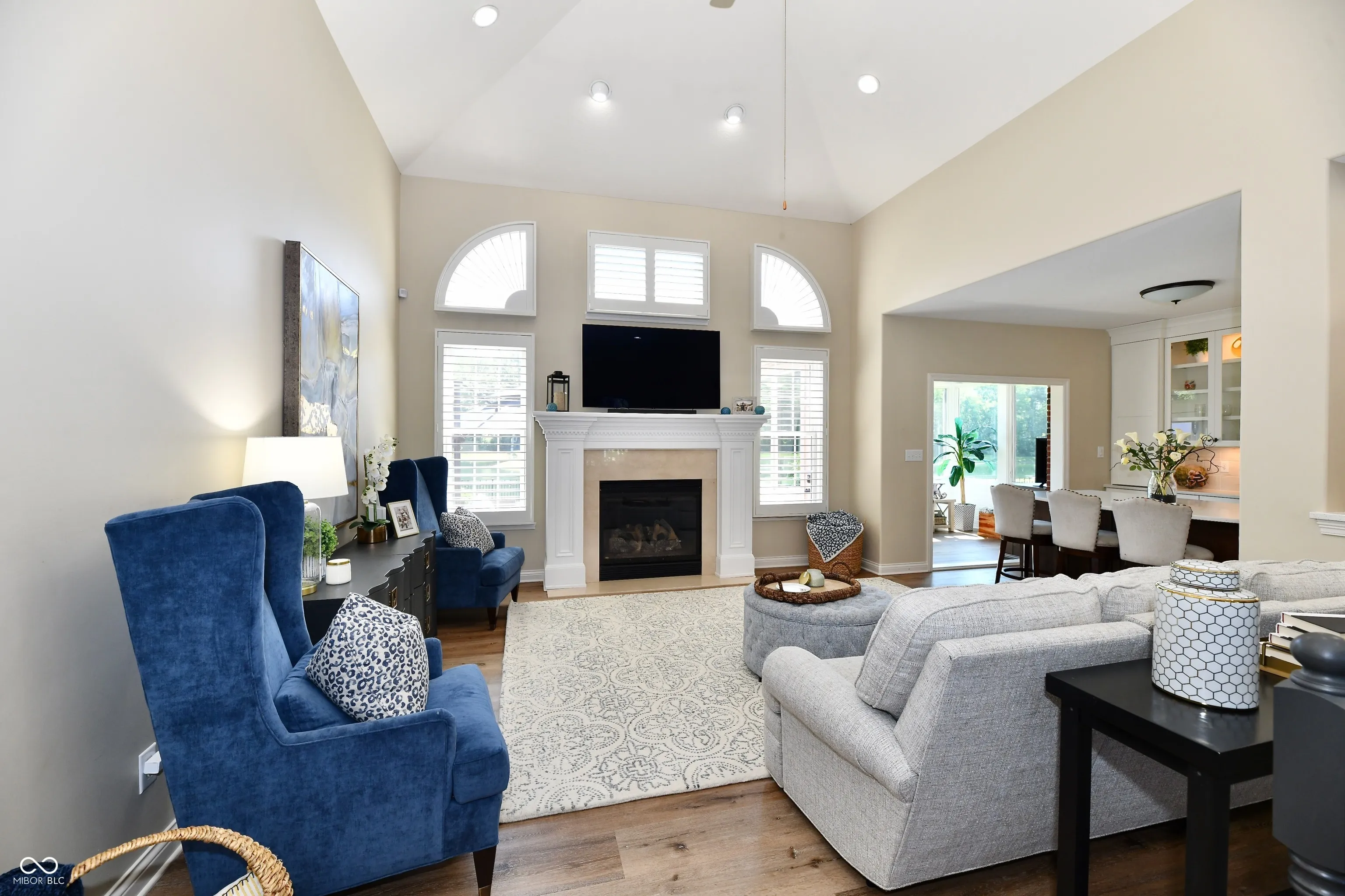 Fabulous executive home located in Misty Woods on a cul-de-sac. Walk in to an open floorplan with vaulted cathedral ceilings in the great room with new luxury vinyl plank floors, Gas fireplace and shutters on a full wall of windows. Formal dining room with pillars and 9ft windows. Newer 40K custom kitchen and appliances. Offering Quartz counters, induction range, pantry and lighted cabinets. Sunroom with split system for comfort heating and cooling, walks out to a paver patio, privacy and incredible view of a large pond surrounded by trees. Two more bedrooms on the main with a jack and jill bath. Double sinks and separate room for tub and shower. Office on the main with bookshelves is being used as a fourth bedroom on the main level. Laundry room is a dream with built-ins, utility sink and cabinetry to enjoy. The lower level includes another bedroom with egress window, full bath, play room or work out room, pool table and large family room finished to enjoy. Tons of storage in the lower level too. New landscaping, a 4 car garage and curb appeal make this one not to miss.