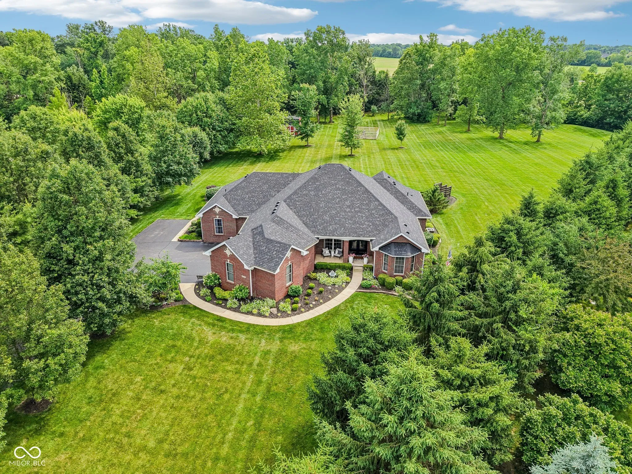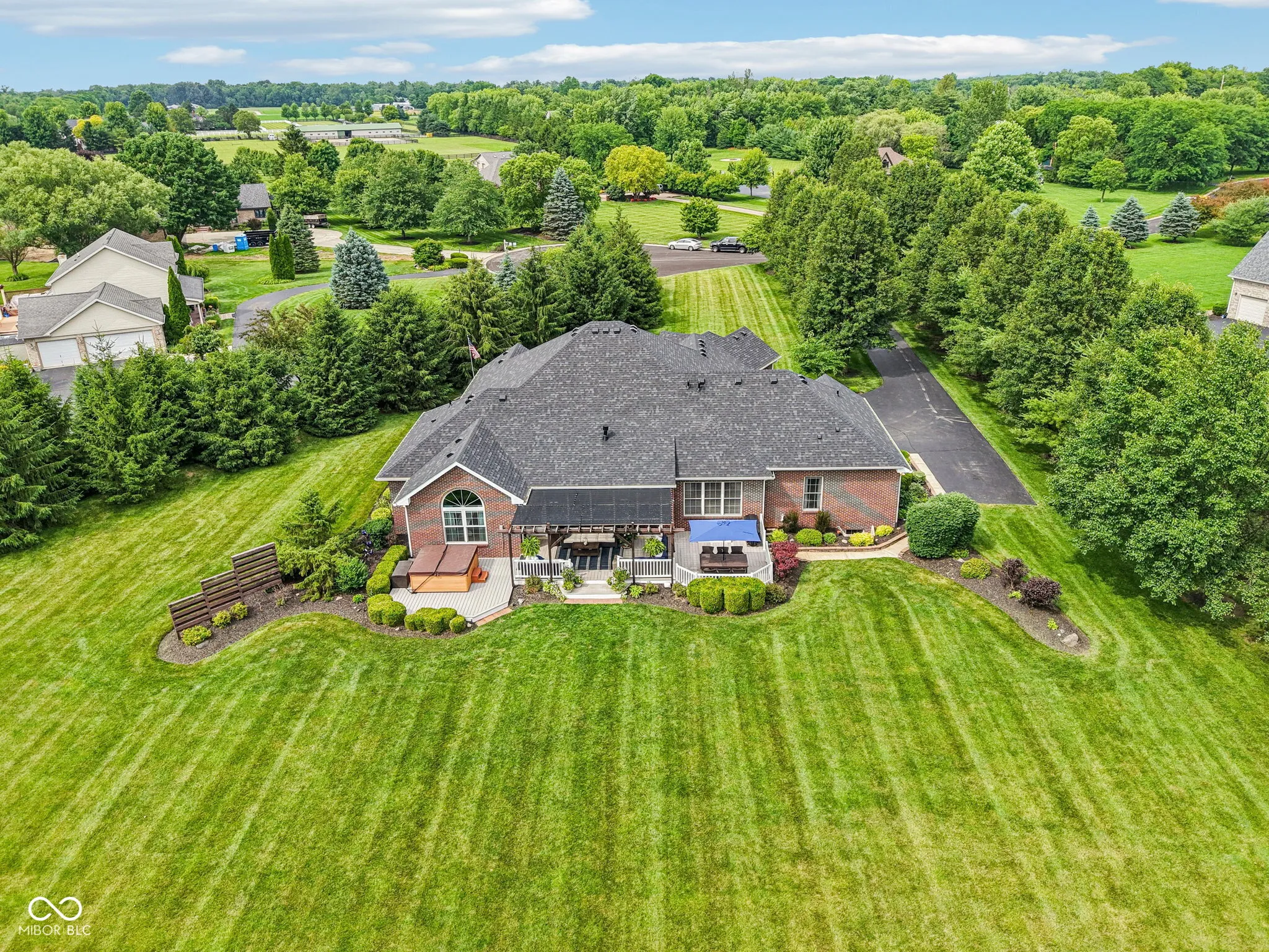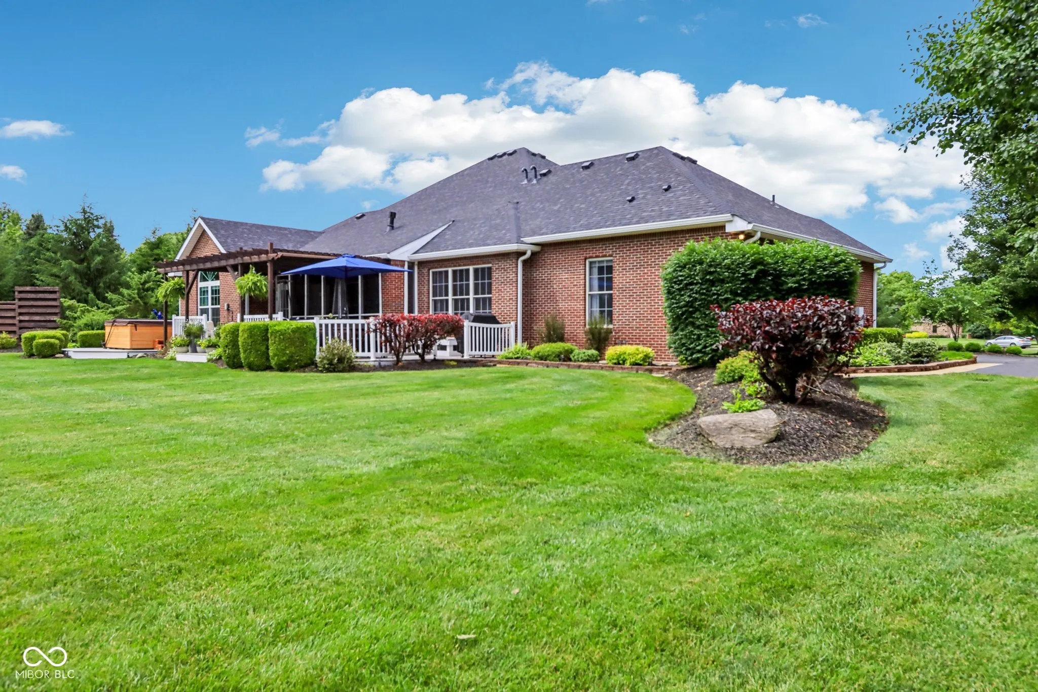 Private sanctuary on 3 beautifully landscaped, tree-lined acres – a true retreat offers space & countless possibilities. Greet your guests through double front doors. The great room impresses w/ its vaulted ceilings, updated stack-stone fireplace, rich wood mantel, & built-in speakers – perfect for both relaxation & entertaining. A dedicated office features a large window allowing you work from home while still feeling connected to nature. The primary suite is a restful escape w/ tall ceilings, large windows, & a remarkable, remodeled bath: custom tile, freestanding soaking tub, & walk-in shower. The repeated tile ties the space together w/ stylish, purposeful design – plus you’ll enjoy your own private exit to the screened-in porch & hot tub for unwinding after a long day. The second bedroom offers a remodeled ensuite bath — space is perfect for guests or multigenerational living. The third & fourth bedrooms share a beautifully updated Jack-and-Jill bath. The heart of the home-the kitchen-has been beautifully refreshed w/ painted cabinetry, quartz countertops, a large peninsula w/ additional seating, & new appliances (2022 or newer). Even the laundry room and 1/2 bath are redone! Hardwood floors, newly refinished in a modern, light matte finish, flow gracefully through much of the main level. Downstairs, the finished basement offers a true entertainer’s dream – a huge gathering room with space for a pool table, poker table, air hockey, or whatever games bring you together. A large bar area stands ready for adult beverages or a kid-friendly hangout. The basement also includes a workout room, a craft room, a 5th bedroom, a remodeled full bath, and plenty of storage space – delivering something for everyone in the family