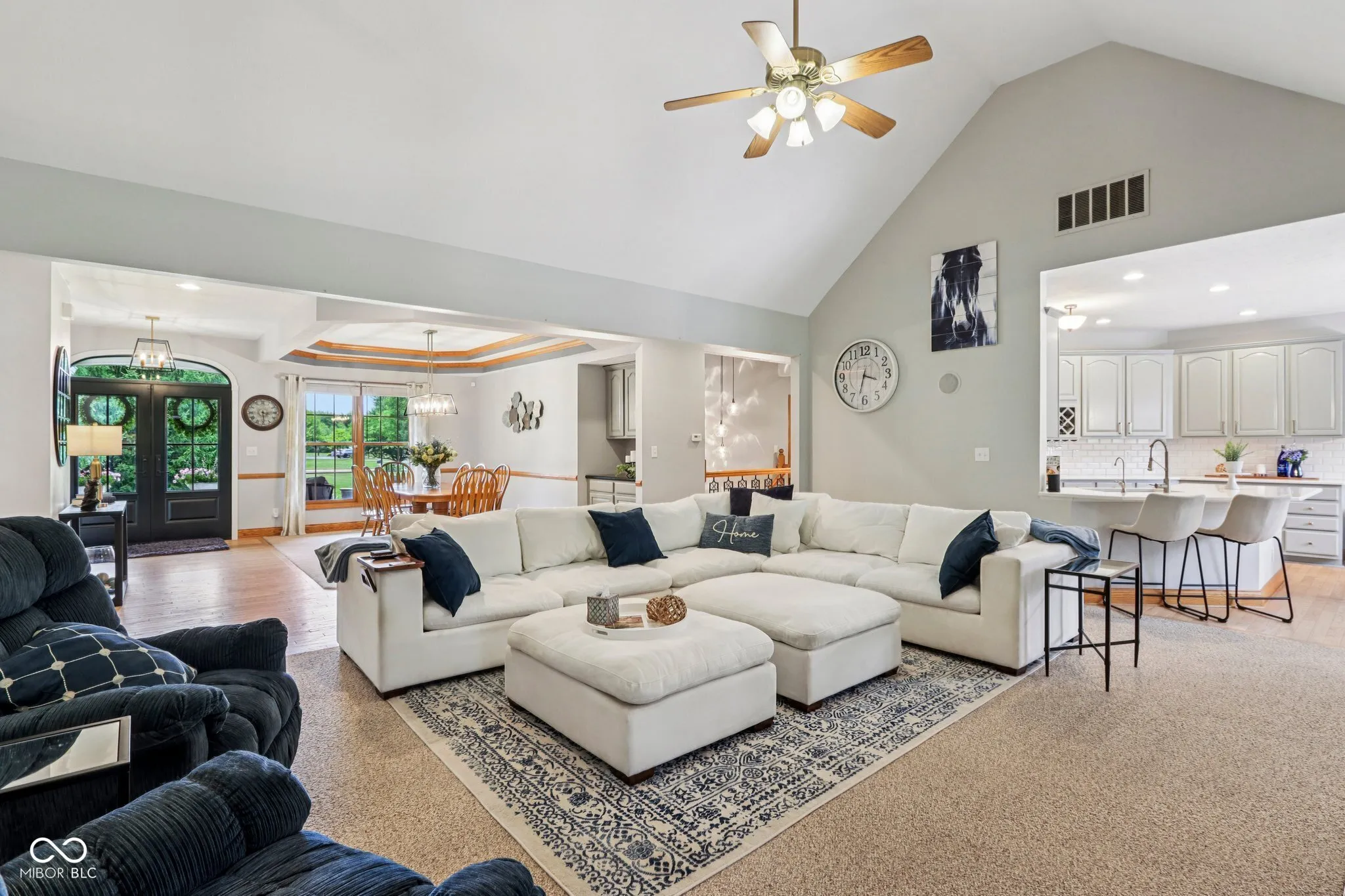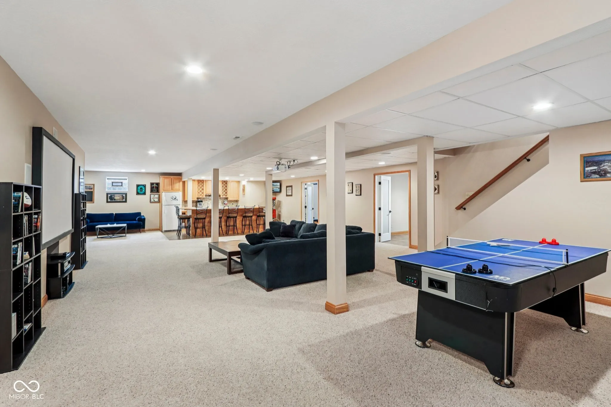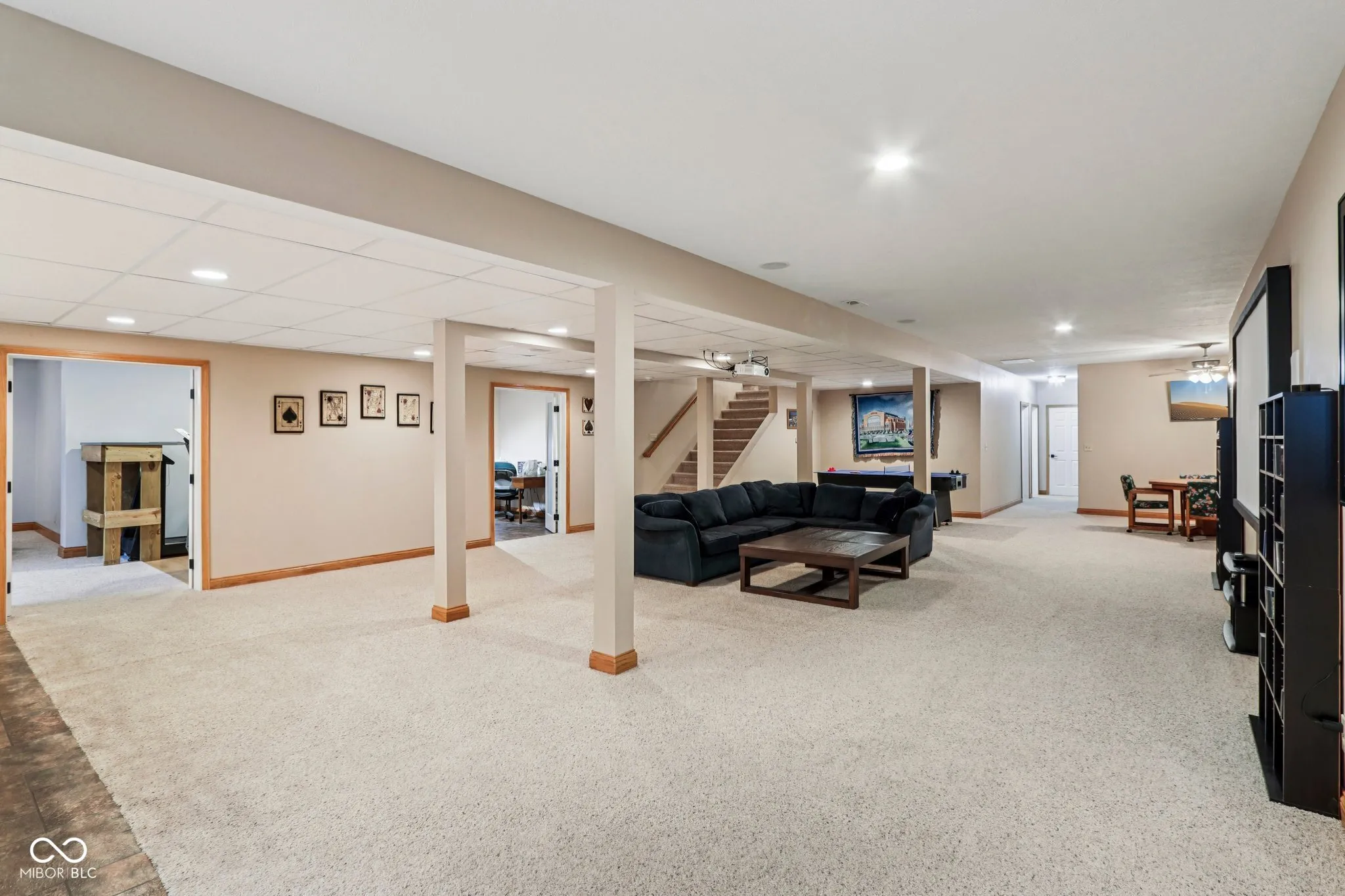 Private sanctuary on 3 beautifully landscaped, tree-lined acres – a true retreat offers space & countless possibilities. Greet your guests through double front doors. The great room impresses w/ its vaulted ceilings, updated stack-stone fireplace, rich wood mantel, & built-in speakers – perfect for both relaxation & entertaining. A dedicated office features a large window allowing you work from home while still feeling connected to nature. The primary suite is a restful escape w/ tall ceilings, large windows, & a remarkable, remodeled bath: custom tile, freestanding soaking tub, & walk-in shower. The repeated tile ties the space together w/ stylish, purposeful design – plus you’ll enjoy your own private exit to the screened-in porch & hot tub for unwinding after a long day. The second bedroom offers a remodeled ensuite bath — space is perfect for guests or multigenerational living. The third & fourth bedrooms share a beautifully updated Jack-and-Jill bath. The heart of the home-the kitchen-has been beautifully refreshed w/ painted cabinetry, quartz countertops, a large peninsula w/ additional seating, & new appliances (2022 or newer). Even the laundry room and 1/2 bath are redone! Hardwood floors, newly refinished in a modern, light matte finish, flow gracefully through much of the main level. Downstairs, the finished basement offers a true entertainer’s dream – a huge gathering room with space for a pool table, poker table, air hockey, or whatever games bring you together. A large bar area stands ready for adult beverages or a kid-friendly hangout. The basement also includes a workout room, a craft room, a 5th bedroom, a remodeled full bath, and plenty of storage space – delivering something for everyone in the family