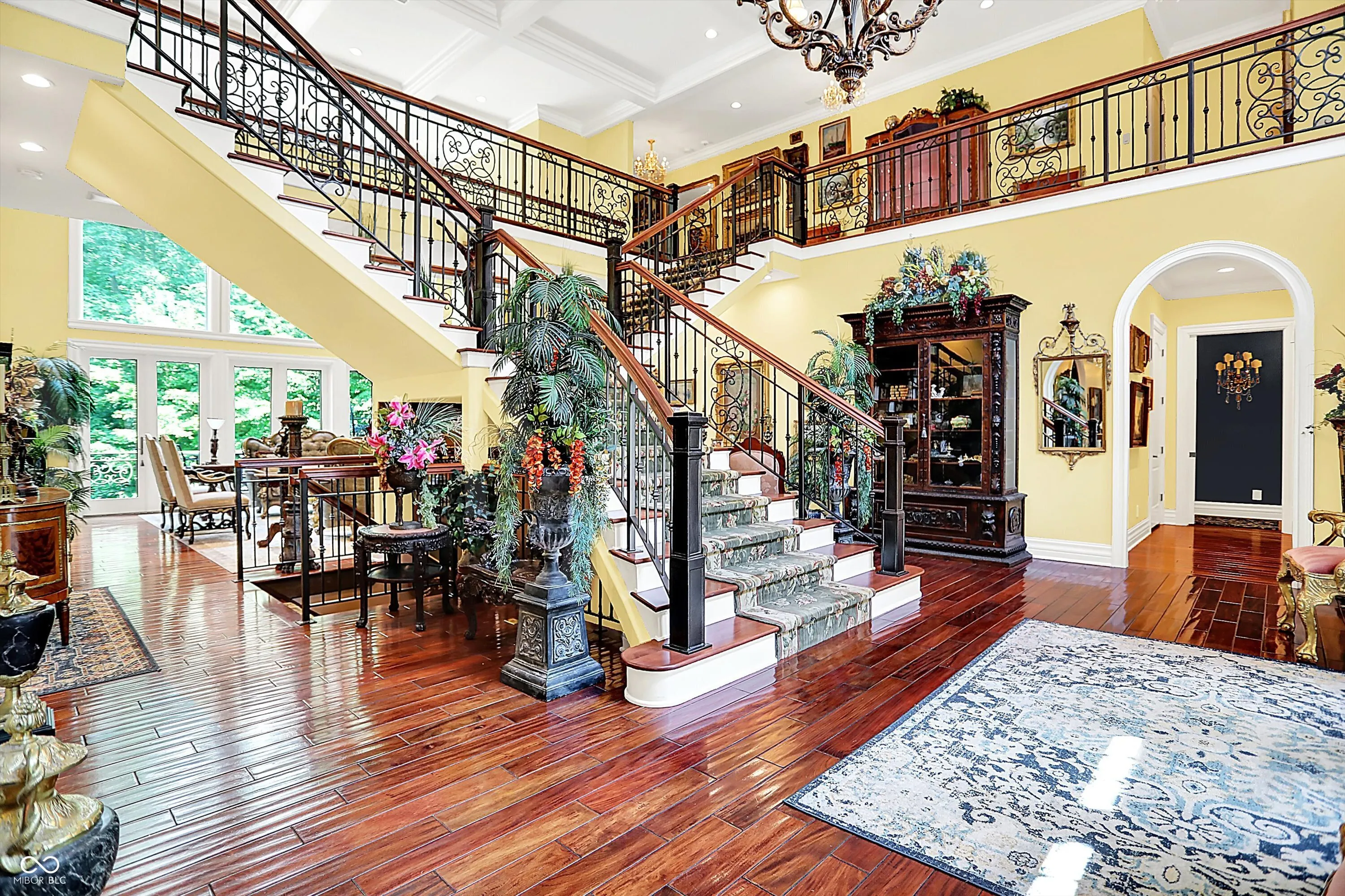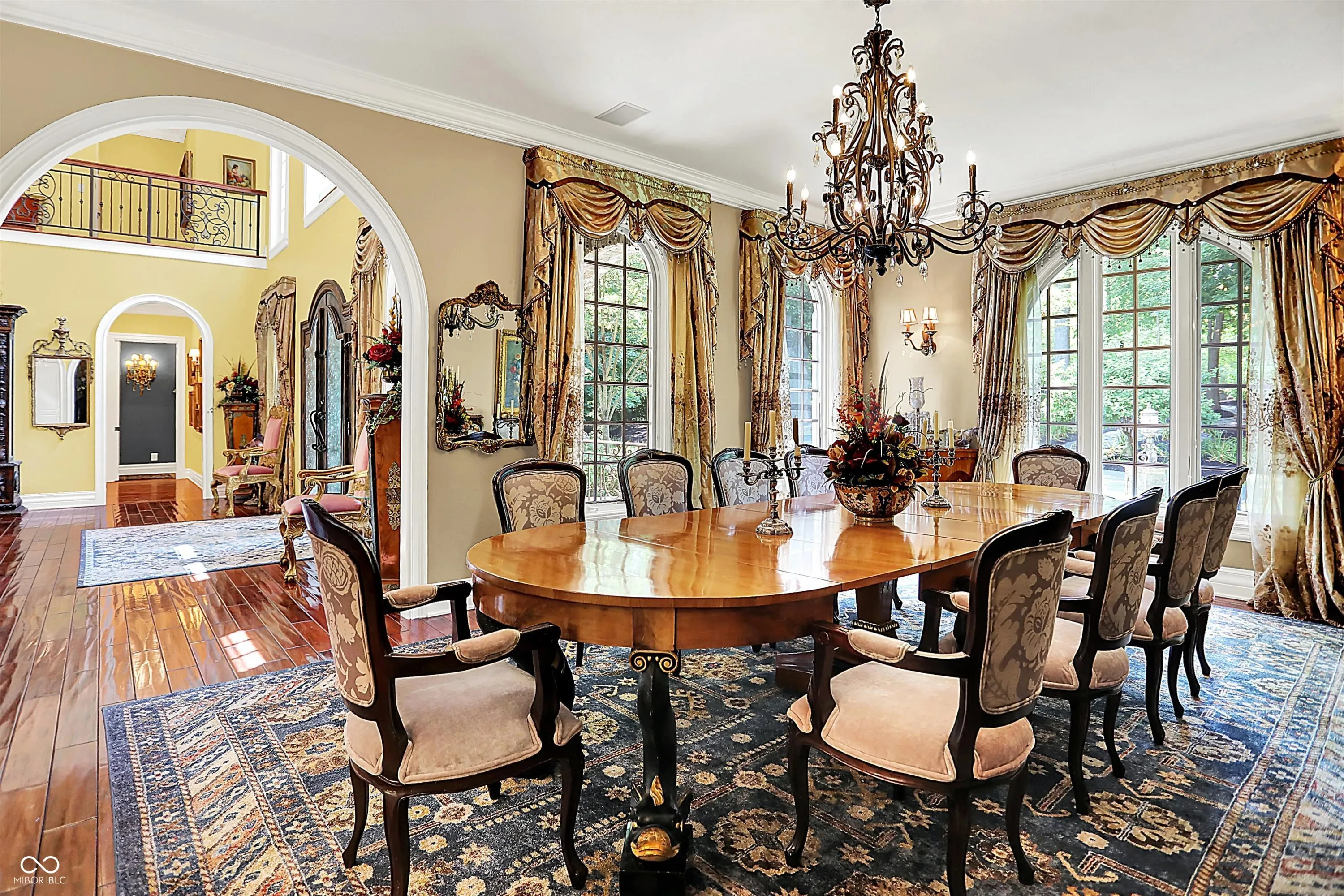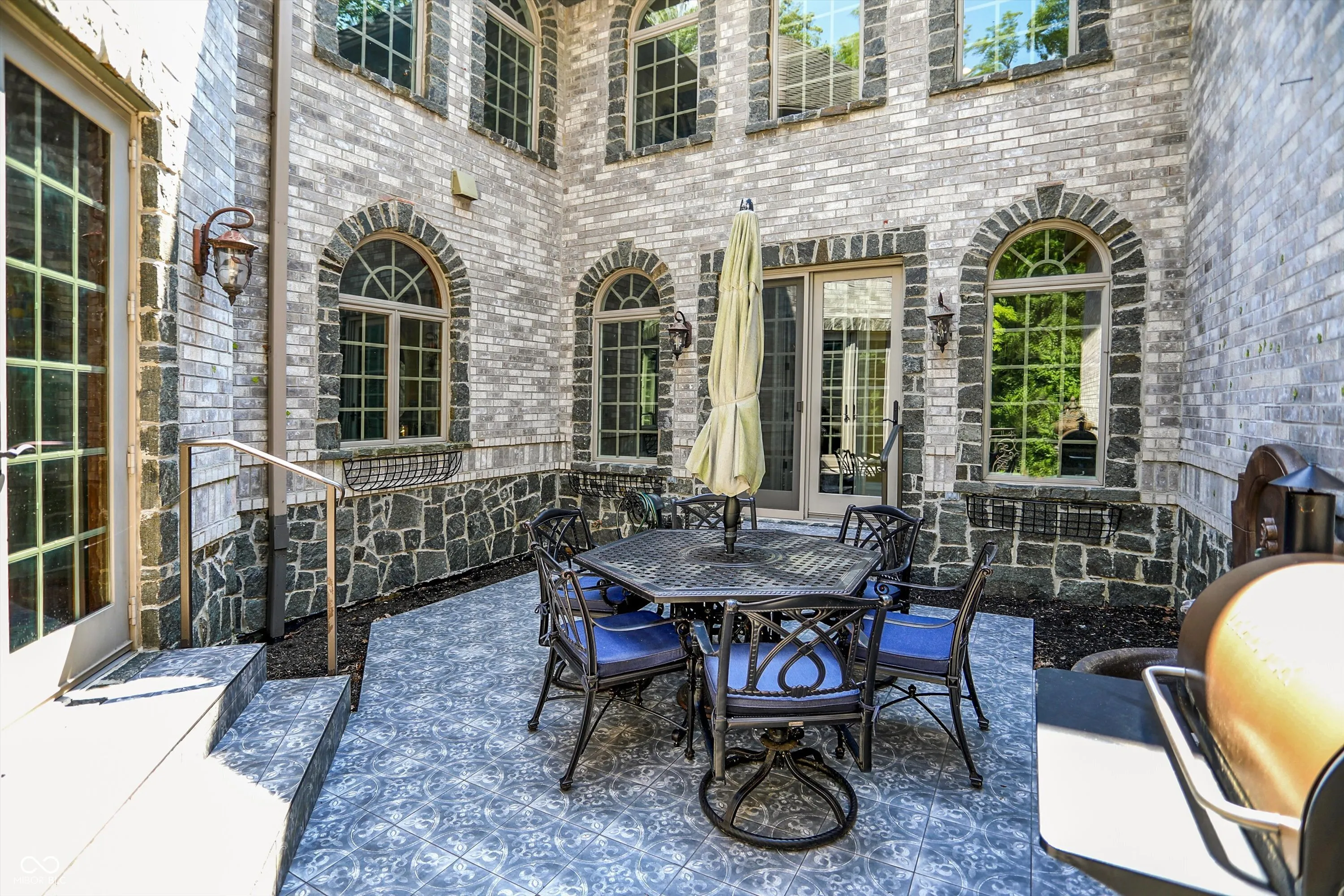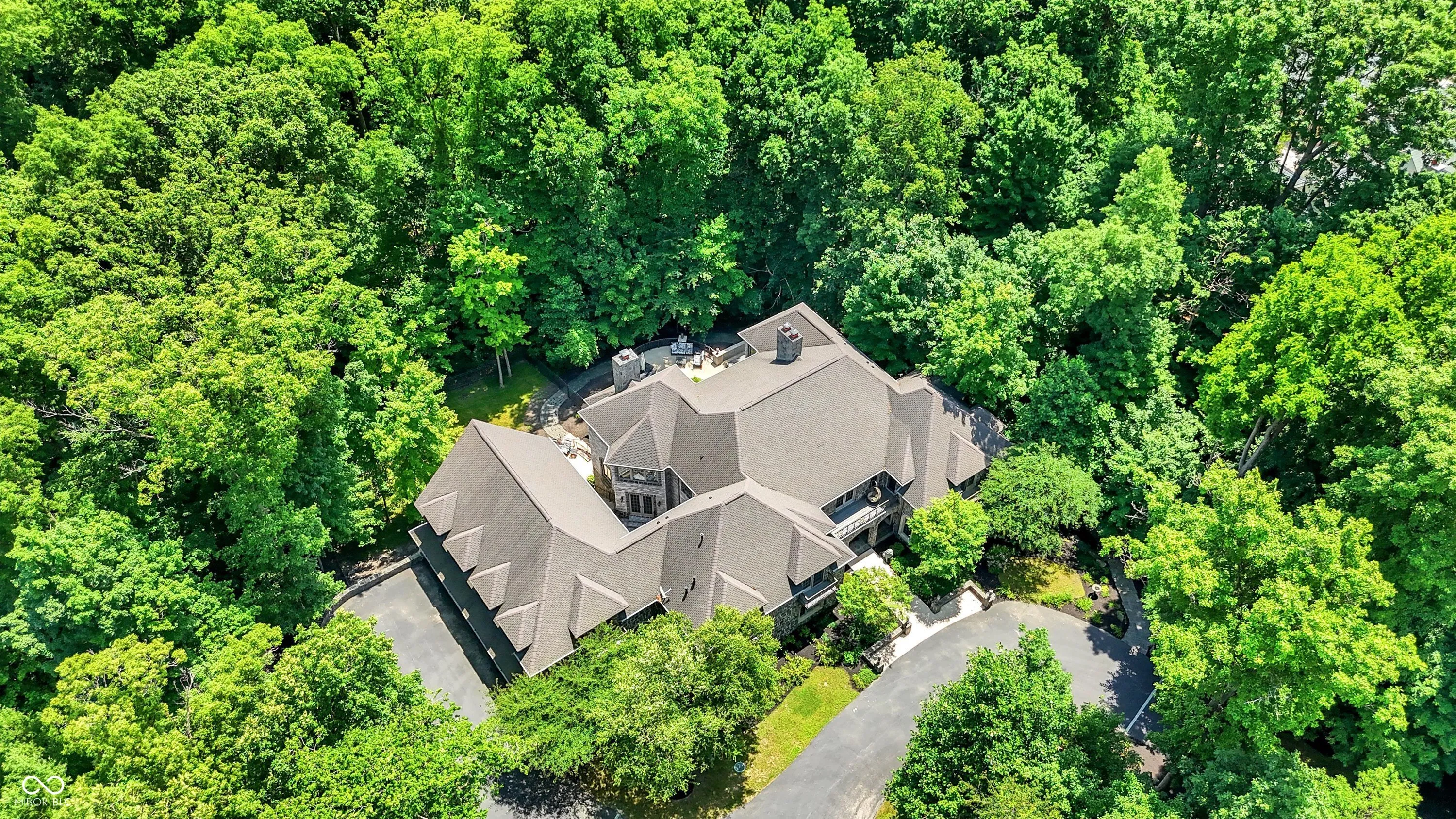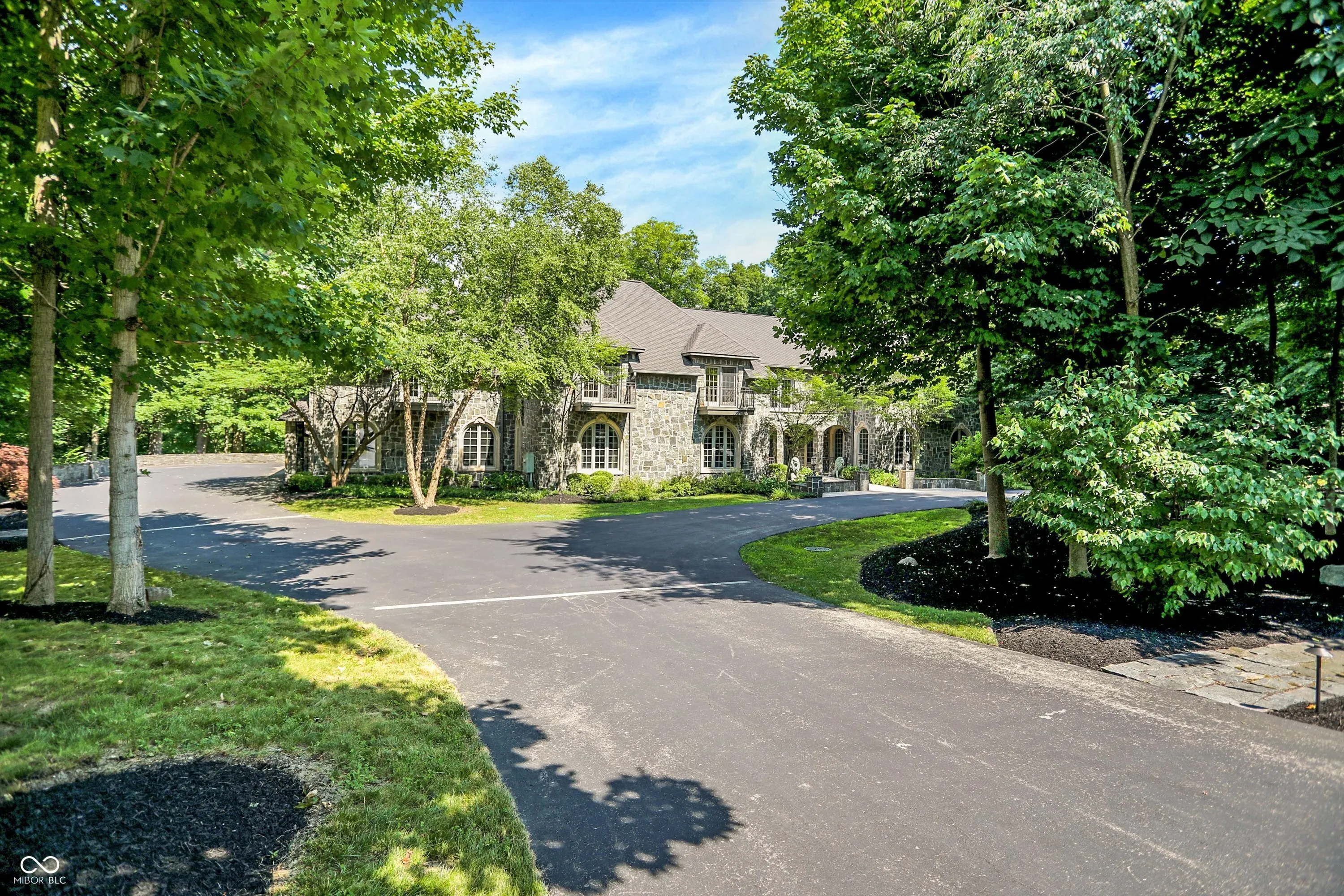 Step into timeless elegance with this extraordinary 13,000+ sq ft French Chateau-inspired estate, nestled on 3.81 secluded, wooded acres. Designed with luxury & comfort in mind, this masterfully crafted home offers an exceptional blend of refined architecture, thoughtful amenities, & serene outdoor living. Enter through grand double doors into a stunning interior where old-world charm meets modern sophistication. The main floor features a luxurious primary suite boasting dual walk-in closets, private laundry, heated floors, dual vanities, a whirlpool soaking tub, & a spacious walk-in glass shower. Enjoy morning coffee from your private balcony or descend a discreet staircase to a private home office tucked away in the finished lower level. The main level continues with formal & casual living spaces, convenient elevator, including a stately dining room and two of the home’s three wood-burning fireplaces-perfect for intimate evenings or grand entertaining. Upstairs, a secondary master suite provides a private retreat for guests or extended family. Two additional bedrooms, each with ensuite baths & walk-in closets, share the upper level along with a spacious bonus room, loft, additional den area with half bath, & second laundry room for convenience. The fully finished walk-out lower level is an entertainer’s paradise, featuring a kitchenette & dining area, expansive family room, game room, private theater room, exercise room, & a fifth bedroom with a private full bath and walk-in closet. Outside, stone patios invite al fresco dining and lounging with an outdoor kitchen & hot tub, all surrounded by lush landscaping & peaceful wooded views. The finished garage takes versatility to the next level, doubling as an indoor basketball half court perfect for year-round recreation or fitness. This Zionsville estate offers every imaginable amenity & the timeless allure of European design, behind a gated entry. Discover unparalleled luxury, privacy, and sophistication.