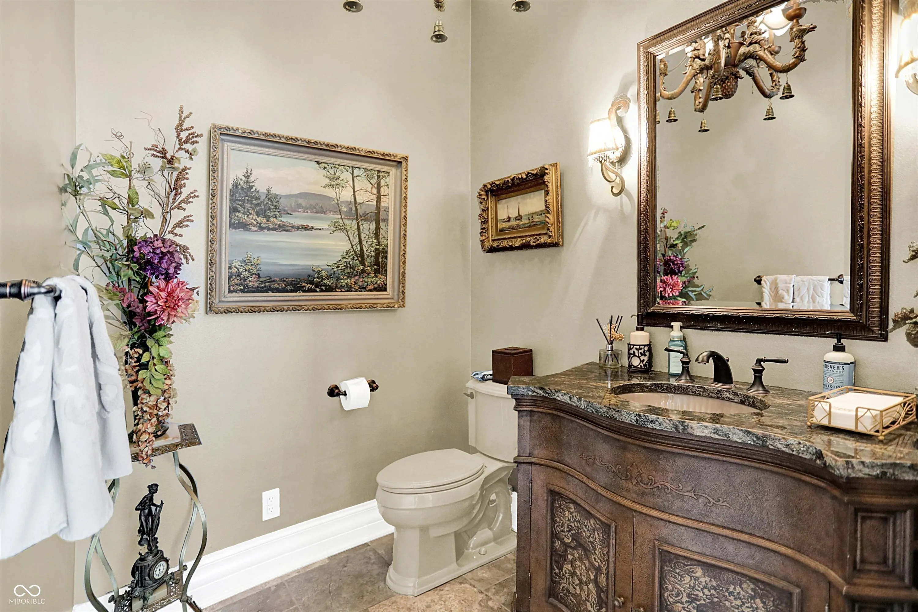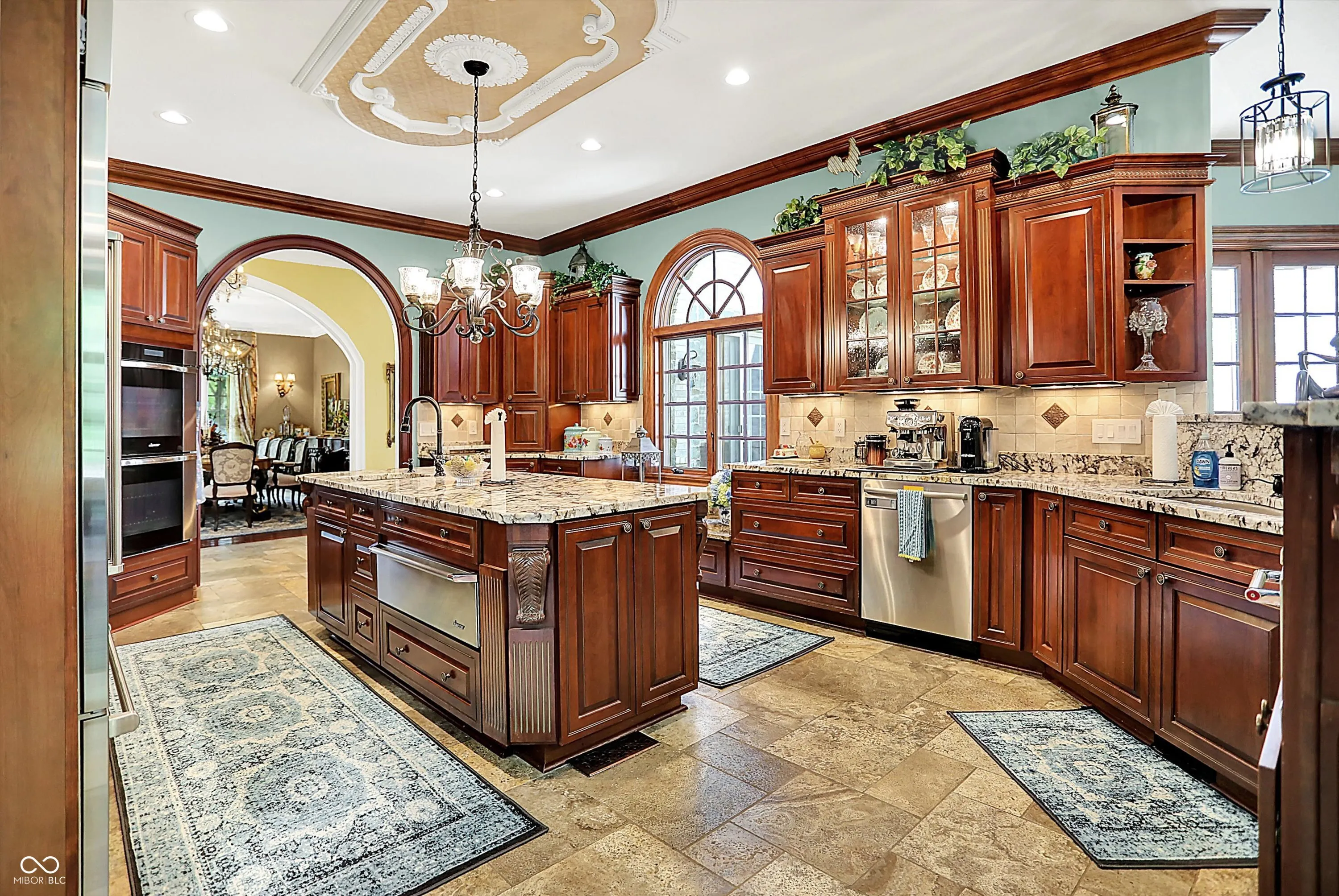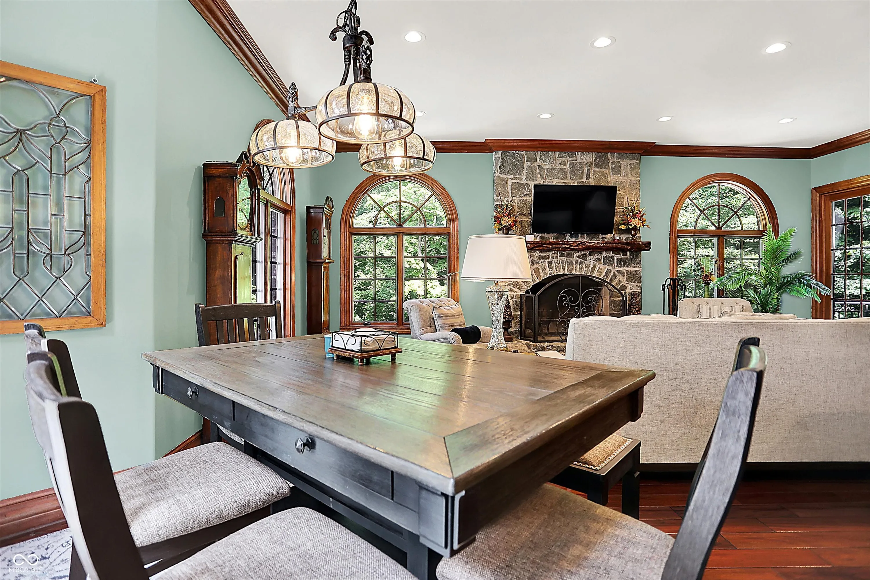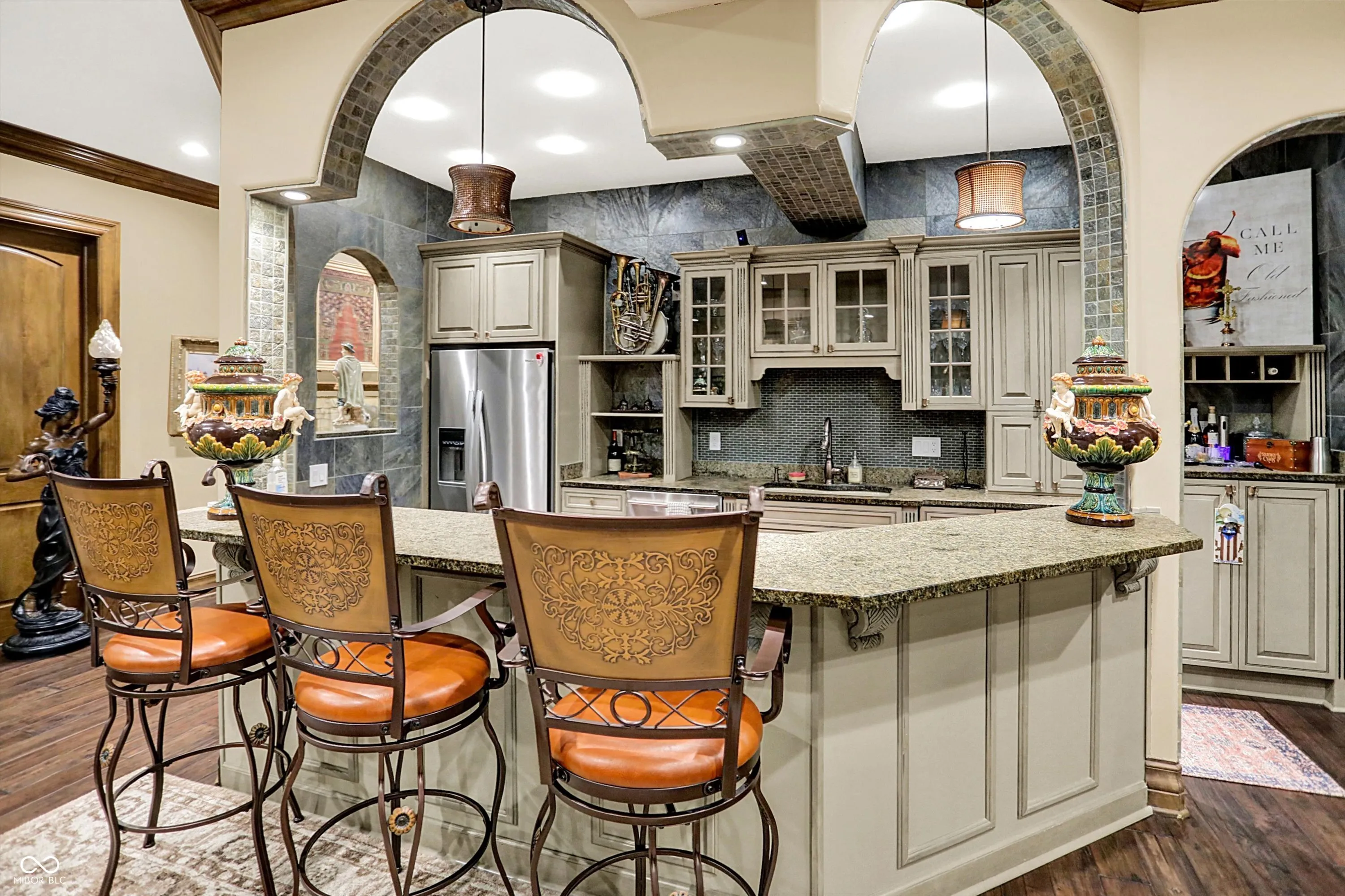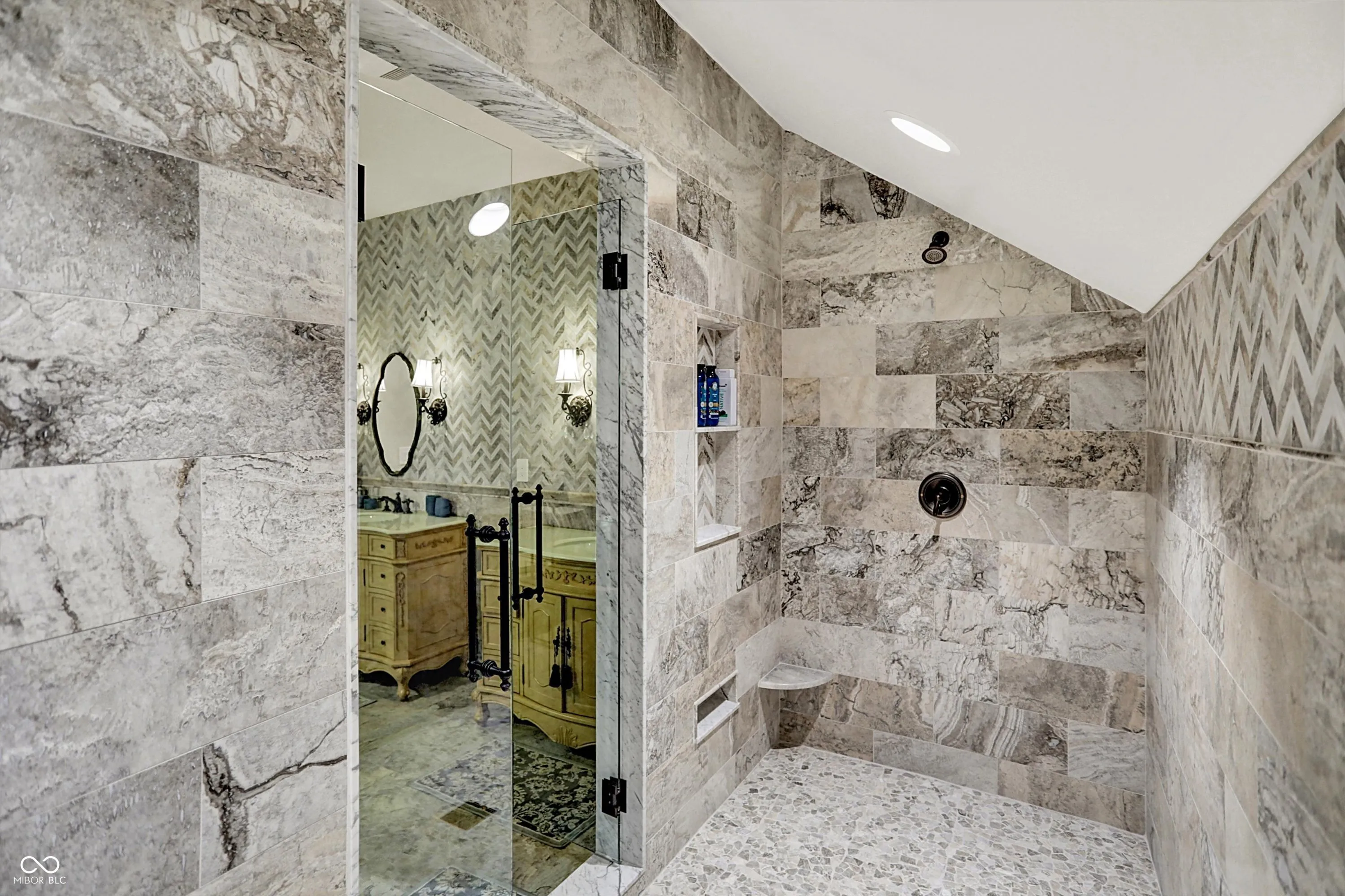 Step into timeless elegance with this extraordinary 13,000+ sq ft French Chateau-inspired estate, nestled on 3.81 secluded, wooded acres. Designed with luxury & comfort in mind, this masterfully crafted home offers an exceptional blend of refined architecture, thoughtful amenities, & serene outdoor living. Enter through grand double doors into a stunning interior where old-world charm meets modern sophistication. The main floor features a luxurious primary suite boasting dual walk-in closets, private laundry, heated floors, dual vanities, a whirlpool soaking tub, & a spacious walk-in glass shower. Enjoy morning coffee from your private balcony or descend a discreet staircase to a private home office tucked away in the finished lower level. The main level continues with formal & casual living spaces, convenient elevator, including a stately dining room and two of the home’s three wood-burning fireplaces-perfect for intimate evenings or grand entertaining. Upstairs, a secondary master suite provides a private retreat for guests or extended family. Two additional bedrooms, each with ensuite baths & walk-in closets, share the upper level along with a spacious bonus room, loft, additional den area with half bath, & second laundry room for convenience. The fully finished walk-out lower level is an entertainer’s paradise, featuring a kitchenette & dining area, expansive family room, game room, private theater room, exercise room, & a fifth bedroom with a private full bath and walk-in closet. Outside, stone patios invite al fresco dining and lounging with an outdoor kitchen & hot tub, all surrounded by lush landscaping & peaceful wooded views. The finished garage takes versatility to the next level, doubling as an indoor basketball half court perfect for year-round recreation or fitness. This Zionsville estate offers every imaginable amenity & the timeless allure of European design, behind a gated entry. Discover unparalleled luxury, privacy, and sophistication.