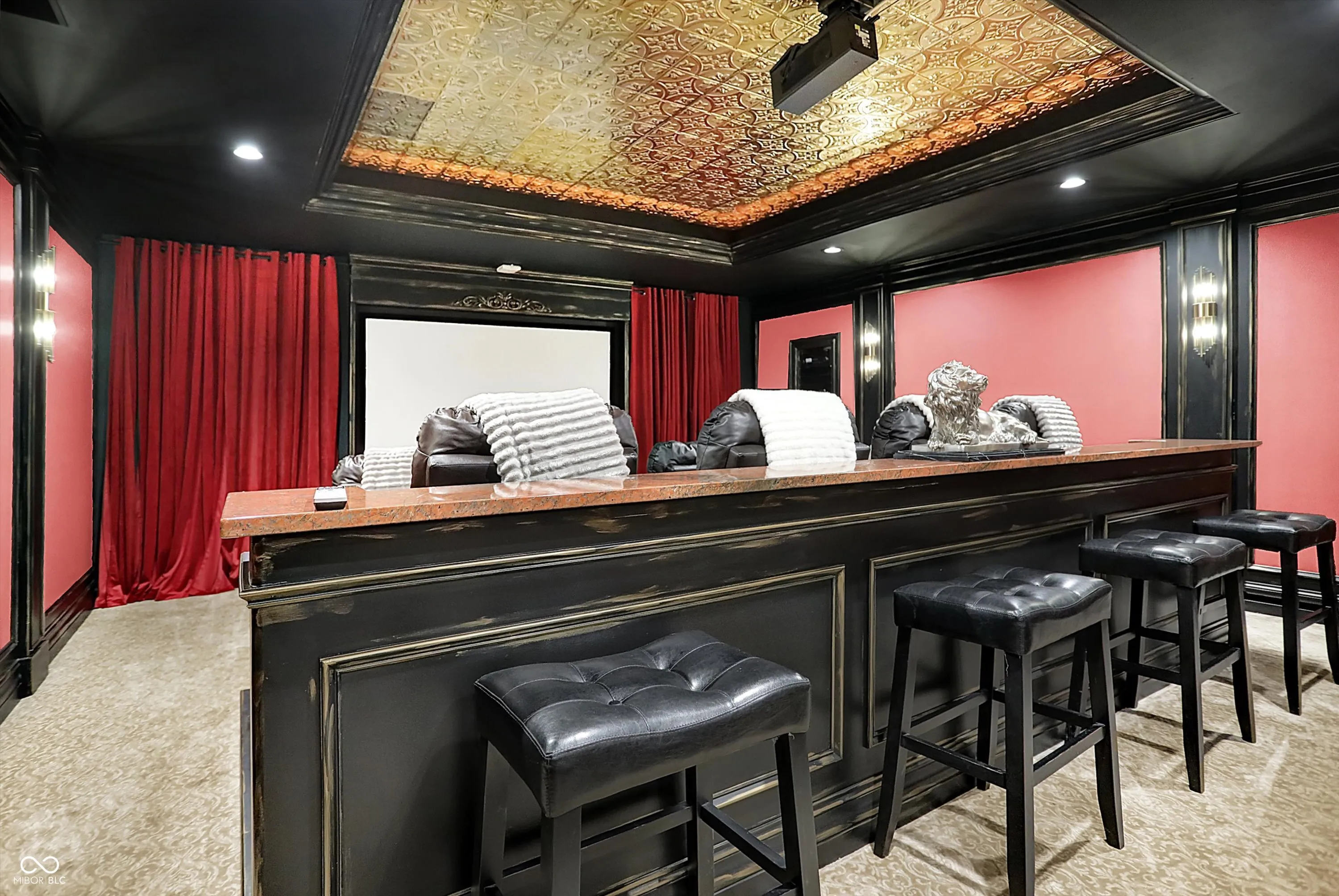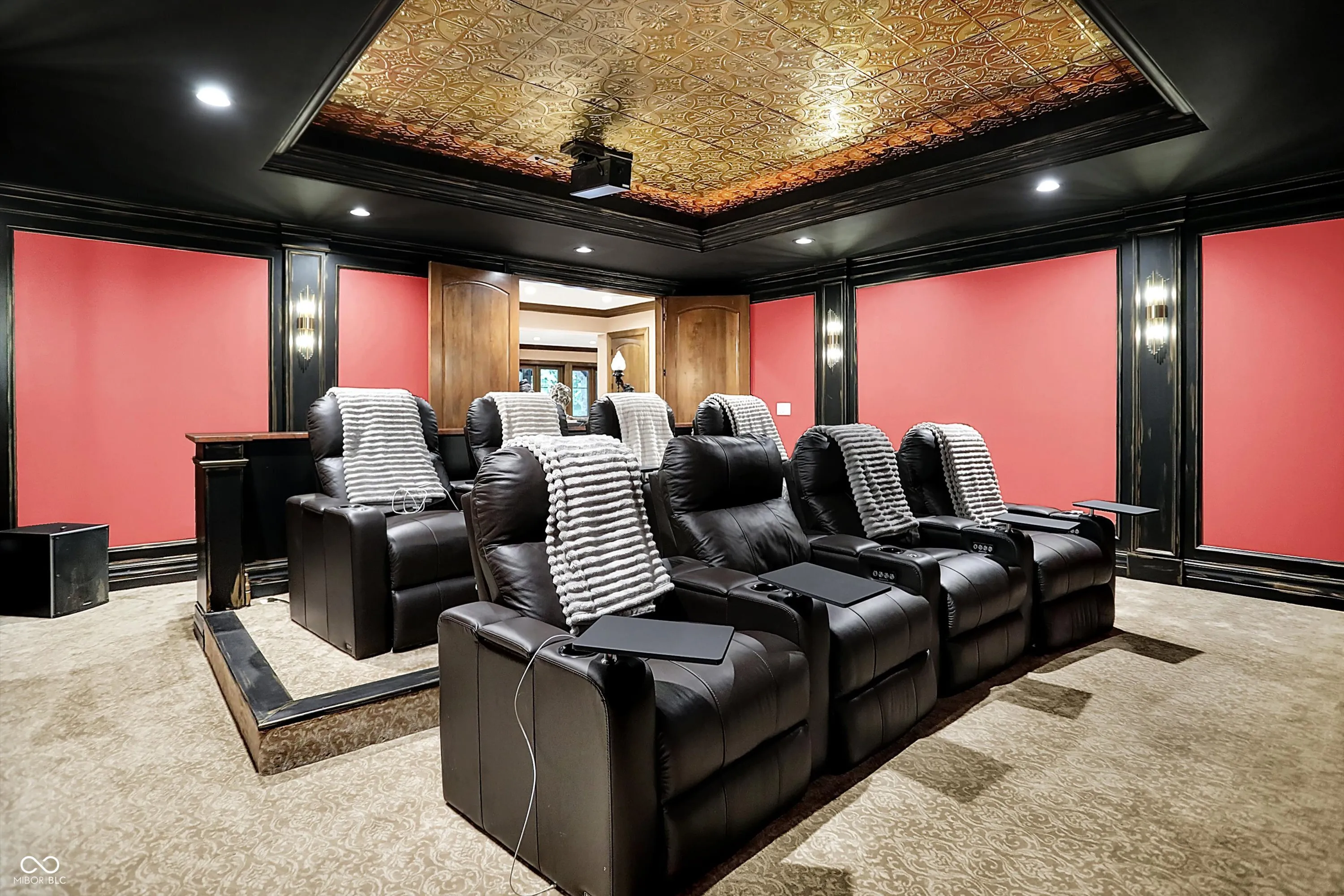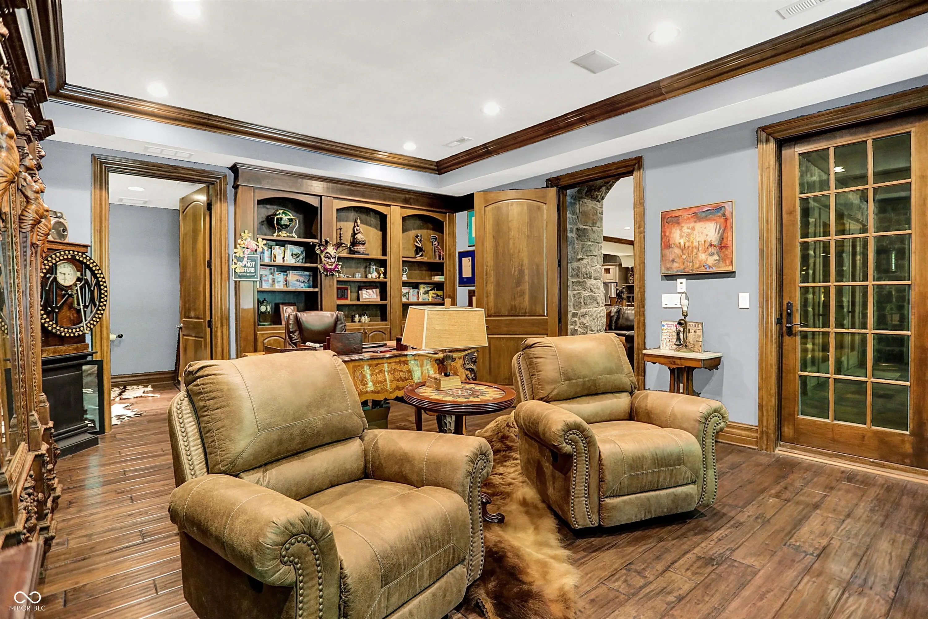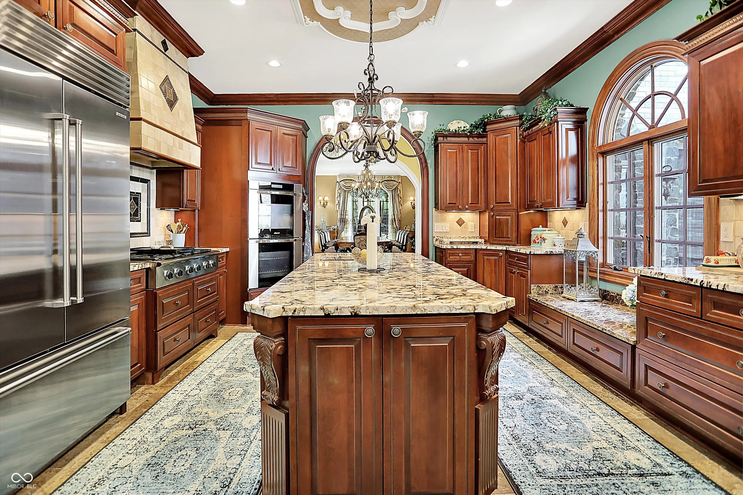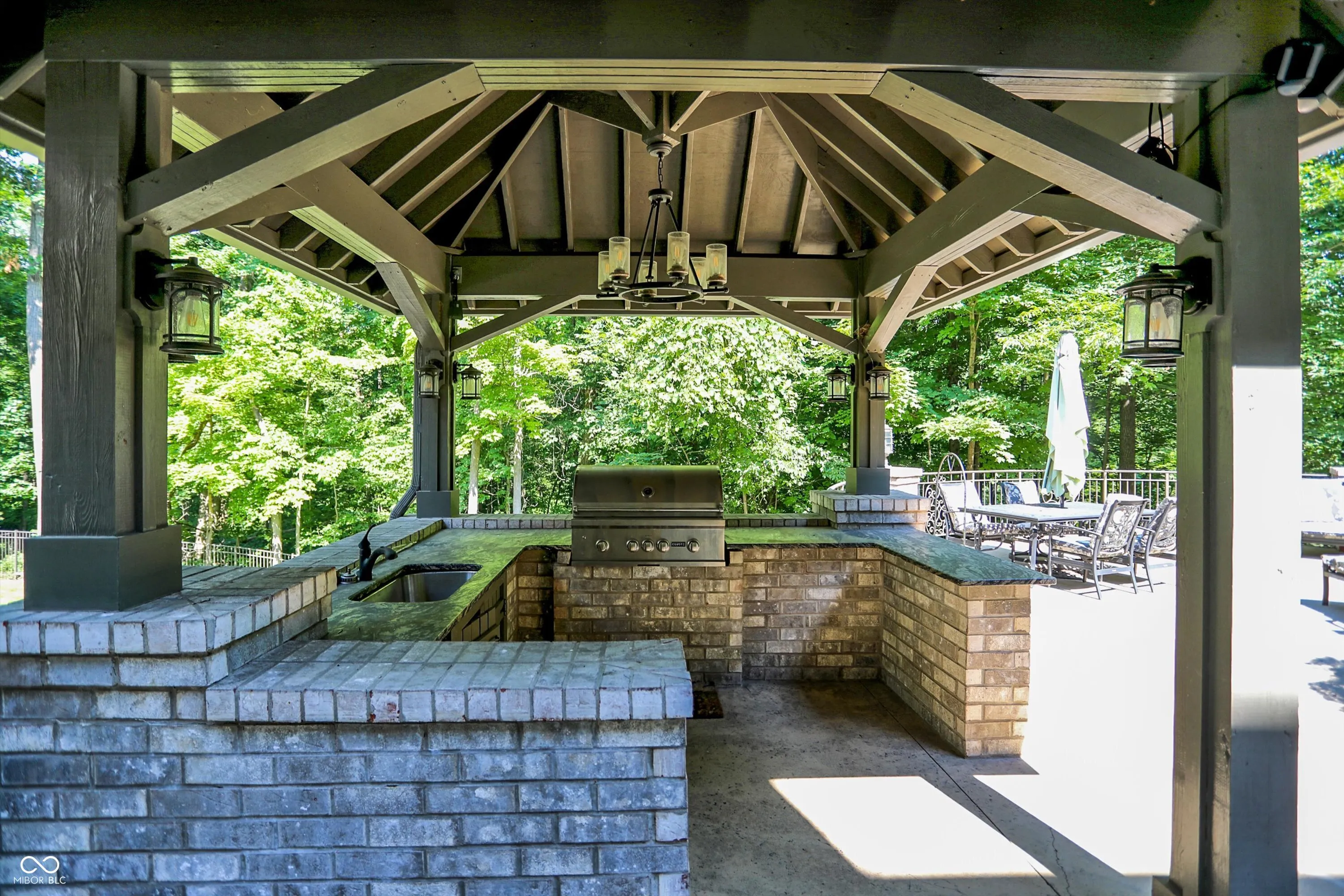 Step into timeless elegance with this extraordinary 13,000+ sq ft French Chateau-inspired estate, nestled on 3.81 secluded, wooded acres. Designed with luxury & comfort in mind, this masterfully crafted home offers an exceptional blend of refined architecture, thoughtful amenities, & serene outdoor living. Enter through grand double doors into a stunning interior where old-world charm meets modern sophistication. The main floor features a luxurious primary suite boasting dual walk-in closets, private laundry, heated floors, dual vanities, a whirlpool soaking tub, & a spacious walk-in glass shower. Enjoy morning coffee from your private balcony or descend a discreet staircase to a private home office tucked away in the finished lower level. The main level continues with formal & casual living spaces, convenient elevator, including a stately dining room and two of the home’s three wood-burning fireplaces-perfect for intimate evenings or grand entertaining. Upstairs, a secondary master suite provides a private retreat for guests or extended family. Two additional bedrooms, each with ensuite baths & walk-in closets, share the upper level along with a spacious bonus room, loft, additional den area with half bath, & second laundry room for convenience. The fully finished walk-out lower level is an entertainer’s paradise, featuring a kitchenette & dining area, expansive family room, game room, private theater room, exercise room, & a fifth bedroom with a private full bath and walk-in closet. Outside, stone patios invite al fresco dining and lounging with an outdoor kitchen & hot tub, all surrounded by lush landscaping & peaceful wooded views. The finished garage takes versatility to the next level, doubling as an indoor basketball half court perfect for year-round recreation or fitness. This Zionsville estate offers every imaginable amenity & the timeless allure of European design, behind a gated entry. Discover unparalleled luxury, privacy, and sophistication.