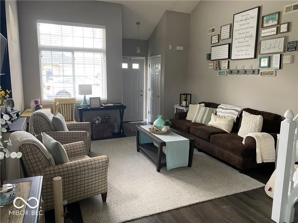 LOCATION! LOCATION! LOCATION! End unit for lease-Gorgeous 2 bedrooms, 1.5-bath condo in heart of downtown Fishers. This condo has been remodeled in the last 3 years. Quartz kit countertops, wide plank laminate flooring, newer grey carpet, & tile flooring in the kitchen & bathrooms. Updated vanities in both bathrooms, faucets & lighting. Walk to everything! Restaurants, Brewery, Fishers Farmer’s market, &much more. Nickel plate trail is right behind the complex so ride your bike, walk, or run on the trail. WATER & LAWN CARE, PLUS,WASHER & DRYER are included in the rent price. Tenant pays for trash (16.39) Sewer (34.00), Gas & Electric. The landlord/HOA takes care of the exterior bldg + lawn care/water. Photos are from last tenant. Tenant rights apply. 24 hour notice for all showings. If you have a dog, it will be case by case whether your pet is approved. No dogs over 40lbs. No dog that insurance wont allow. No cats or kittens. $900 non-refundable pet fee. Condo is owned by the list agent. Numerous open houses will be scheduled too.