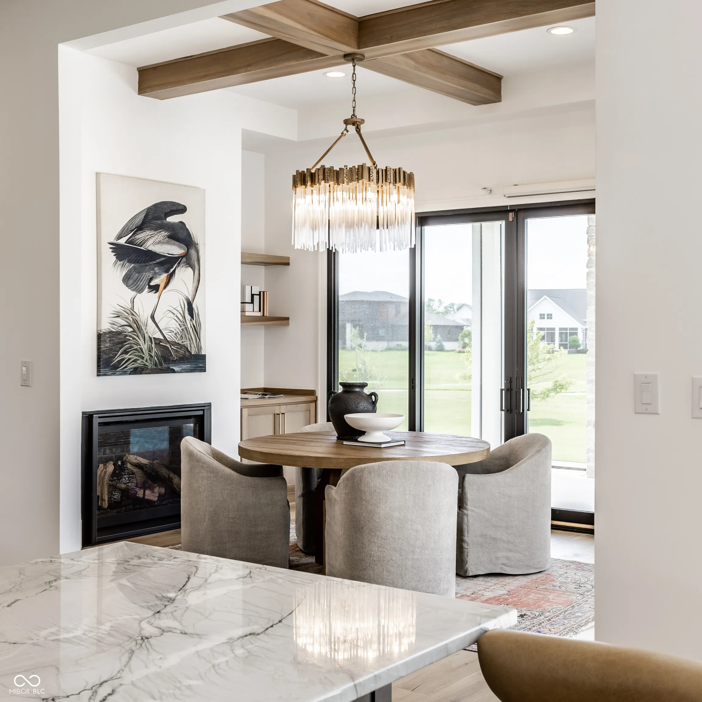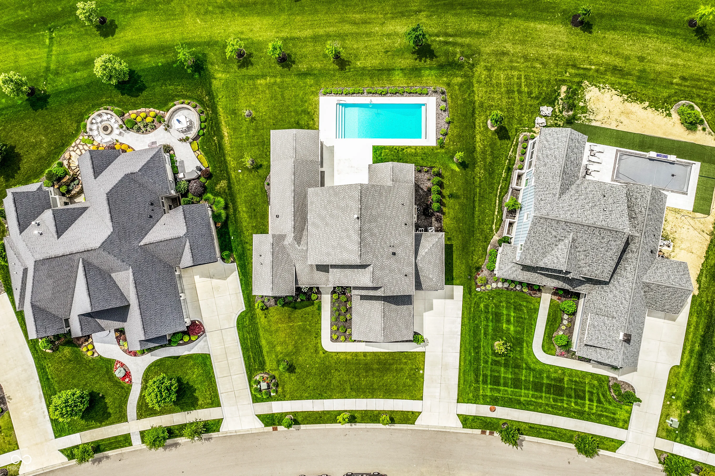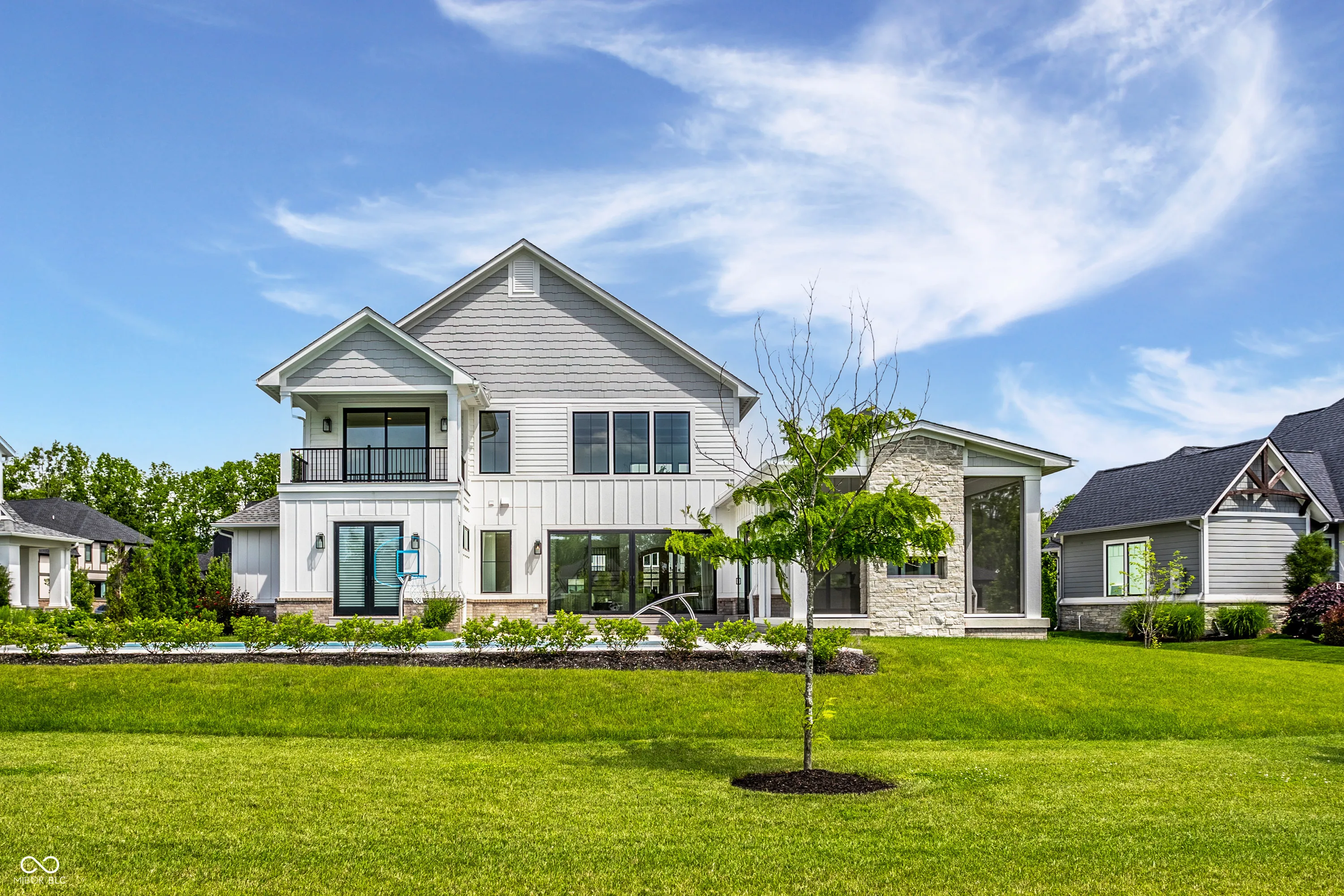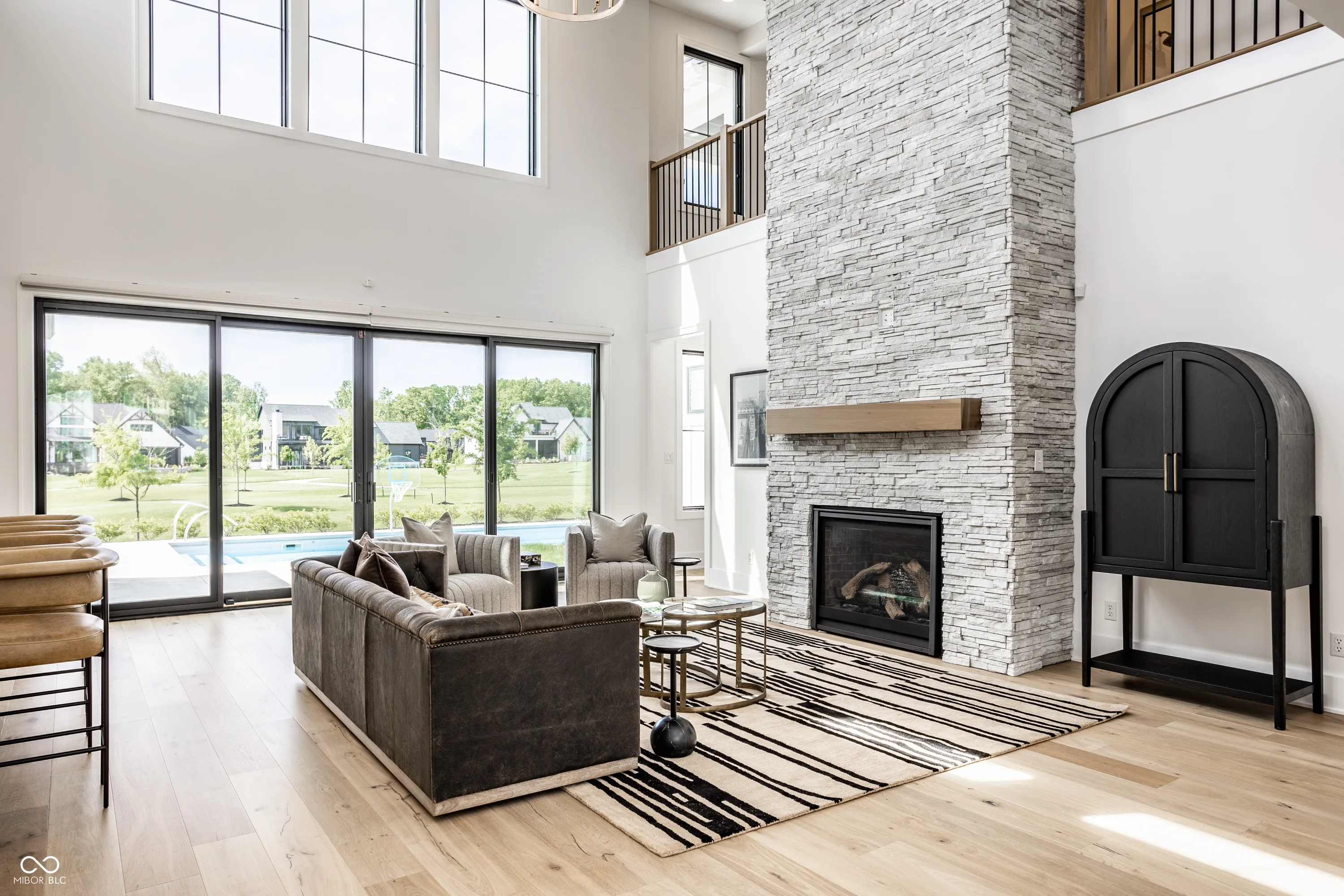 Perfectly positioned along the tee box of Hole 2 in the prestigious gated community of Holliday Farms, this custom Sigma-built home epitomizes refined golf course living. With five bedrooms and five bathrooms spread across three thoughtfully designed levels, it seamlessly combines elevated style with everyday ease. A dramatic two-story great room makes a stunning first impression, showcasing soaring ceilings, a statement stone fireplace, and floor-to-ceiling windows that frame sweeping views of the lush fairways. The open-concept layout flows into a chef’s kitchen appointed with a large center island, top-tier appliances, and an expansive hidden scullery for effortless prep and storage. An adjacent dining area offers a warm, intimate setting for gatherings, while a glass-enclosed wine cellar off the foyer adds a touch of sophistication. The main level primary suite serves as a serene escape, featuring dual walk-in closets and a spa-like bath with an oversized shower, soaking tub, and elegant finishes. The second main-level bedroom includes its own ensuite bath and a generous walk-in closet-ideal for guests or multigenerational living. Ascending to the upper level, two additional bedrooms offer comfort and privacy, while the walk-out lower level is an entertainer’s dream, complete with two more bedrooms and flexible space for a media lounge, home gym, or game room. Outside, a covered patio with a built-in stone fireplace creates the perfect setting for year-round enjoyment, while the resort-style in-ground pool invites long summer days surrounded by manicured golf course views. Located in one of Zionsville’s most sought-after neighborhoods, this exceptional residence in Holliday Farms offers the ultimate in luxury, lifestyle, and location.