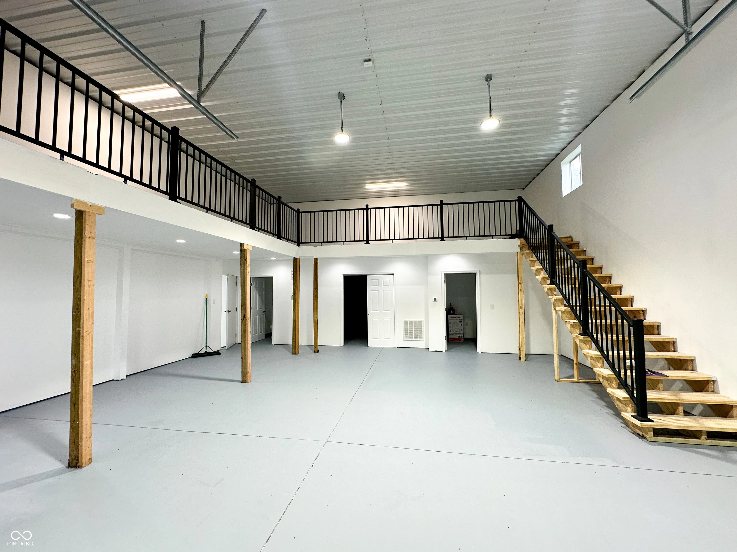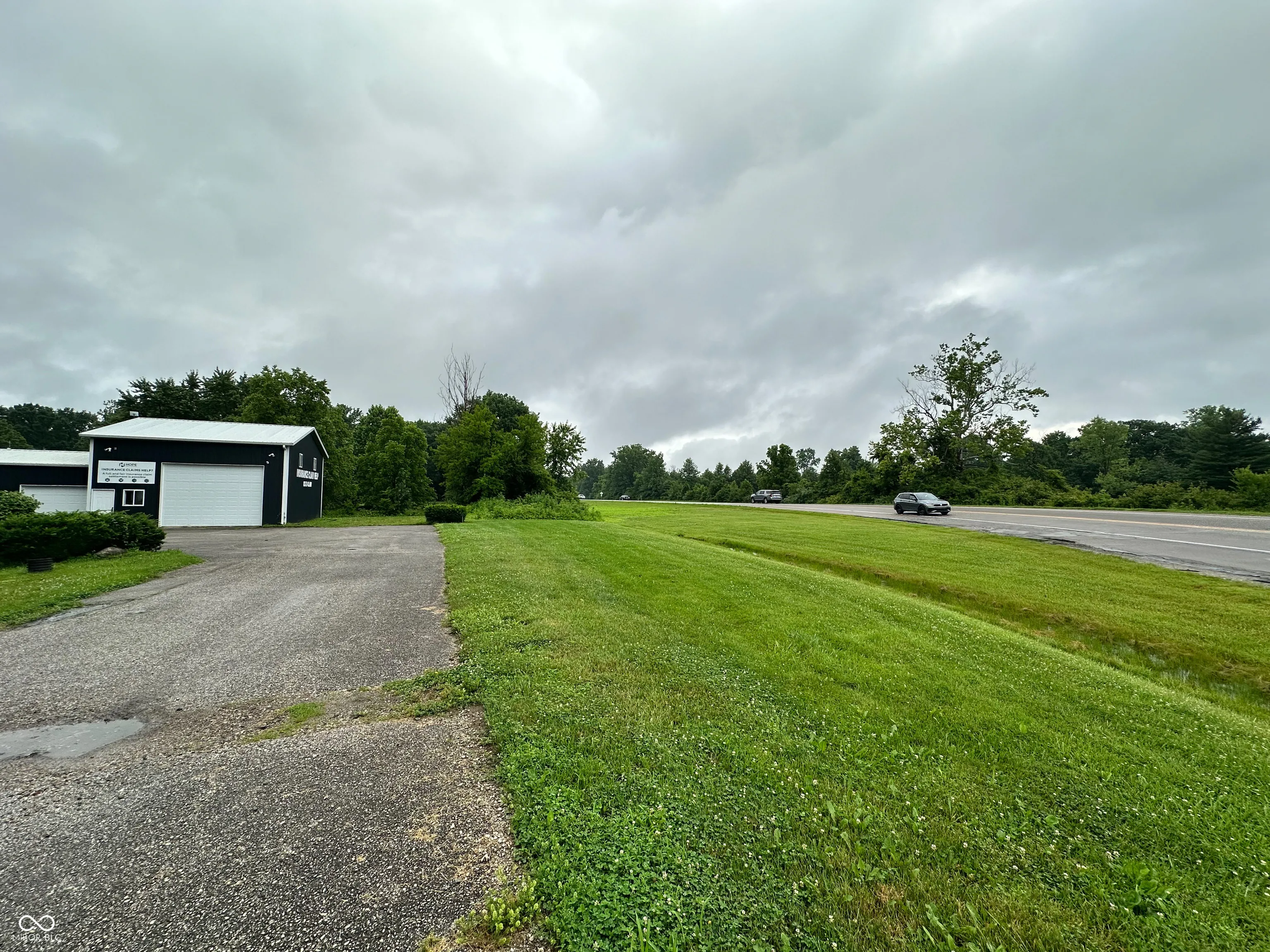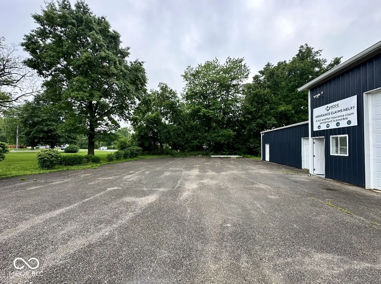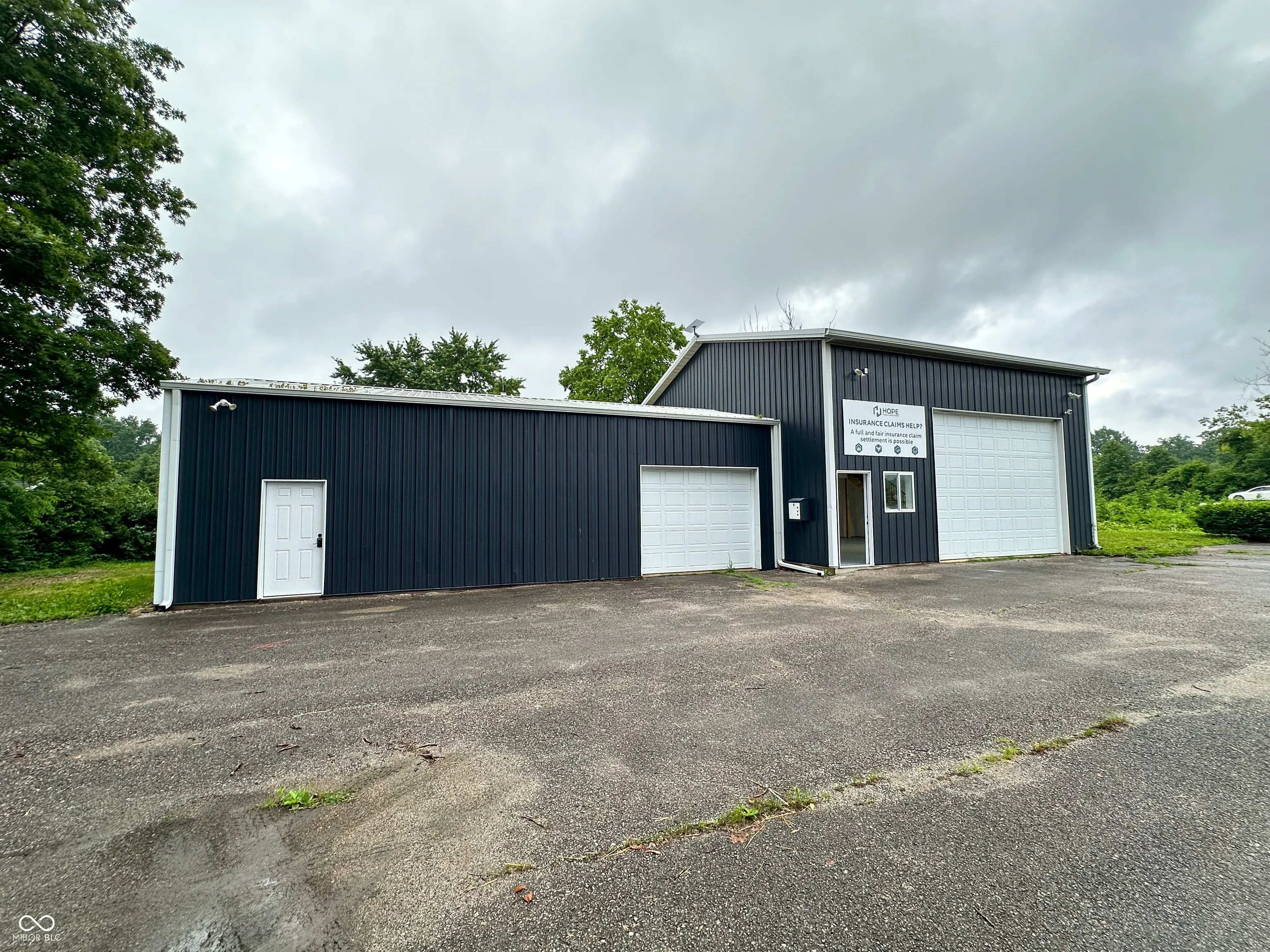 Versatile commercial building available for lease off high-traffic State Road 267! Zoned General Commercial and situated on a corner lot, this property offers excellent visibility, ample parking, and flexible space options for one or two tenants. The larger unit is approx. 1,550 sq ft, featuring a 16′ x 12′ overhead garage door, loft space (500 sq ft) above 1,050 sq ft of workspace, a private office, closet with utility sink, and bathroom. The smaller unit is approx. 920 sq ft, with a 7′ x 9′ overhead garage door, office space, bathroom, and setup for an additional utility sink. Each side has its own entry door, bathroom, and garage access, making this building ideal for a trades business or car wrap/detailing shop. Property features a paved driveway and parking. Can be leased together or separately. Modified Gross Lease.