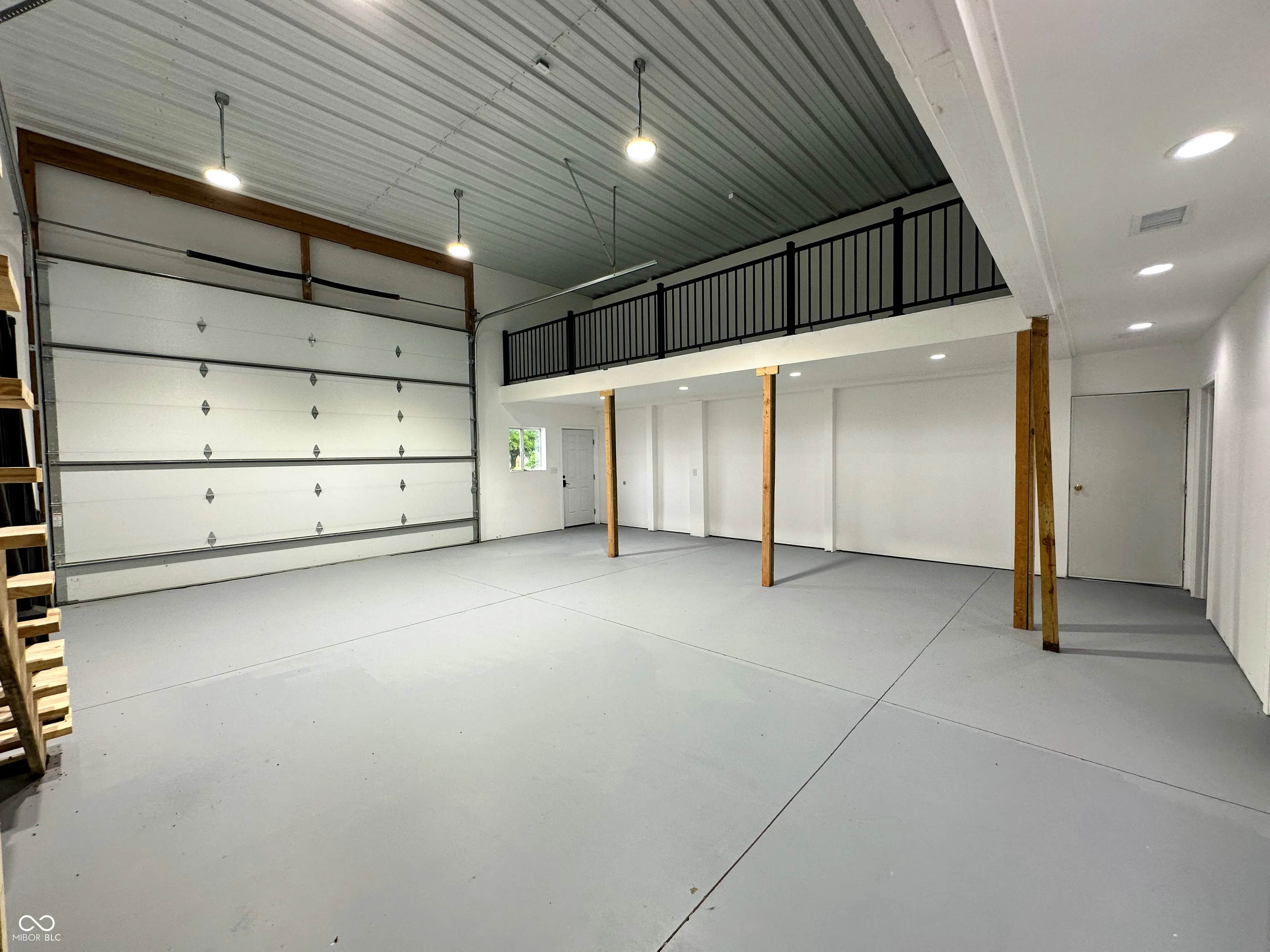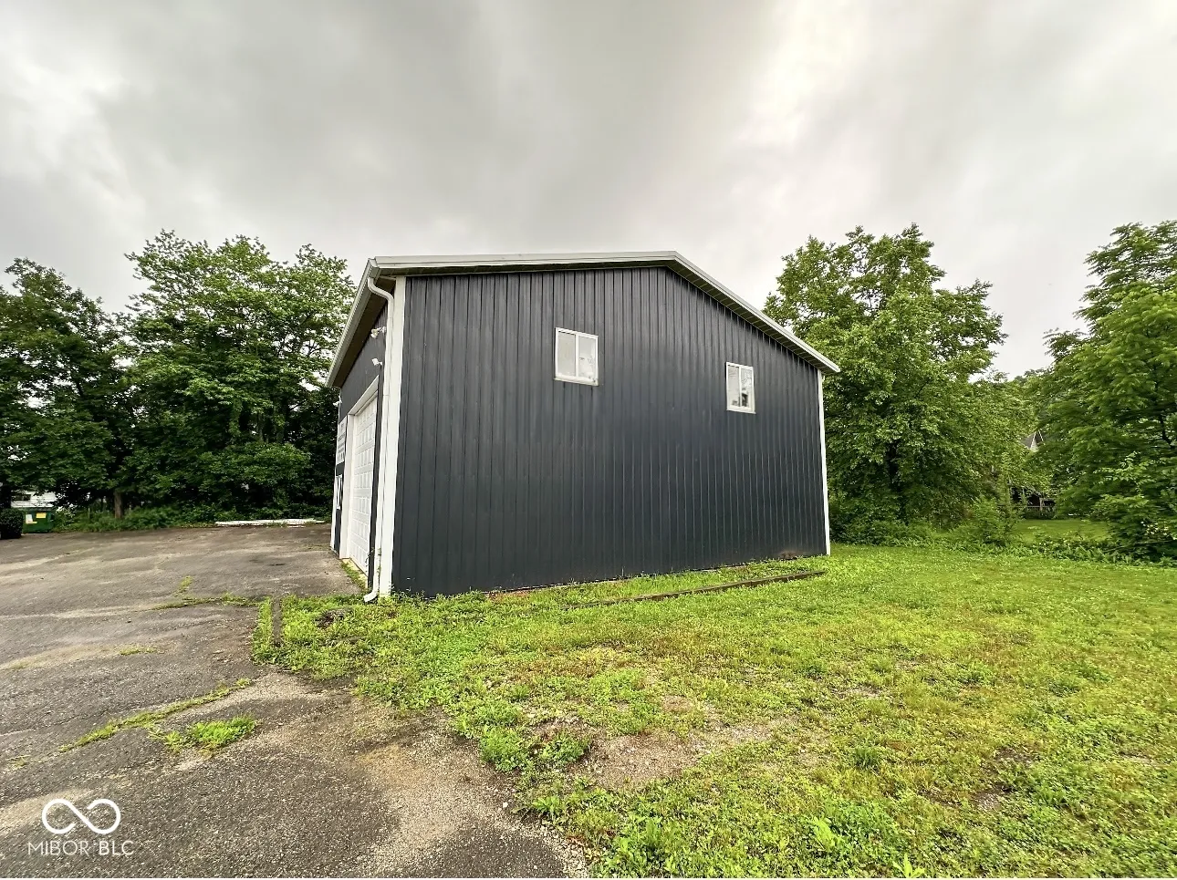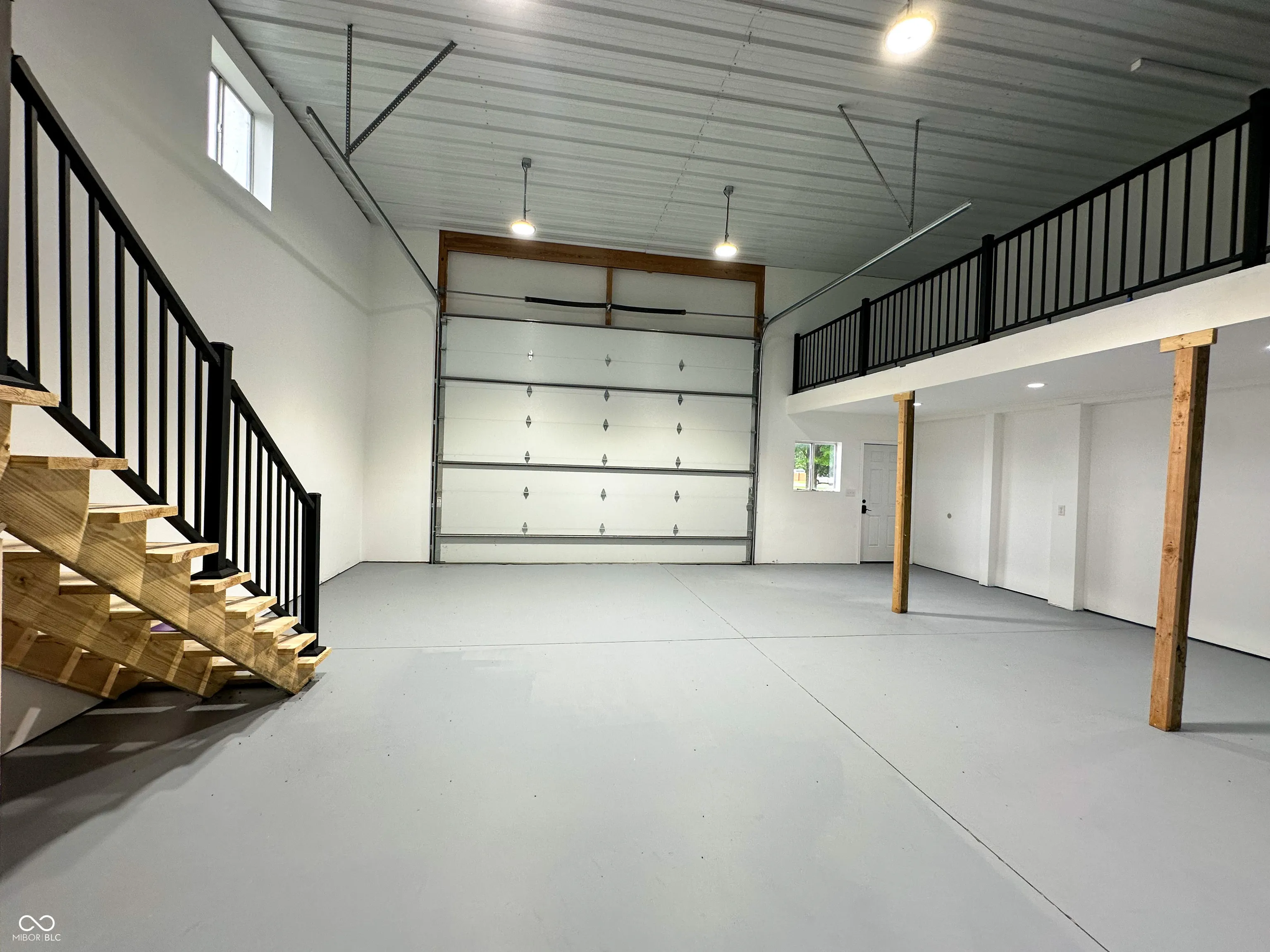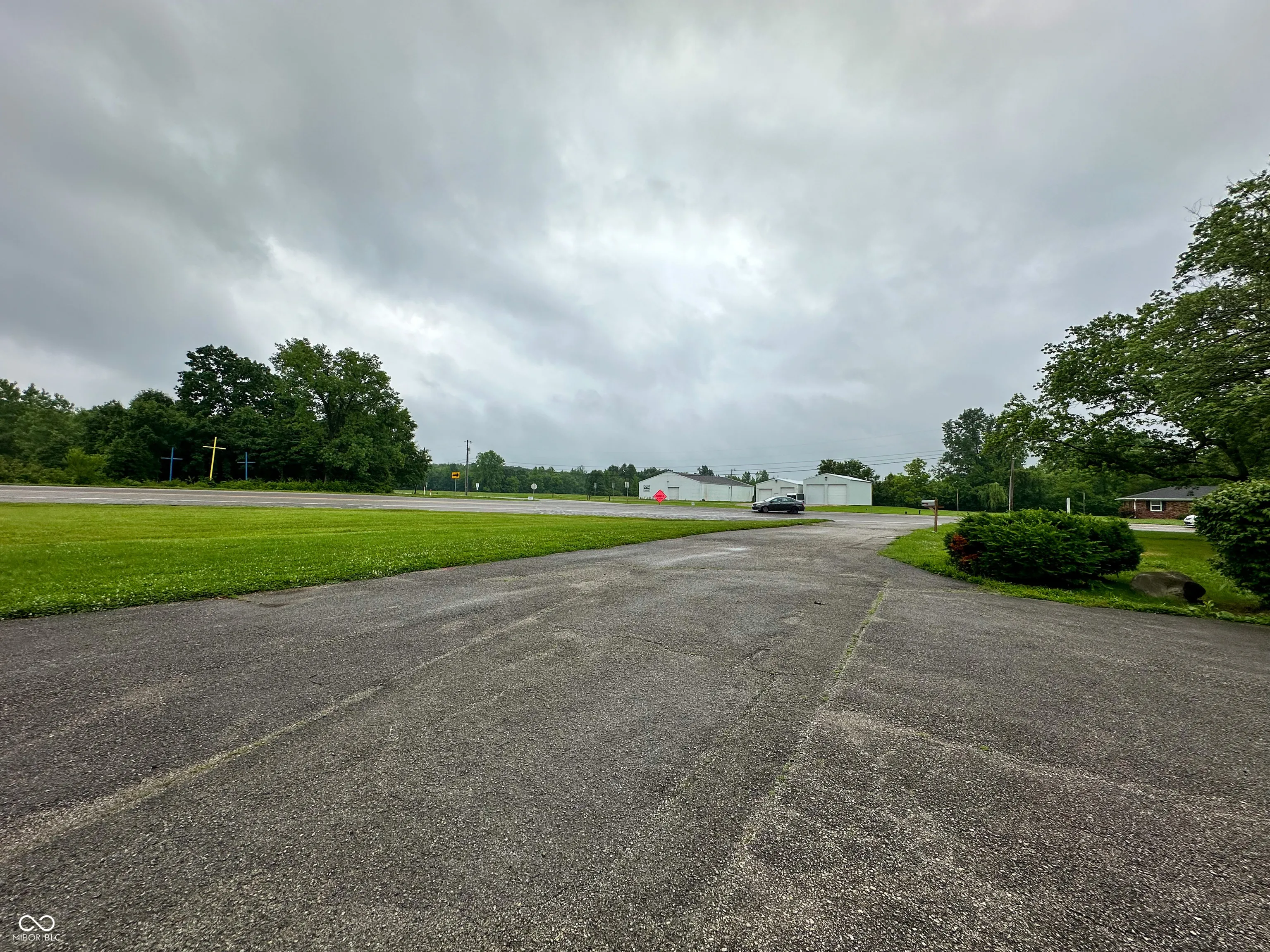 Versatile commercial building available for lease off high-traffic State Road 267! Zoned General Commercial and situated on a corner lot, this property offers excellent visibility, ample parking, and flexible space options for one or two tenants. The larger unit is approx. 1,550 sq ft, featuring a 16′ x 12′ overhead garage door, loft space (500 sq ft) above 1,050 sq ft of workspace, a private office, closet with utility sink, and bathroom. The smaller unit is approx. 920 sq ft, with a 7′ x 9′ overhead garage door, office space, bathroom, and setup for an additional utility sink. Each side has its own entry door, bathroom, and garage access, making this building ideal for a trades business or car wrap/detailing shop. Property features a paved driveway and parking. Can be leased together or separately. Modified Gross Lease.