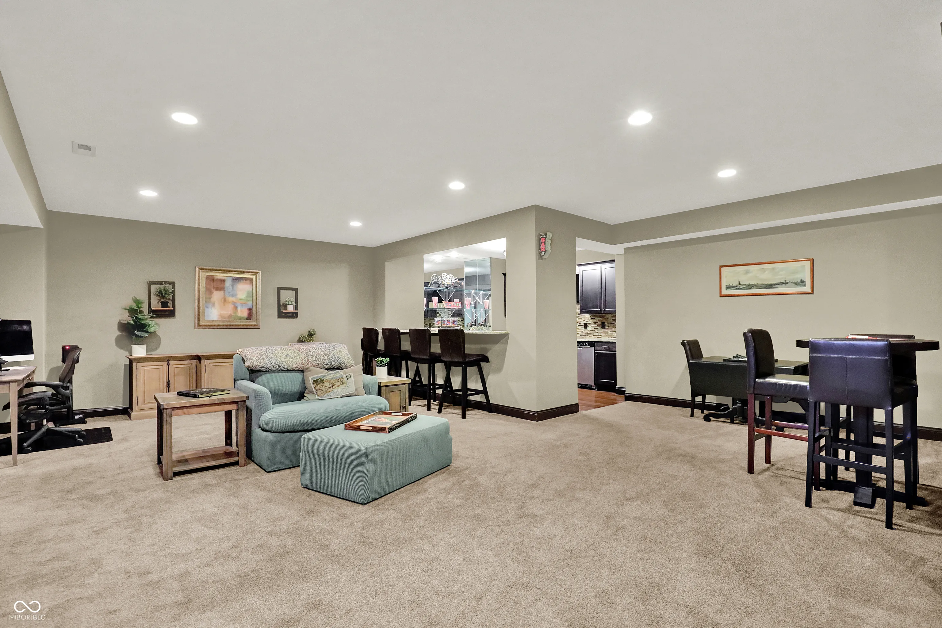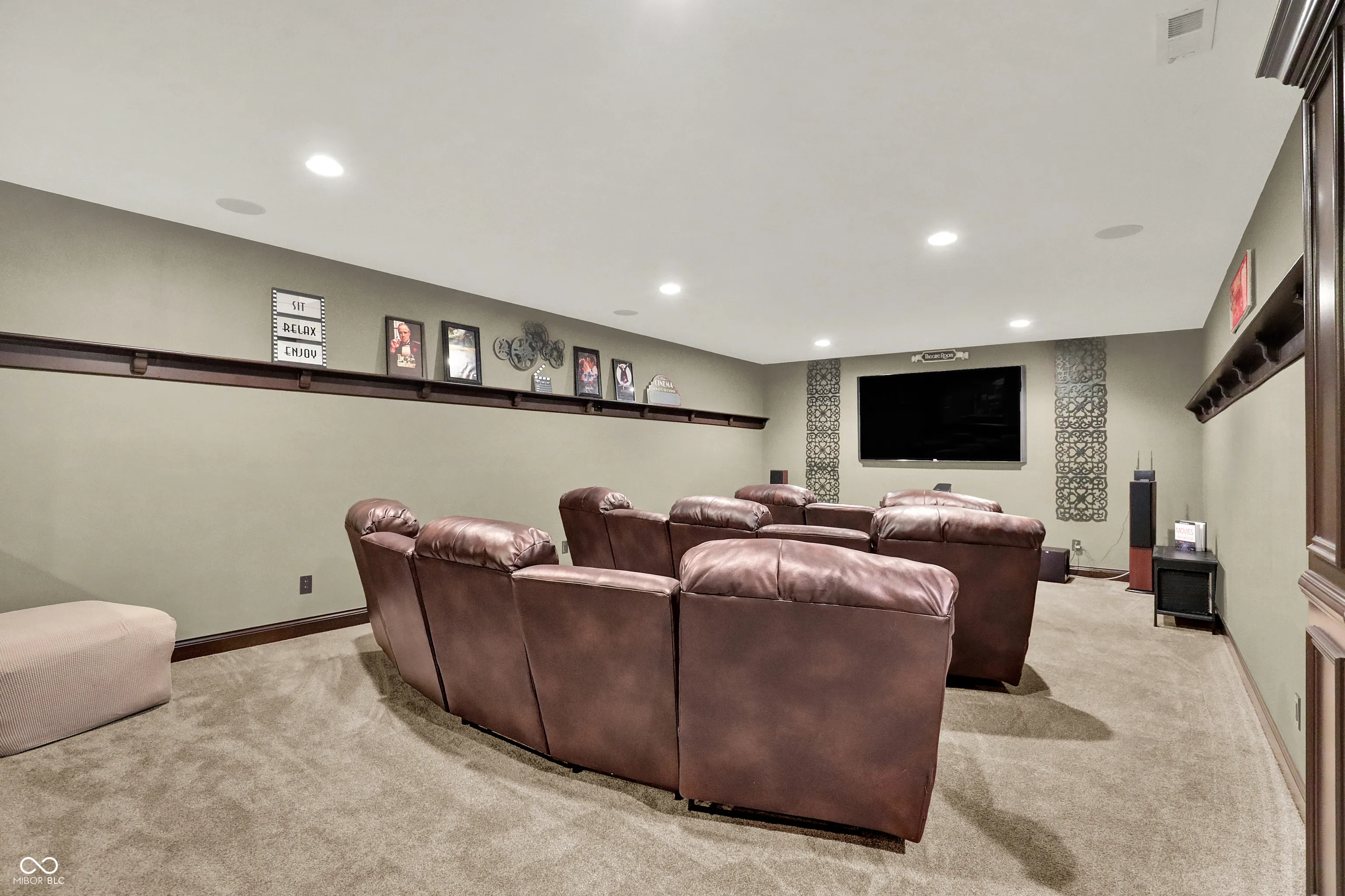 Spacious ranch living with large volume ceilings in The Bridgewater Club! This home has an assumable 2.25% VA loan, a great opportunity for buyers. Enjoy a beautiful backyard patio with a sparkling water view. Inside, be greeted by soaring ceilings, an open great room with a fireplace, built-in bookcases, and a dramatic tray ceiling. The gourmet kitchen is equipped with stainless steel appliances, a large center island, and an oversized walk-in pantry. The primary retreat is a true oasis with its own fireplace, spa-like bath, and generous walk-in closet. Main level also includes a guest bedroom and laundry room/command center. The expansive lower level is designed for entertaining, featuring a home theater, wet bar, wine cellar, bonus room, and guest bedroom. Step outside to dine alfresco in the private outdoor setting, complete with an open patio, wood-burning fireplace, and pergola. All just a short distance from Bridgewater’s premier amenities-and walking distance to the neighborhood park and scenic trails. Thoughtfully designed for relaxation, entertaining, and everyday living-this home truly has it all.