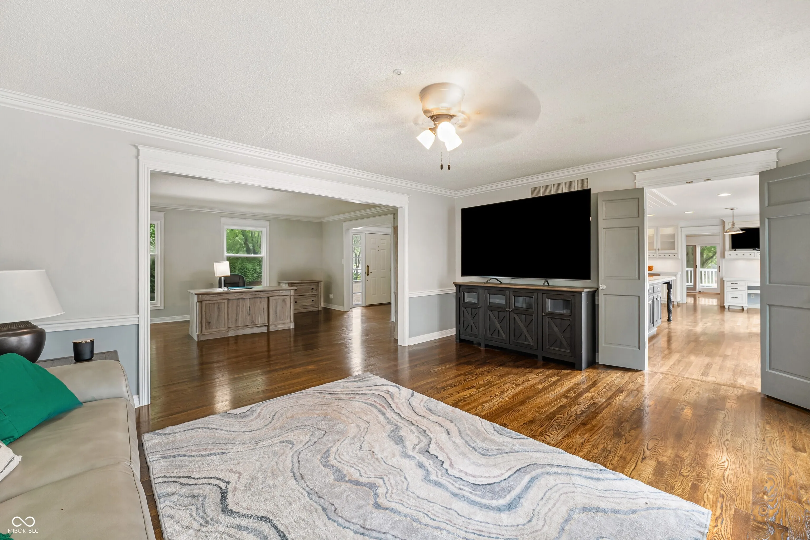 You’ll enjoy this beautiful waterfront home with high-end finishes and great entertaining space in Tipton Lakes! *Inviting 2-story entry *Formal Living Room *Family room with an abundance of natural light & hardwood floors * Gourmet kitchen features custom Amish cabinets, huge island with granite counter, professional grade Liebherr refrigerator, Dacor 6-burner gas stove with beautiful range hood, planning area & sunny breakfast area with 2 sided brick fireplace with raised hearth *Dining room with wainscoting & crown molding *Outstanding Master bedroom suite offers sitting area with a bank of windows overlooking the lake and woods *Master bathroom features radiant heated floors, freestanding jetted tub, tile shower & large walk-in closet *Walk-out lower level features huge 20’x26′ additional family room with fireplace, 4th bedroom, full bathroom & large storage room *11×16 screened porch with ceiling fan & vaulted ceiling to relax with morning coffee *Outdoor entertaining areas include large deck, huge patio, and beach area with firepit *Tipton Lakes amenities include walking paths, marina, sand beach with picnic tables and grills as well as boat, pontoon and paddle board rentals. *Schedule your tour today!