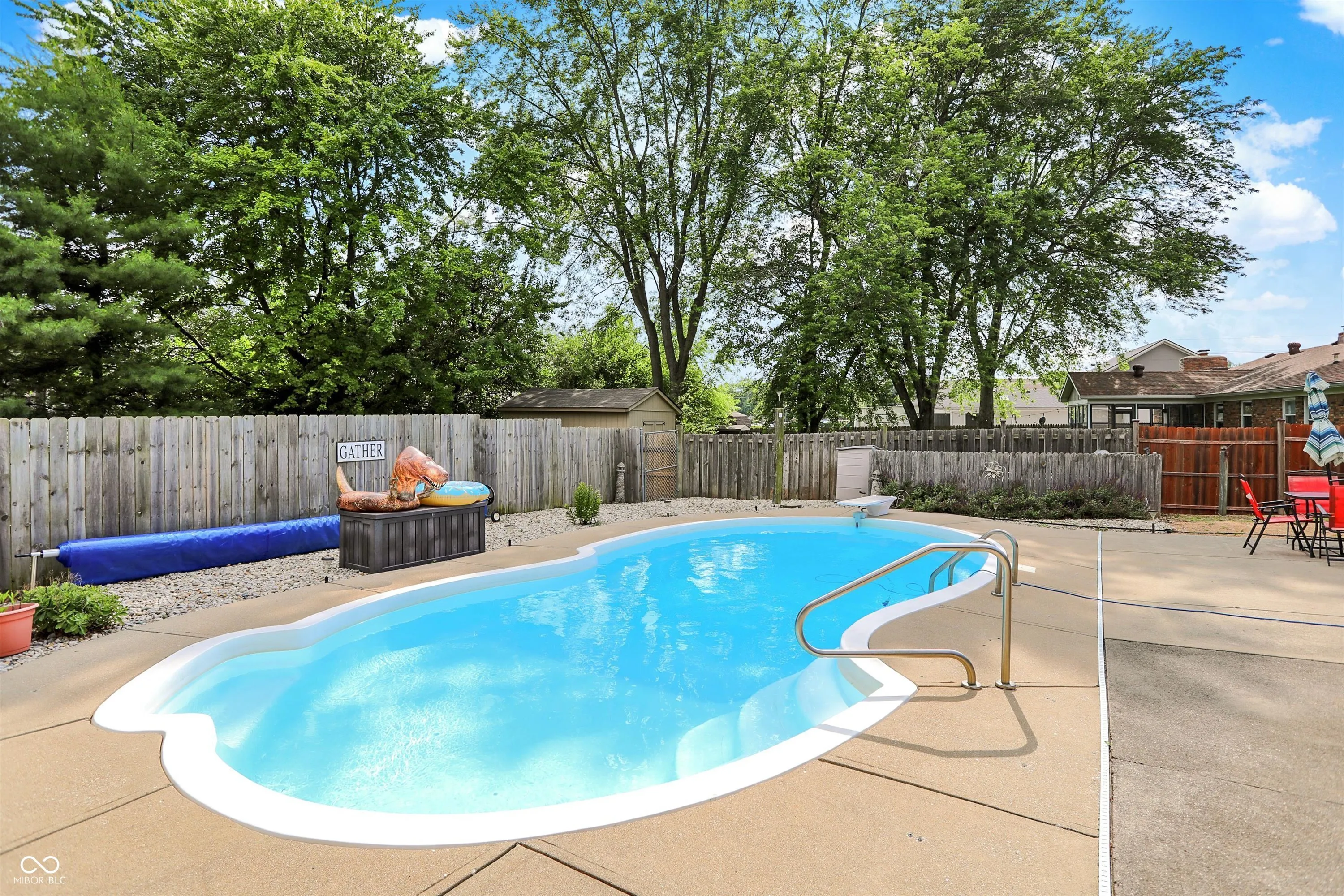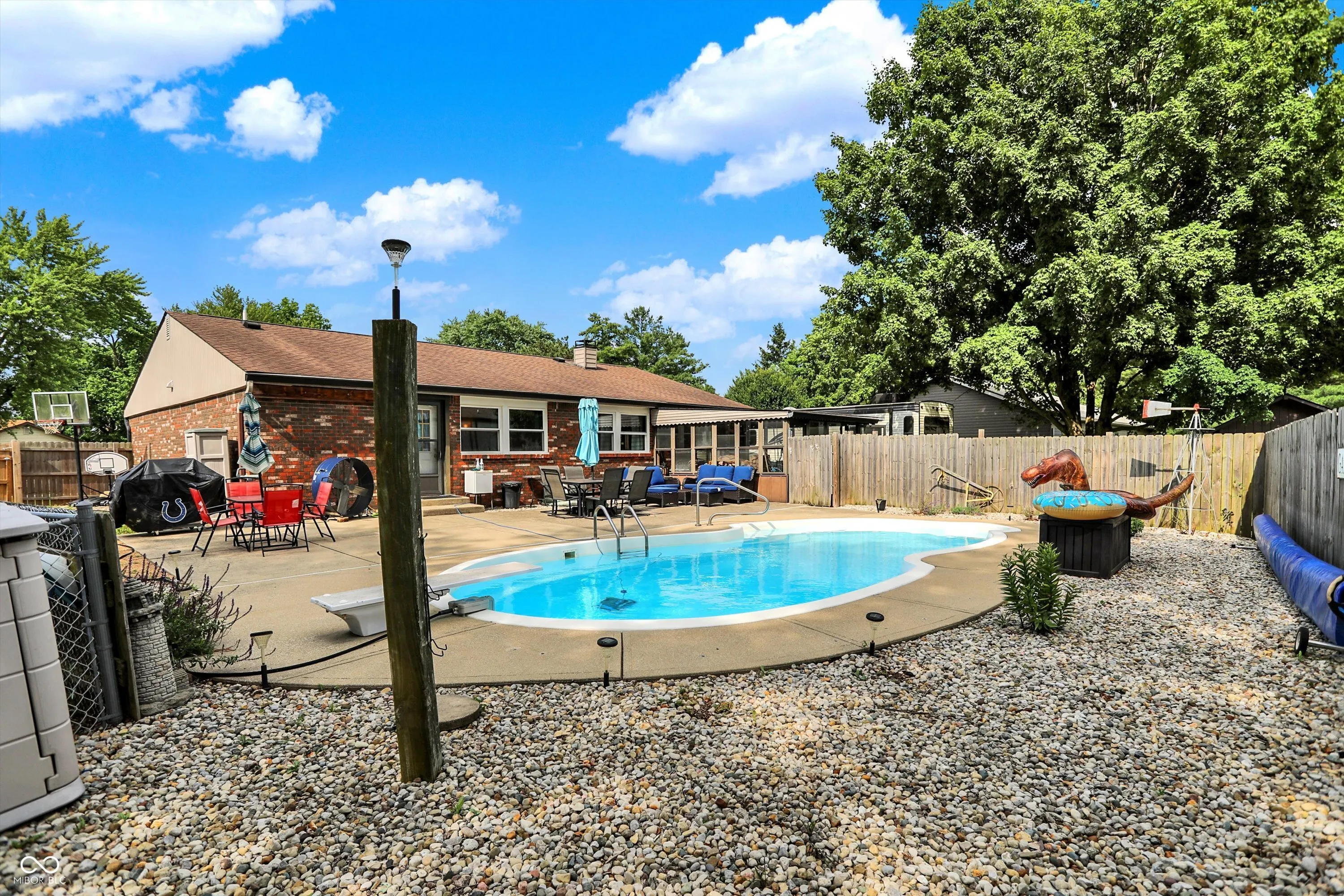 This charming Center Grove ranch offers a spacious and functional layout with 3 bedrooms and 2 full bathrooms. Step into the vaulted great room, where high ceilings and a cozy wood-burning fireplace create a warm and inviting space for relaxing or entertaining. Just off the living area, the sunroom provides a peaceful retreat filled with natural light-perfect for enjoying your morning coffee or unwinding at the end of the day. Out back, you’ll find a large patio that leads to your own heated, in-ground pool, fully fenced separately from the rest of the yard for added safety. Whether you’re hosting summer get-togethers or enjoying a quiet evening swim, this backyard is made for making memories. Additional features include a side yard with dedicated camper or RV parking and its own 30 amp electrical connection. With mature landscaping and an attached two-car garage, this home checks all the boxes. Located in a quiet neighborhood with easy access to I69 and I65 this home is the perfect blend of comfort and convenience.