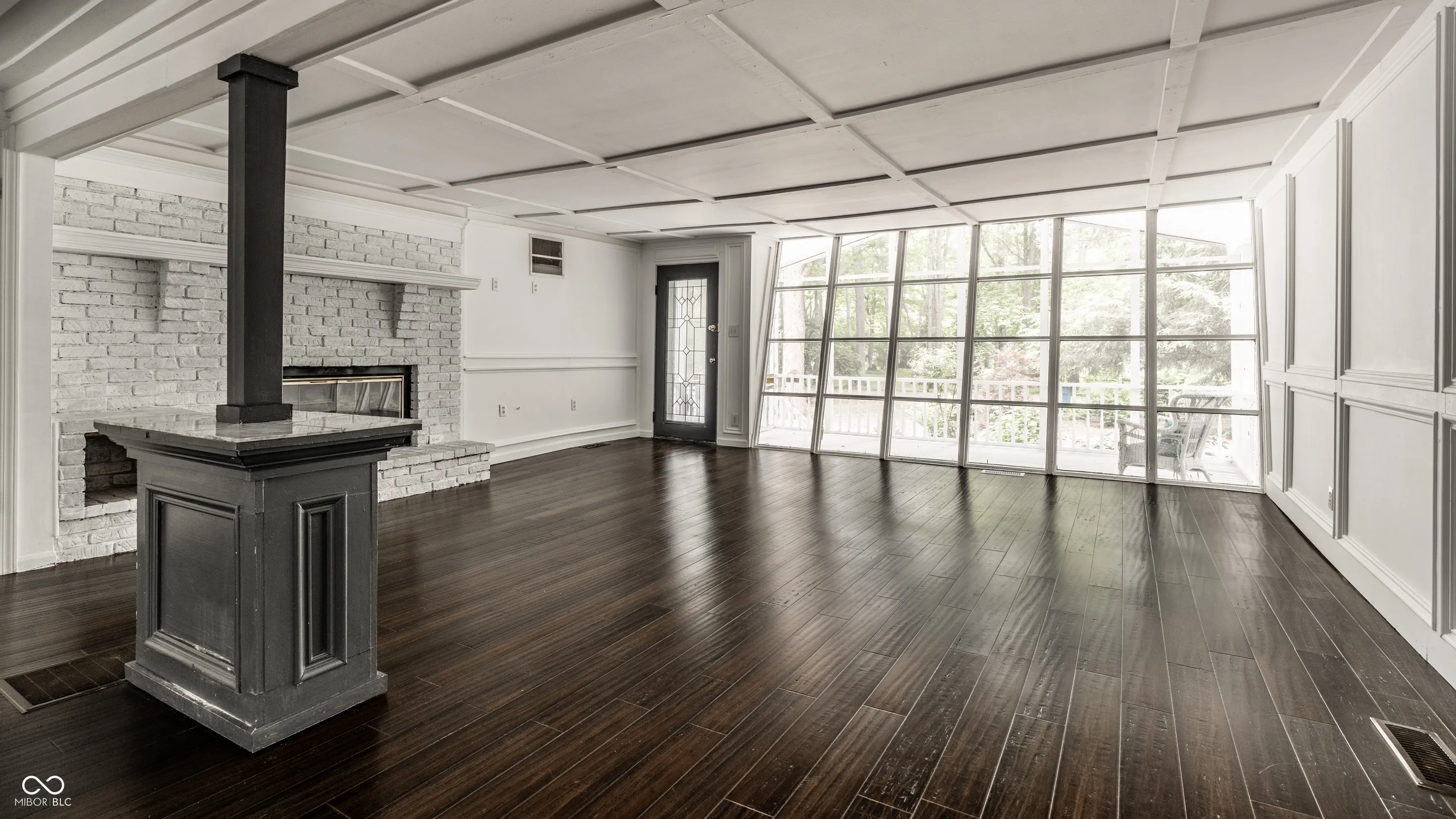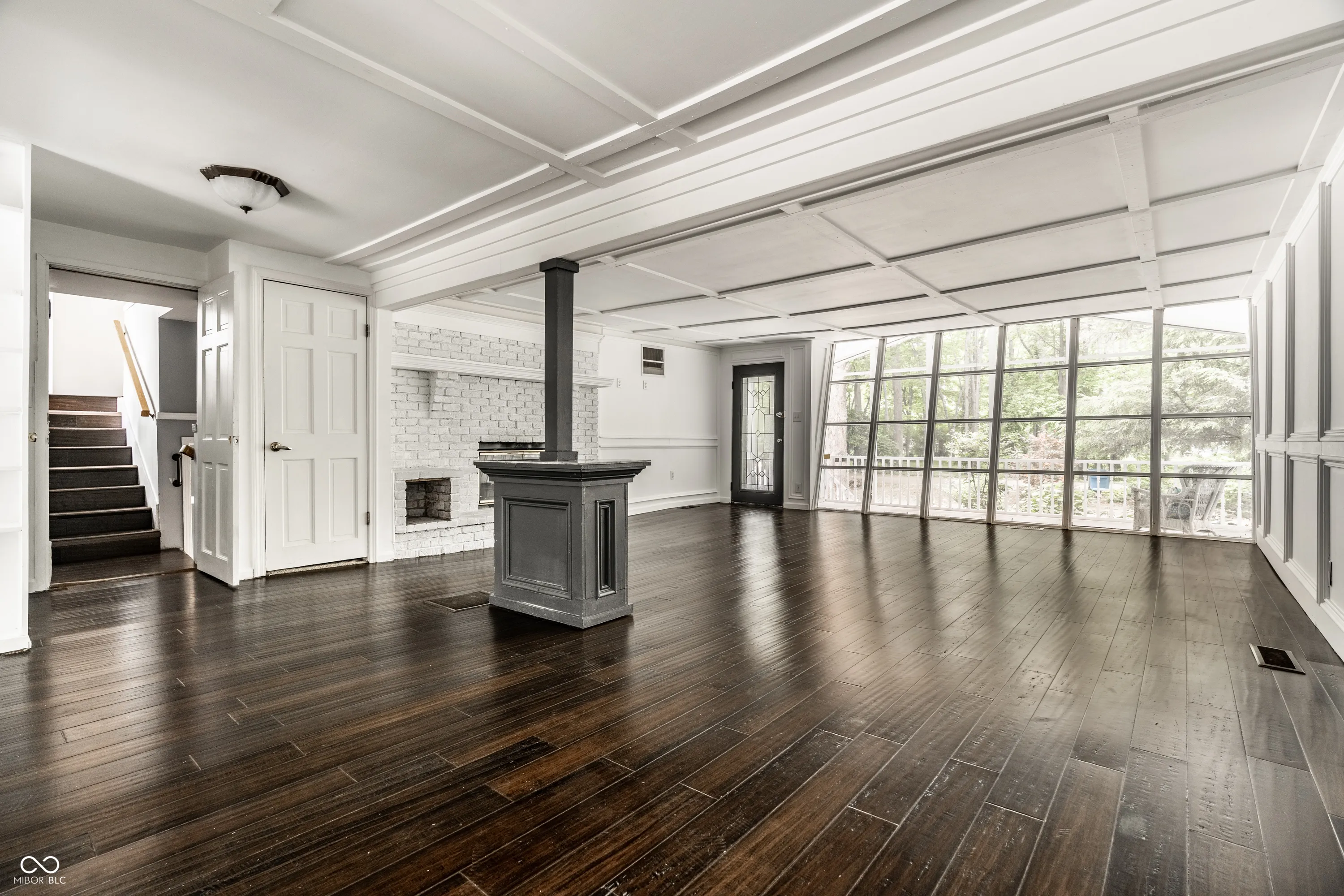 Wow, wow, wow…super cool home with contemporary vibe sitting on 4 lots a stone’s throw from White River. Features include fabulous paneled great room with reversed floor to ceiling wall of windows, wood burning fireplace and laminate flooring. Updated kitchen (2019) with hearth room, two-sided fireplace, breakfast bar, built in bookshelves, farm sink and ceramic tile floors and sliding glass doors leading to huge wood deck overlooking private park like setting back yard. Three large bedrooms, primary ensuite with amazing newly renovated spa bath, and fireplace. Office/family room, sunroom, huge 20X12 screened porch, balcony off the 3rd bedroom, 2nd bath fully renovated. Attached 2 car garage, newer mini barn/storage shed, fully fenced rear yard with water feature Koi Pond. Nestled in a quiet sanctuary but minutes from eateries, coffee shops, grocery stores and easy access to 465. Check out price per square foot! This home is in an estate and a lot of work has been done but will still need some improvements.