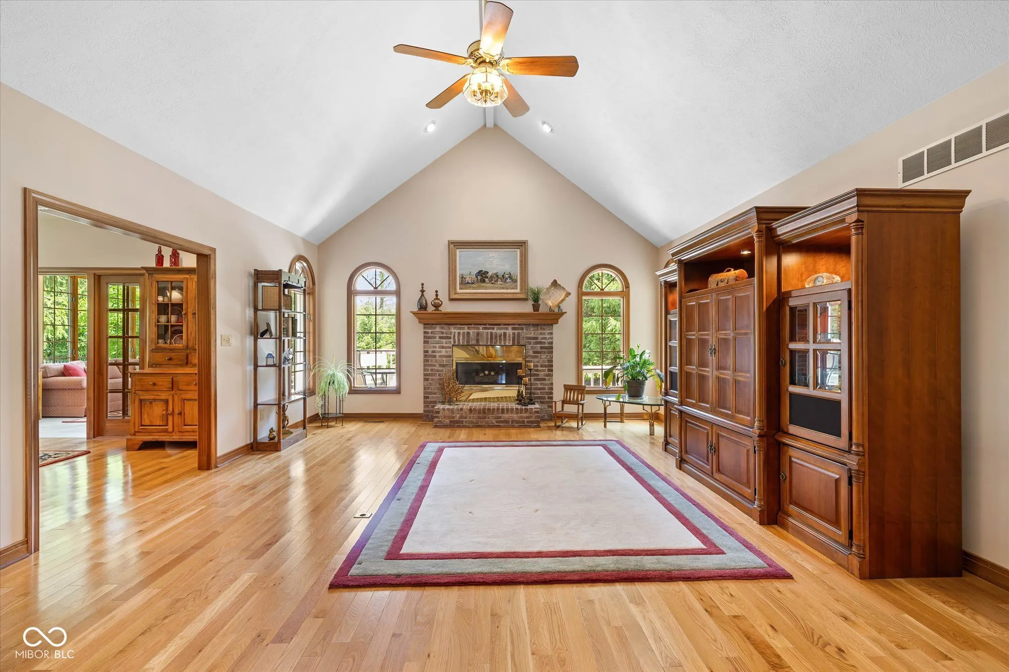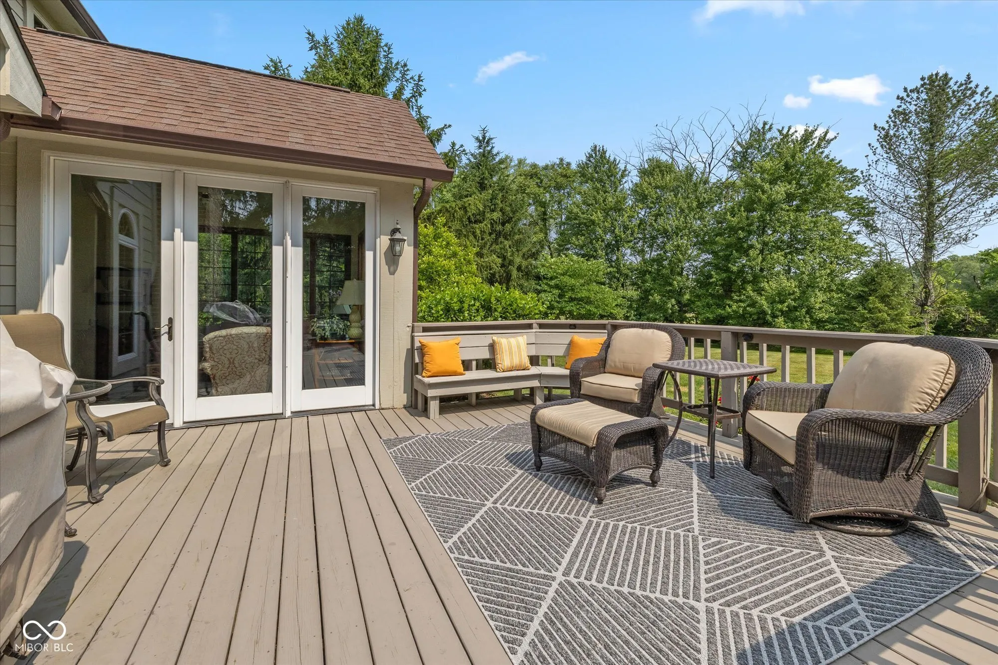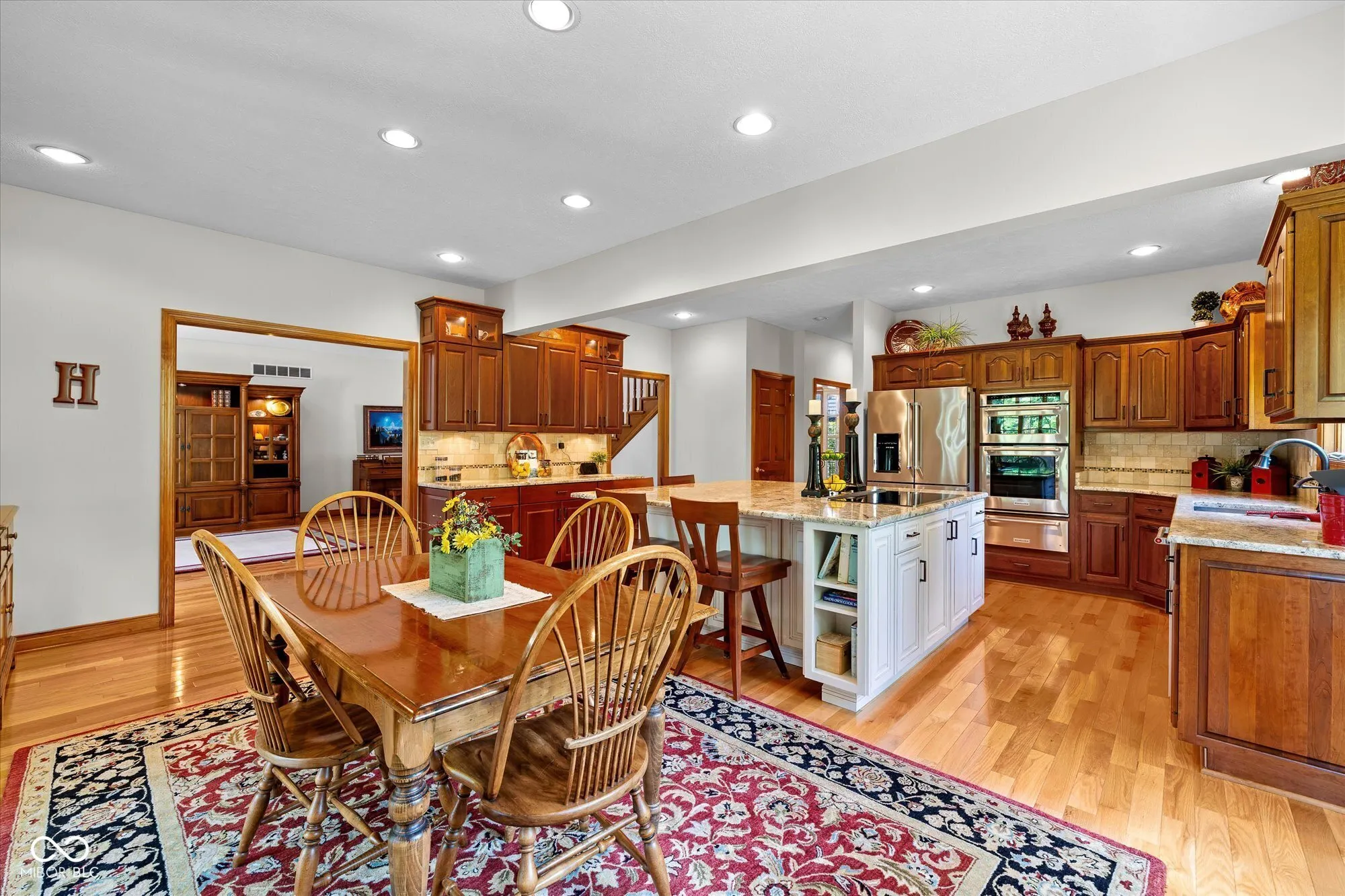 Nestled in the prestigious Ashbrooke subdivision of West Carmel, IN, this exquisite all-brick custom-built residence redefines elegant living. Immaculately maintained and tastefully updated over the years, the open great room captivates with its stunning fireplace and soaring vaulted ceiling, creating an airy atmosphere flooded with natural light. The chef’s dream kitchen is both beautiful and functional, featuring a grand center island with luxurious granite countertops, new cabinetry, high-end appliances, and an induction stovetop, that all harmonize perfectly with the rich hardwood floors. Retreat to the main floor primary suite, a private sanctuary showcasing a tray ceiling and a spa-like bath complete with a newer walk-in tiled shower, garden tub, and spacious walk-in closet. With over 4,700 square feet of meticulously designed living space, this home offers four beautifully appointed bedrooms and a fully finished basement with its own fireplace and multiple egress windows. Step outside to your own personal paradise-enjoy serene views from the sunroom or unwind on the expansive deck and patio overlooking the generous 0.93-acre backyard, which holds endless possibilities for your outdoor dreams. You could quickly imagine and envision adding a pool, firepit, grilling station, and even a rec/tennis court. If you aren’t quite ready to add all the bells and whistles to this backyard the community already offers amenities just down the street that enhance this idyllic lifestyle. The subdivision HOA is only $200/quarter and offers the neighborhood tennis/pickleball court(s), a small clubhouse, and a refreshing pool and picnic areas. This property, its amazing location, and the mature subdivision masterfully combine sophistication, lifestyle convenience and comfort, making it the ultimate place to call home.