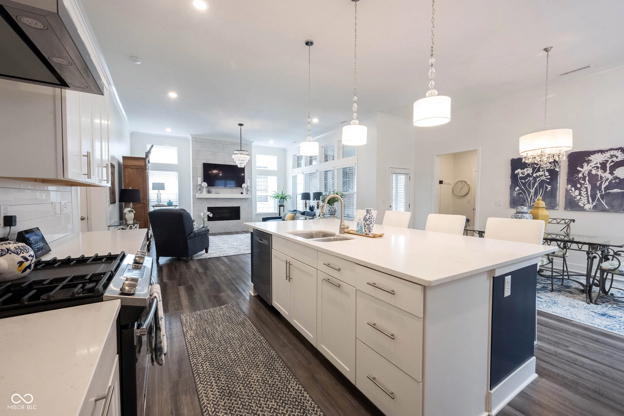 Discover the perfect blend of comfort, style, and convenience in this exceptional ranch home located in desirable West Carmel. Thoughtfully designed for modern living, the open-concept floor plan offers effortless flow and spacious living areas-ideal for both entertaining and everyday life. Enjoy low-maintenance living with durable Hardie Plank siding, custom landscaping, & irrigation system to keep your yard looking beautiful year-round. Relax on the inviting covered front or back porch, complete with a built-in outdoor fireplace with gas logs-perfect for cozy evenings. Inside, you’ll appreciate the high ceilings, custom window treatments, and built-in SMART-home wifi and integrated features. Storage is abundant, with generous closets throughout the home. The chef’s kitchen boasts stainless steel appliances, gas cooktop, two gas ovens, solid surface countertops, a large center island, and ample white cabinetry for all your storage needs. Bathrooms are finished with the same high-quality materials, while the primary ensuite provides a spa-like retreat with a spacious walk-in shower and an expansive walk-in closet. Located just minutes-or a bike ride-from the Village of West Clay, and close to Clay Terrace, grocery stores, restaurants, pharmacies, and more, this home offers a lifestyle of ease, connection, and comfort.