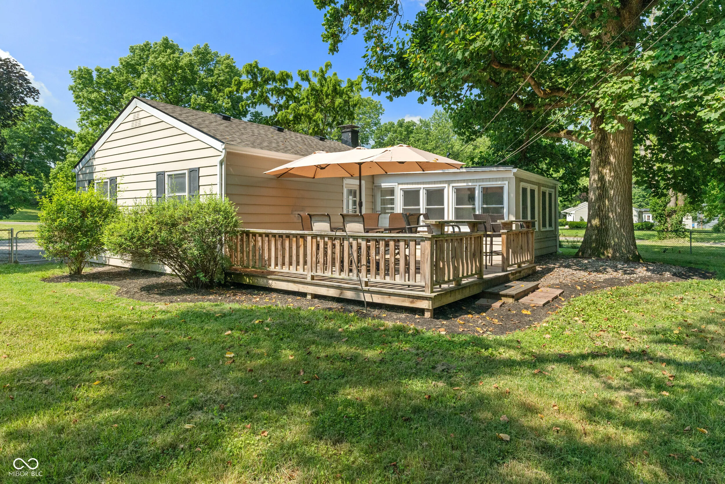 Nestled on a generous corner lot in desirable Oxford Village discover this inviting home. This single story residence presents an opportunity to embrace comfortable and convenient living close to the great shopping and dining offered by Glendale and Broad Ripple. The living room offers a welcoming atmosphere, centered around a fireplace that promises cozy evenings and a natural gathering place. The kitchen features shaker cabinets paired with stone countertops, creating a stylish and functional space. The backsplash adds a touch of sophistication, completing the room where everyone gathers. Three good sized bedrooms with newer vinyl windows promise restful comfort. A large 3-4 season room, insulated and heated, provides more year round living space and room for festive gatherings. Step outside and discover the joys of outdoor living with a spacious deck, and an outdoor dining area, perfect for enjoying the expansive 18687 square foot lot. Envision al fresco meals under the stars and gatherings creating lasting memories with loved ones. The property also includes a shed, providing practical storage space for your outdoor essentials. A roof and gutters in 2025, A/C in 2024, Furnace and hot water heater barely 10 years old gives peace of mind. With its blend of comfort and outdoor allure, this residence offers a unique opportunity to create your ideal lifestyle.