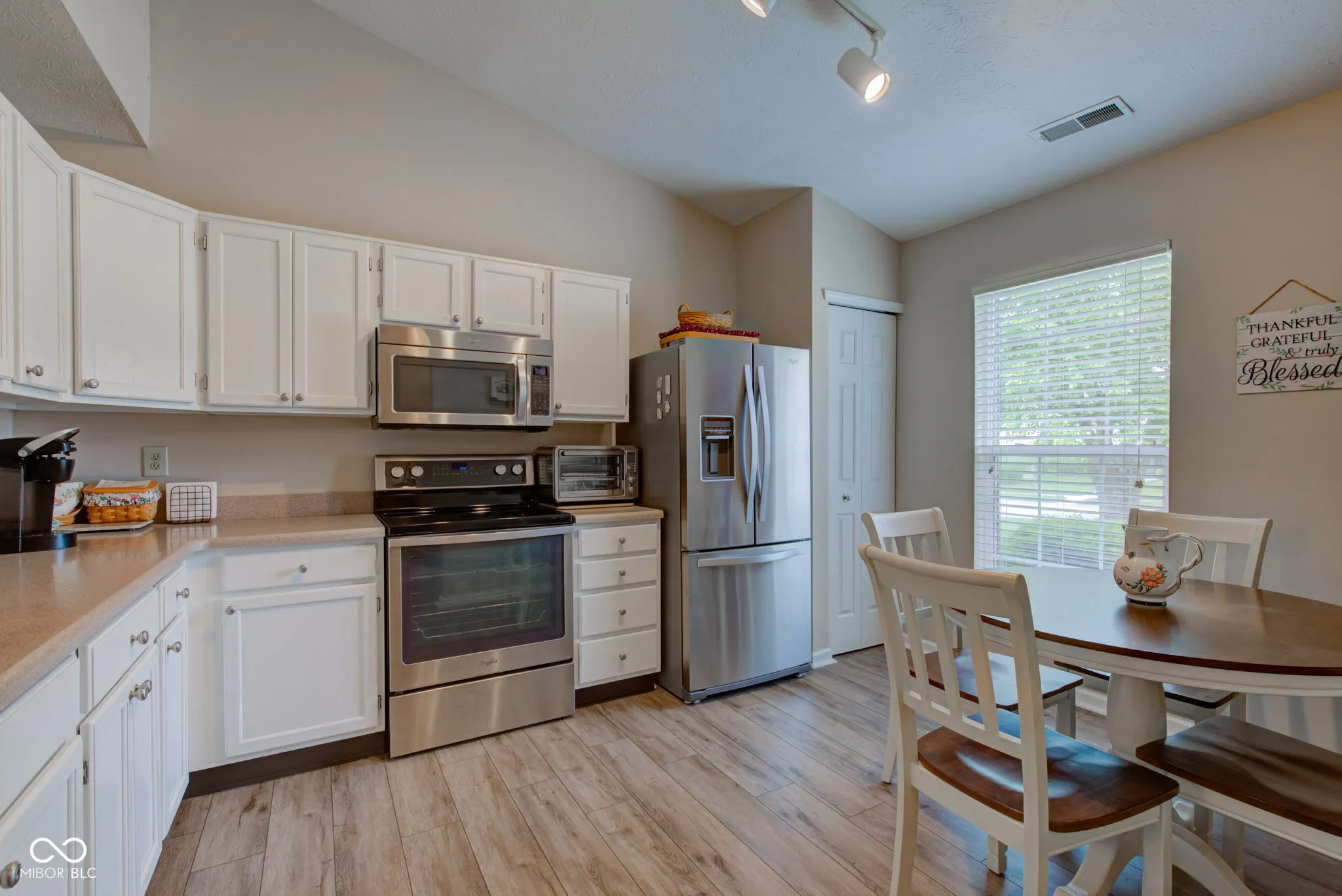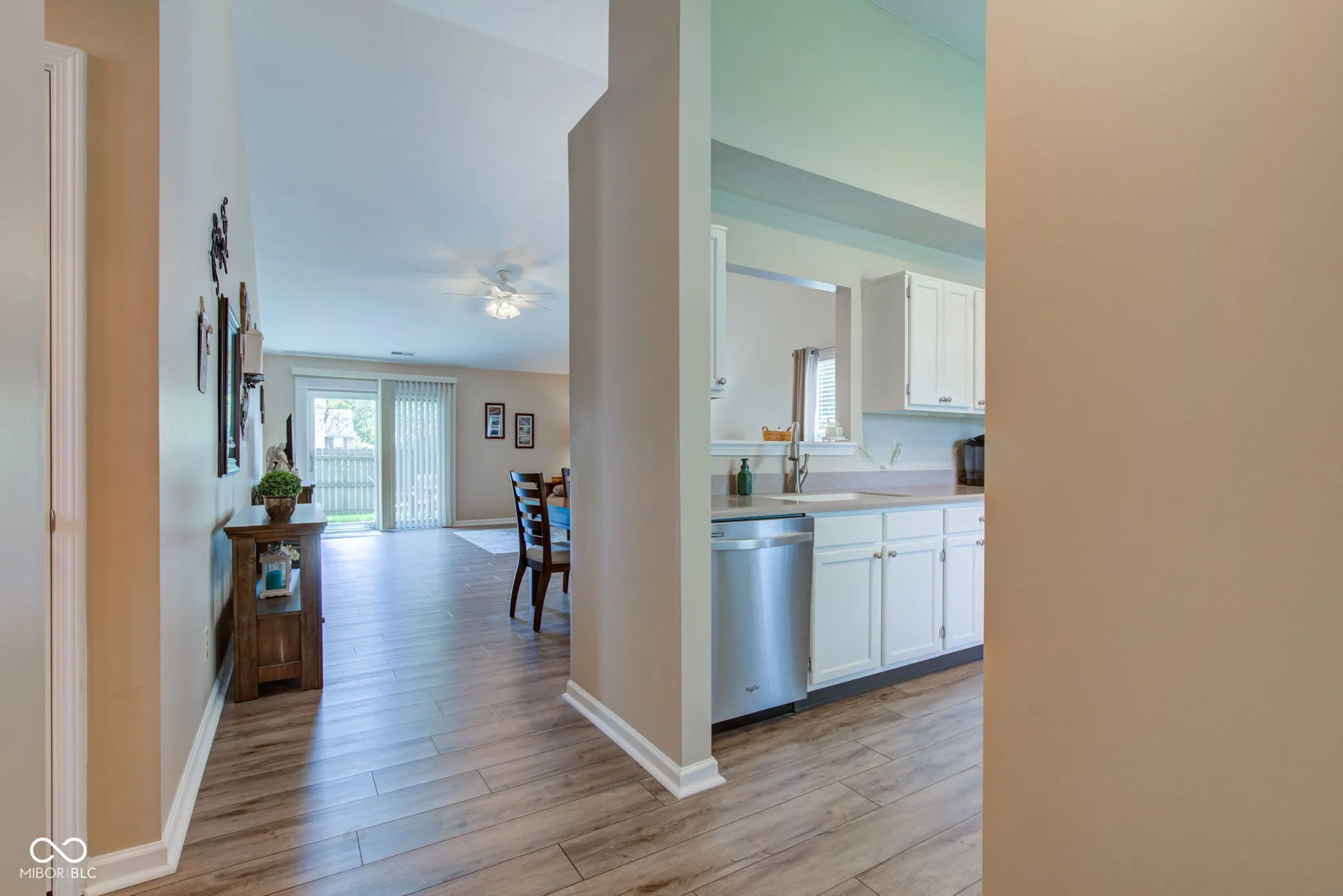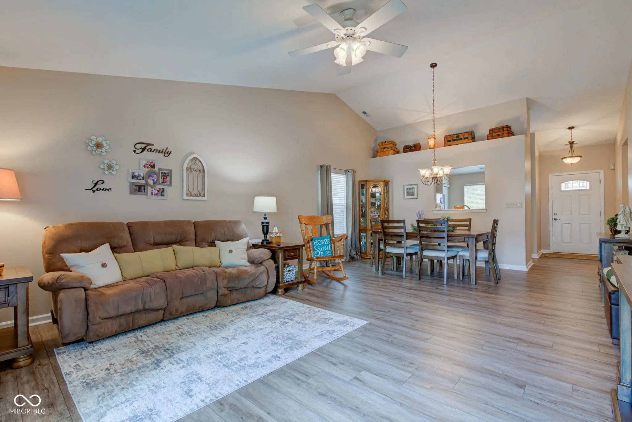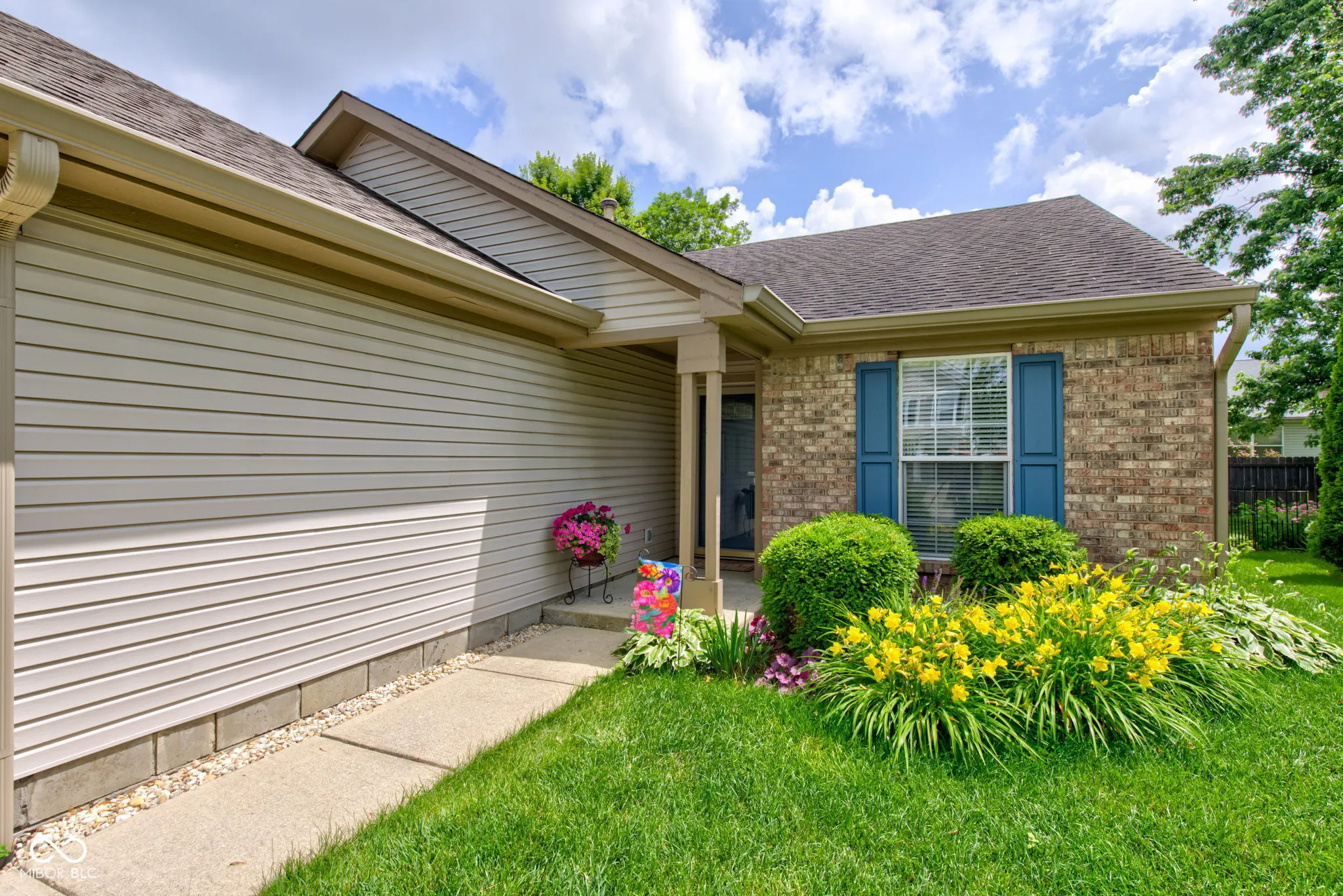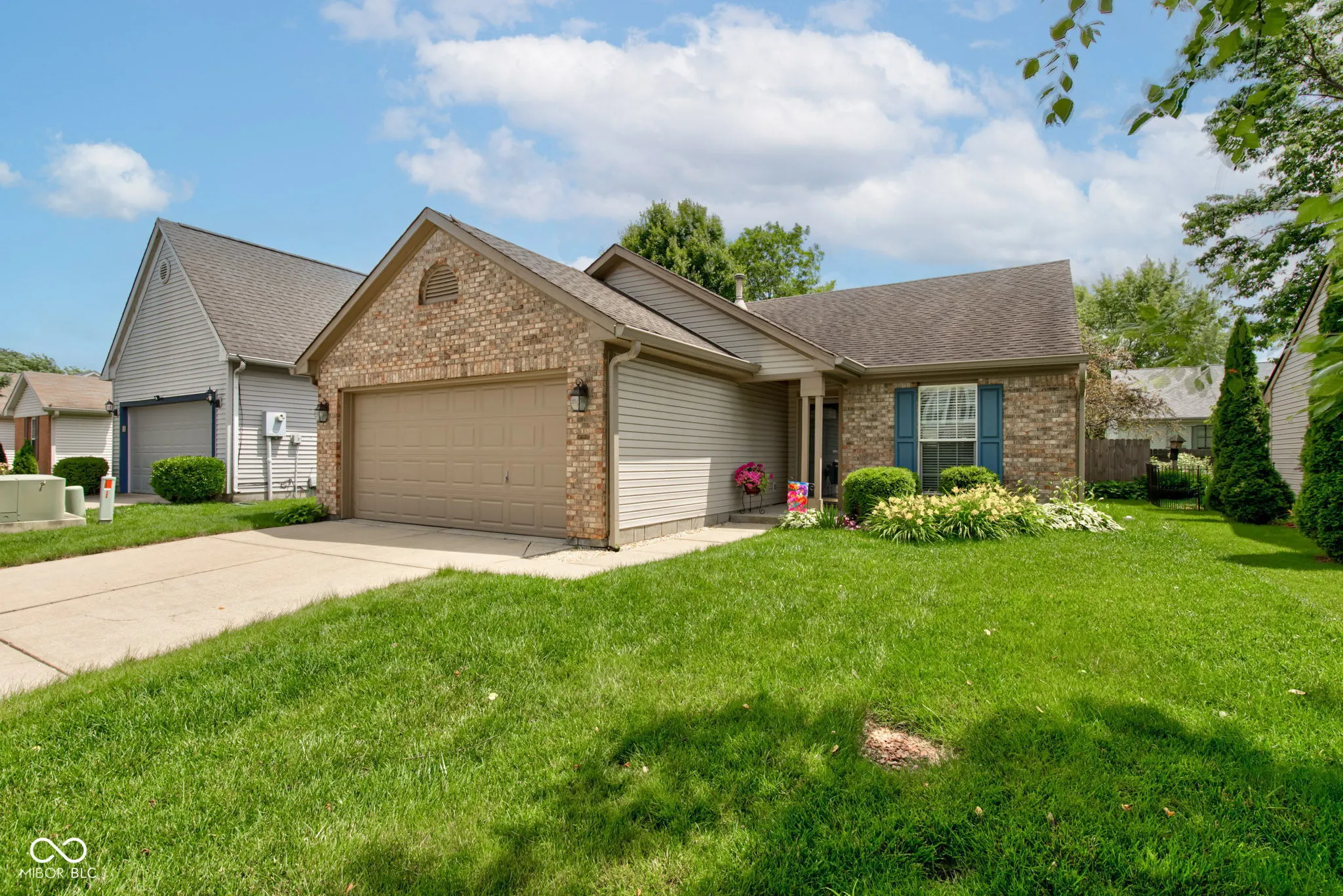 Welcome to this beautifully maintained, 3 bdrm/2 full bath gem nestled in a quaint Brownsburg neighborhood. Perfectly situated just minutes from shopping, interstate access, and entertainment, yet tucked away far enough to enjoy the serenity of peaceful surroundings. A well-thought-out floor plan maximizes space and provides an open, airy feel. Spacious living/dining room combo features cathedral ceilings; perfect for gatherings or relaxing at home. Eat-in kitchen w/updated painted cabinetry, pantry, stainless steel appliances, and beautiful Corian countertops w/integrated sink. Primary bedroom w/en-suite bath boasts updated vanity, walk-in full shower & roomy closet. Tastefully updated full guest bath. Separate laundry/utility room and a two-car attached garage offer convenience and practical storage solutions. Grab a cup of coffee and step out the patio door to your backyard retreat w/privacy fence and paver patio; perfect for entertaining. Small tree near patio bursts with vibrant magenta blooms in the spring for your enjoyment. NEW luxury vinyl flooring and carpet (2023), Water Heater (2025), Furnace & AC (2020) Don’t miss this rare opportunity to own a move-in ready home in this highly desirable location.