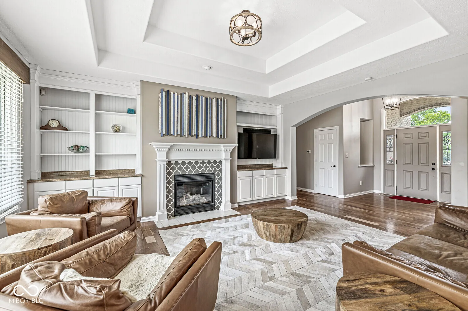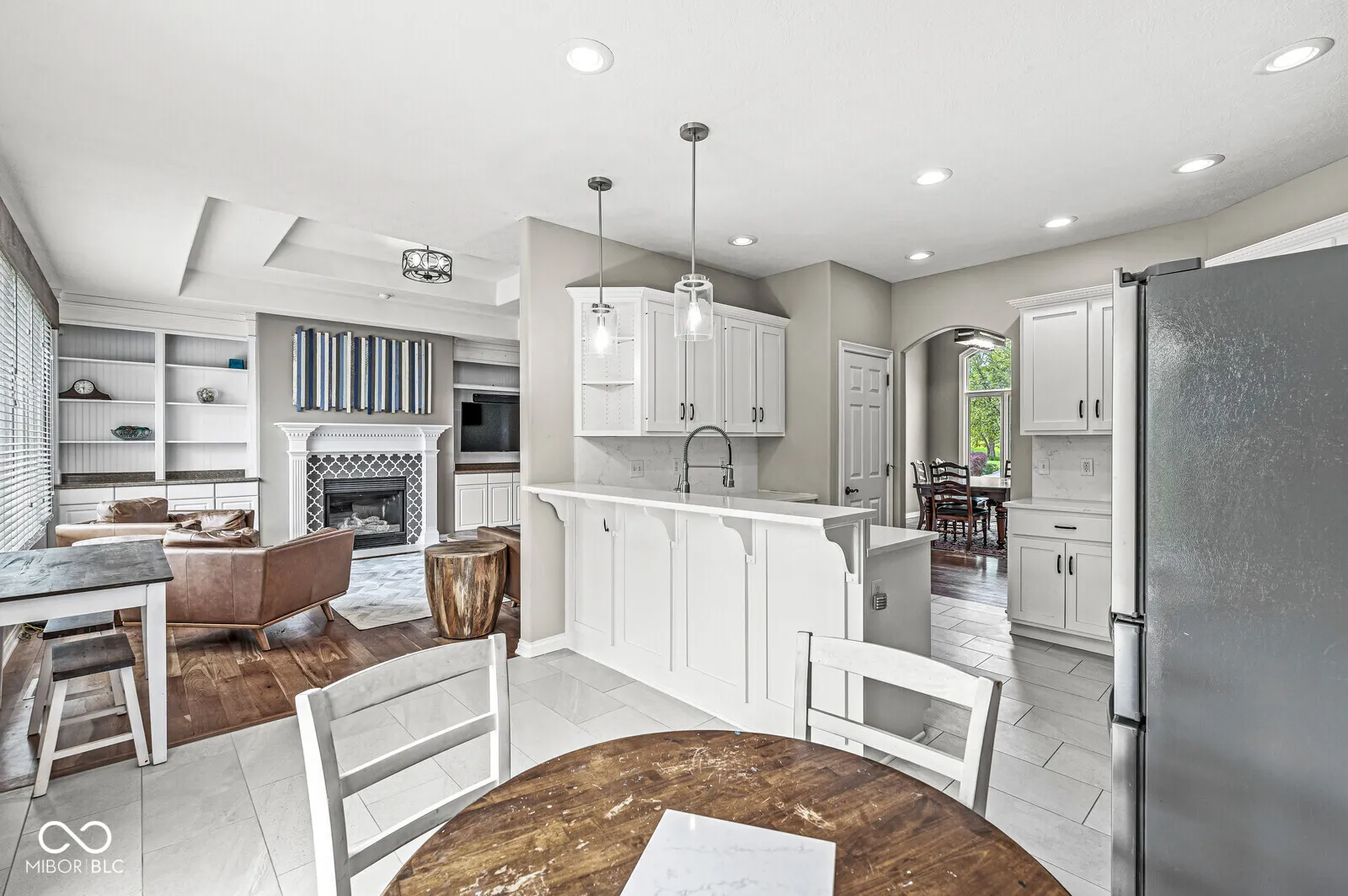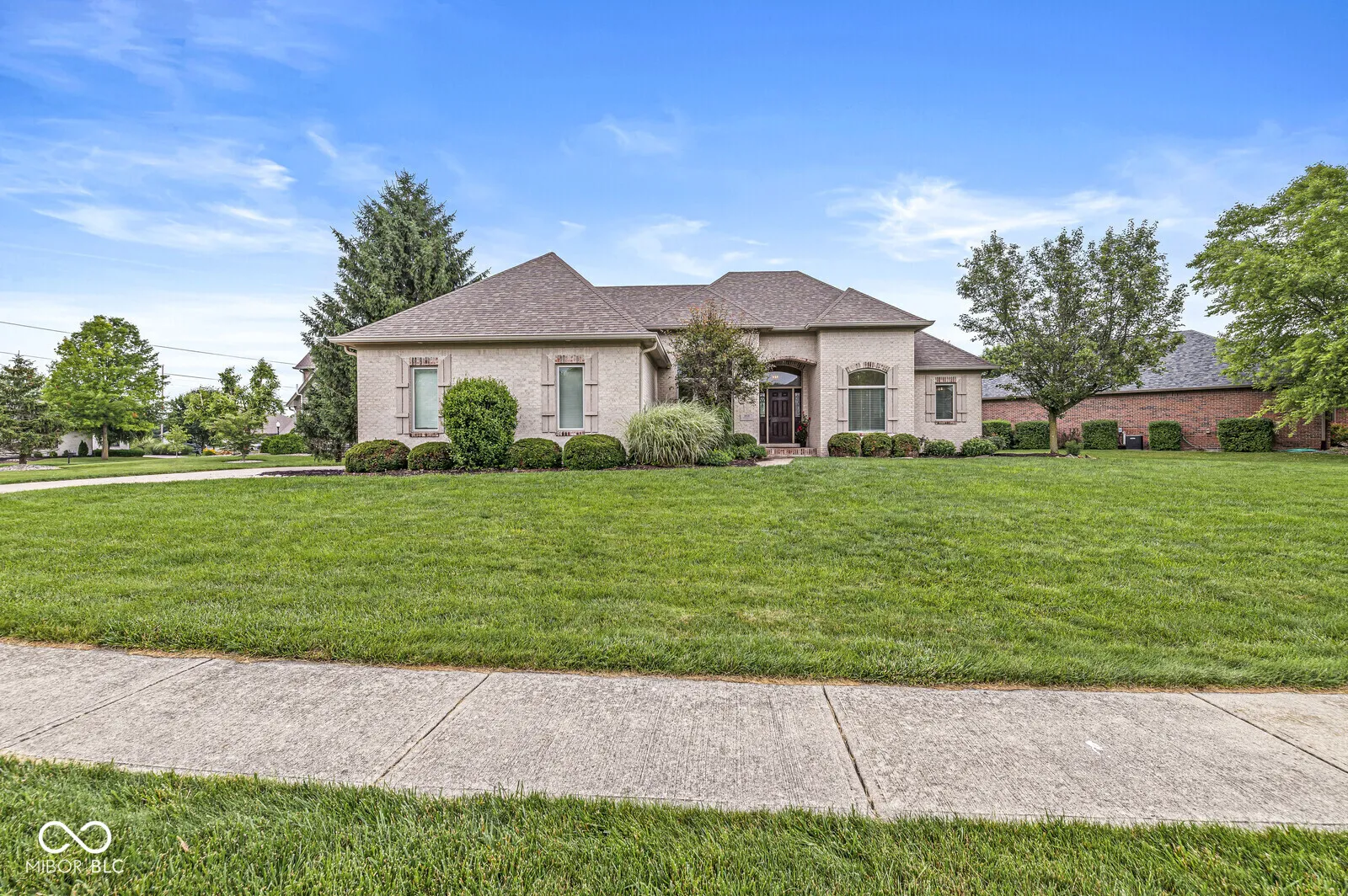 Welcome to Kensington Grove-a sought-after Center Grove subdivision with well-kept custom homes. Set on a manicured lot with a stamped-concrete patio, this 4-bed, 3-bath ranch offers easy main-level living with a surprise-sized finished basement for game nights, movie marathons, or multigenerational living. Step inside to an airy great room with a vaulted tray ceiling. Warm hardwoods welcome you past custom built-ins to a gas fireplace that anchors gatherings with effortless style. Just off the foyer, there’s a formal dining room perfect for holiday spreads or Sunday brunch. The heart of the home-a freshly renovated kitchen-now shines with crisp white cabinets, quartz-look countertops, and trendy ceramic-tile floors. A breakfast bar welcomes morning coffee, and a pantry adds everyday convenience. A split plan keeps the primary suite private. Behind double doors, you’ll find another tray ceiling, a spa-like bath with a garden tub and separate shower, plus a windowed walk-in closet with custom organizers. Across the hall, two secondary bedrooms share a full bath, and a fourth bedroom downstairs enjoys its own daylight windows and an adjacent full bath-ideal for guests or an older teen. The lower level also delivers a sprawling family room wired for surround sound, a dedicated storage room, and space to add a gym or hobby nook. Notable 2020 upgrades include a new HVAC system with high-end air purification, energy-efficient Pella windows, and the backyard patio-perfect for summer barbecues under the stars. If you’ve been searching for move-in-ready comfort with room to grow, play, and entertain, your Kensington Grove address is waiting. Schedule your private tour today!