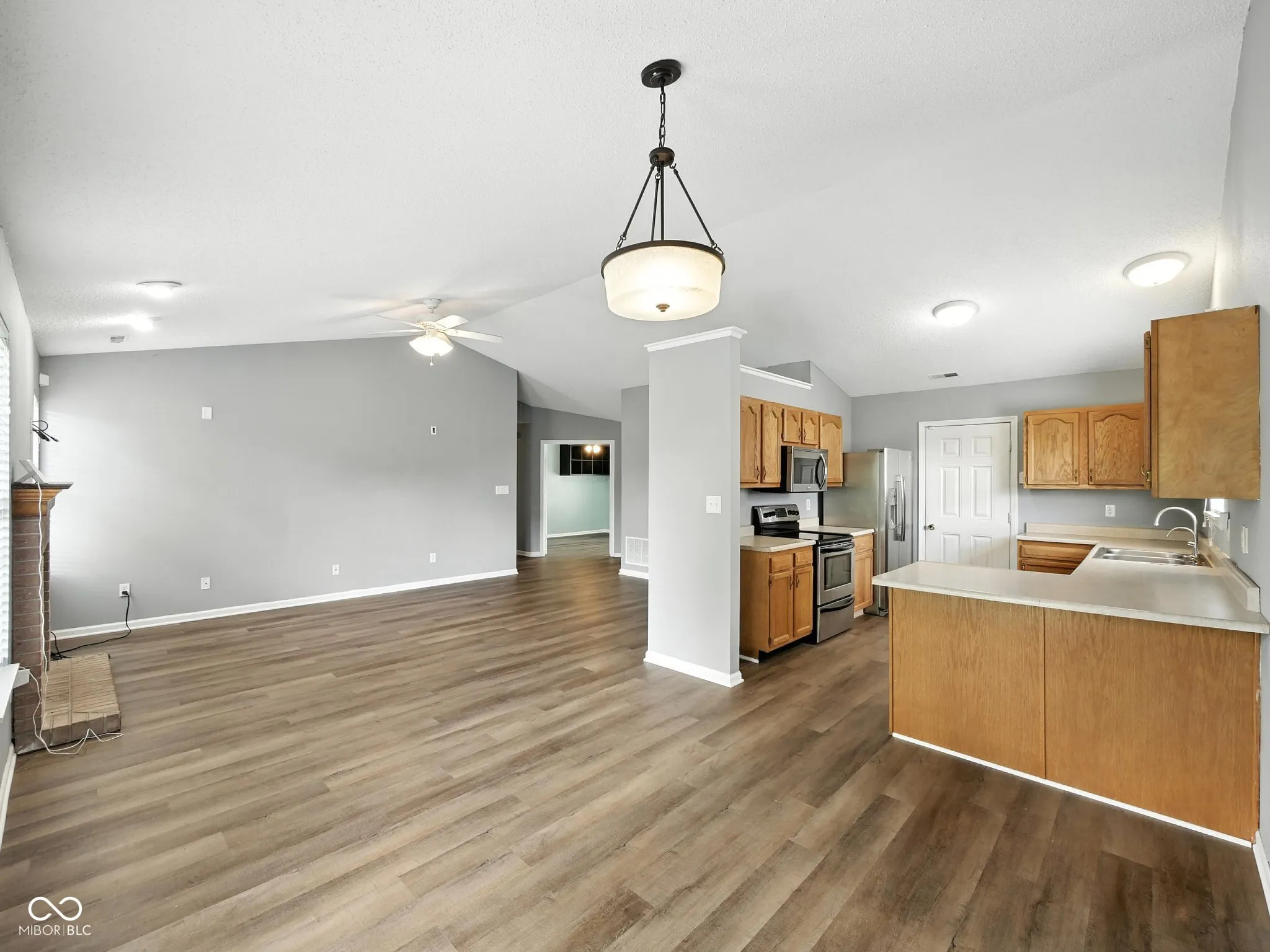 3 BR/2 BA Ranch home w/ an office in popular Copperfield. New Luxury Vinyl Plank flooring throughout. Vaulted ceilings and wood burning Fireplace in the Living room. Kitchen features breakfast bar and Stainless Steel appliances. Primary bedroom w/ vaulted ceilings and walk in closet. Primary BA has garden tub/seperate shower and dbl sinks. Nice size guest bedrooms. Laundry closet washer/dryer included. Covered front porch provides relaxing sitting area. Spacious backyard has room to play. Newer HVAC/water heater. Water softener and R/O system. Updated lighting fixtures. Clark-Pleasant schools. Close to shoping & restaurants. Some photos have been virtually staged.