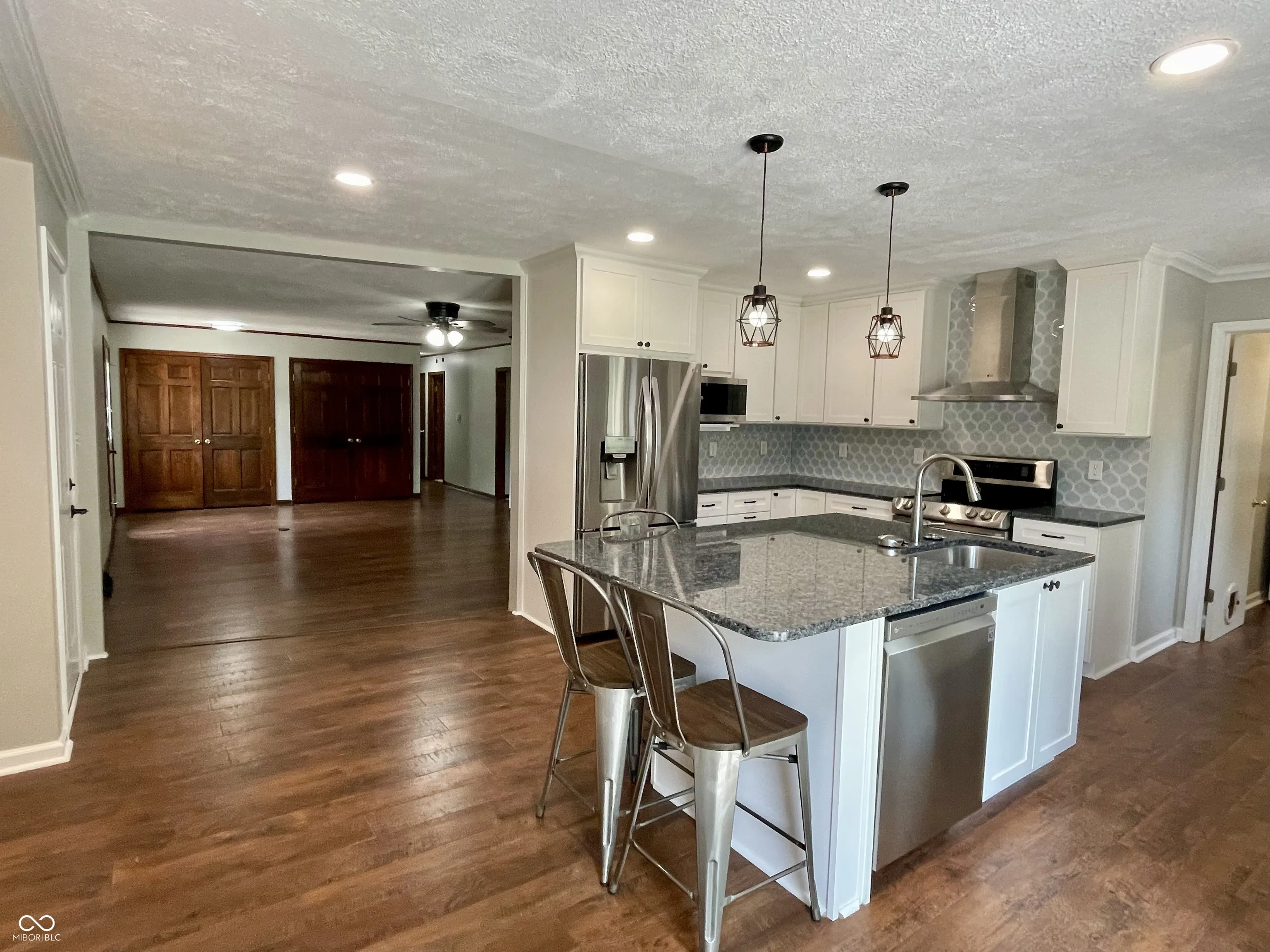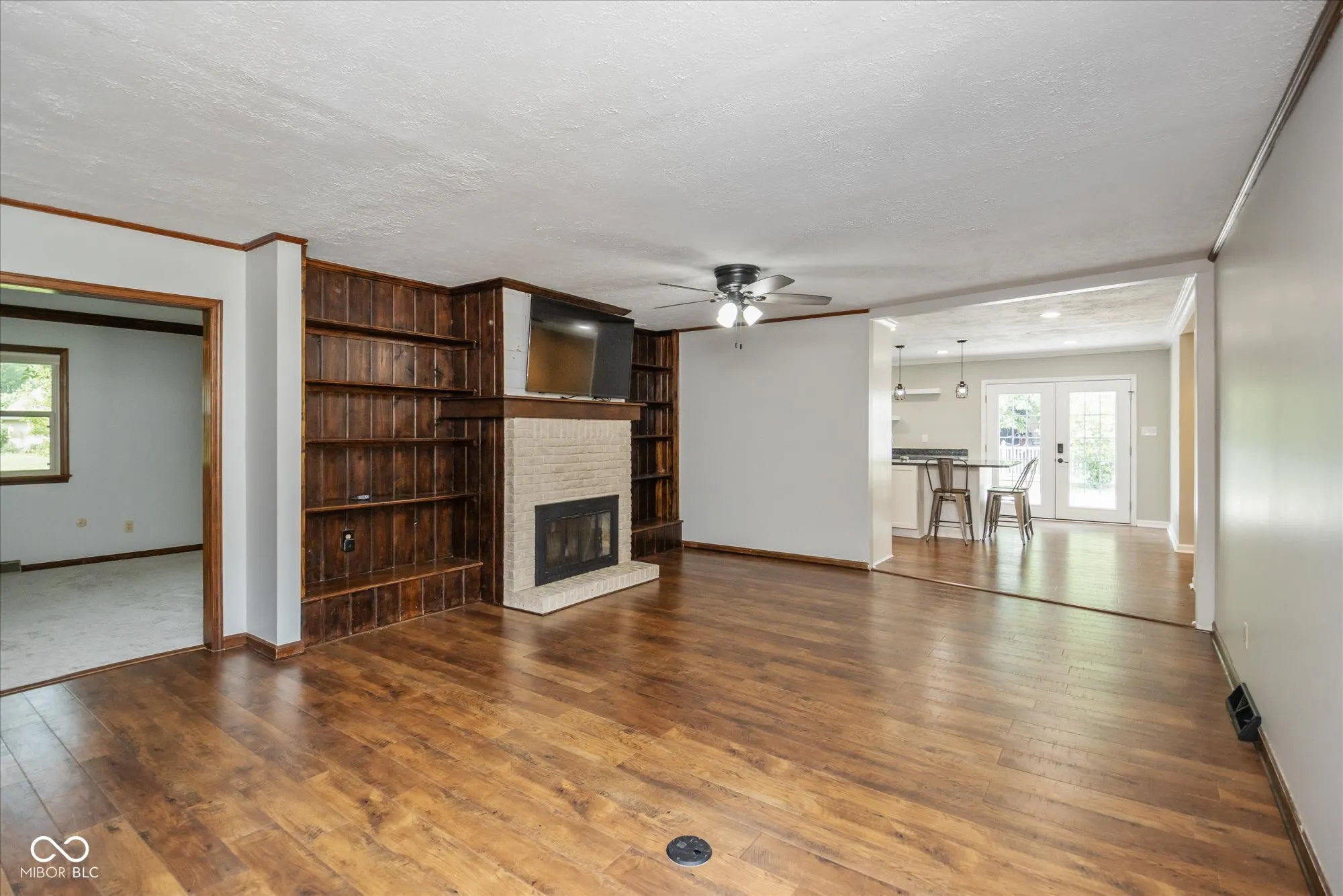 This well maintained and updated brick ranch home is in the desired school district of Center Grove and the sought after neighborhood of Carefree North. The many updates in this almost 1900 sq ft, 3 bed/2 bath home make this home beautiful and inviting. The granite counters and stainless steel appliances make the kitchen a chef’s dream! New laminate wood floors adorn the kitchen and living room and perfectly compliment the built ins surrounding the gas fireplace. A gorgeous barn door can provide separation between the family room and living rooms. Two large closets near the front door provide great storage! The spacious family room can even be divided to add a 4th bedroom or home office. The primary bedroom has a handicapped accessible ensuite bathroom. There is new Carpet in the family room and all 3 bedrooms and fresh coat of paint throughout the interior as well. Outside you will find a wheelchair ramp that provides access to the home as well as the newer 20×20 composite wood deck. New Gutters with gutter guards and exterior paint were done in 2022, new concrete drive, sidewalk and patio in 2021, new 10×12 lofted mini barn in 2021. The neighborhood amenities include a pool, clubhouse, tennis courts and playground. The HOA dues cover these amenities but there are no covenants or restrictions that limit what you can do with the property. Large established trees and a large yard of nearly half acre round out the many amazing things about this home!