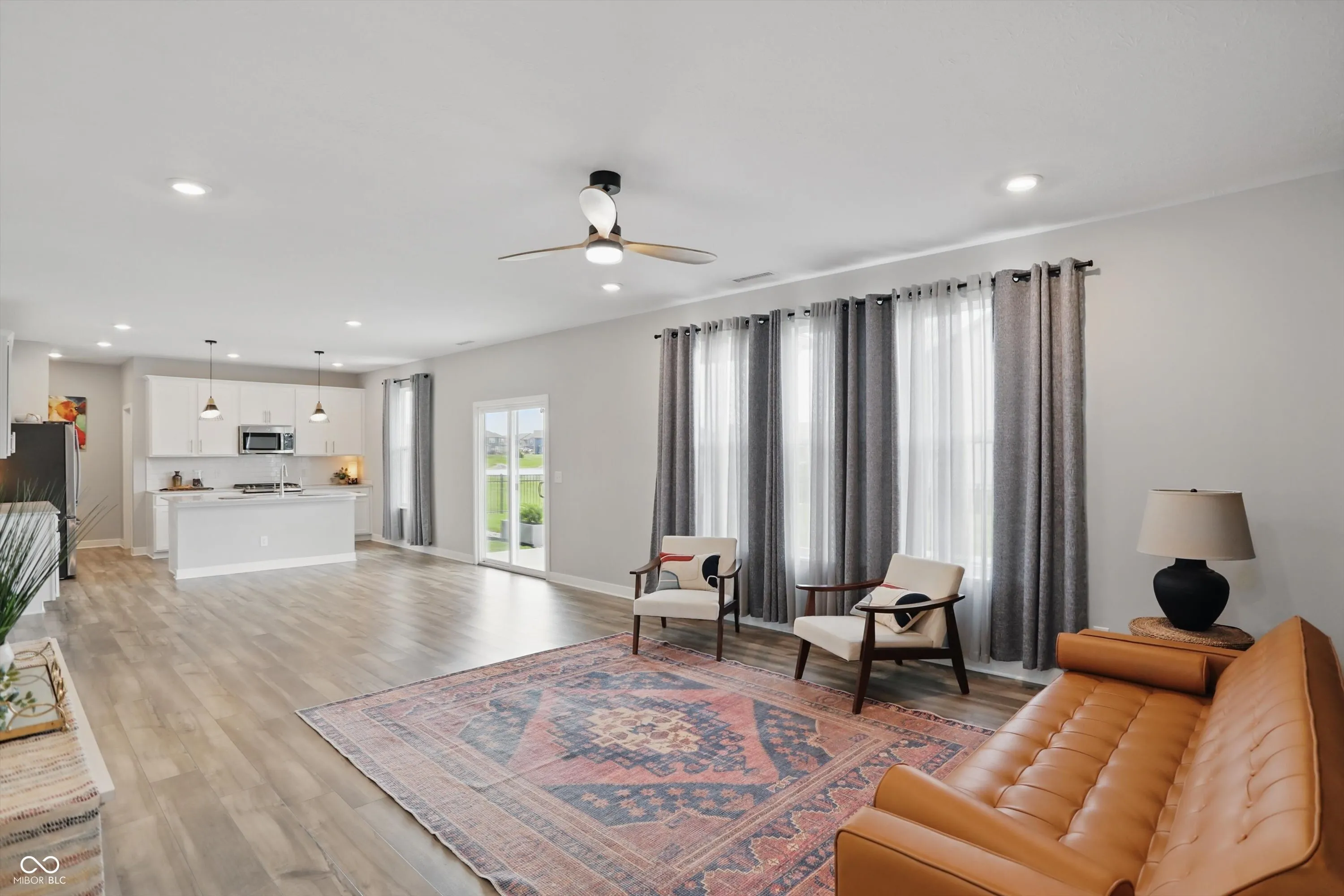 Move-in ready home with high-end upgrades! This home is loaded with custom features and upgrades throughout! An inviting front porch opens into the foyer with beautiful Luxury Vinyl Plank floors that flow throughout the home. An office/bonus room on the main level with french doors and natural lighting. Open concept kitchen/dining/living area that has custom paint and fixtures and is warm and inviting with plenty of canned lighting to brighten the space. The kitchen has ample quartz countertops along with a center island with a counter-height bartop for additional seating and eating space. The island also has a conveniently located sink with a built-in water filter. The kitchen also features a large gas stove, subway tile backsplash and a large walk in pantry! Upstairs, a large loft area greets you – perfect for studying, games or an additional tv area! The primary suite will be your private oasis with tray ceilings, canned lights and an upgraded ceiling fan. The personal ensuite has a sliding door entry, double sinks with quartz counters and custom lighting, an over sized shower with seating, custom tile and glass enclosure! If that weren’t enough, a super sized walk in closet is ready for you! Three additional bedrooms with new ceiling fans/lights and large closets. The hall bath has quartz counters with new mirrors and vanity lights! If outdoor entertaining is what you crave, this yard is for you! With lake views from the private covered porch, custom wall and solo stove firepit and seating area, indoor/outdoor grass area, wrought iron fence, hidden trash & lawn mower storage area, you can entertain for days! Bonus: mud room with bench, all upgraded door hardware, xlarge garage with cabinets, moen smart flow water, smart house with Ring doorbell camera and more! The community has a pool, playground and walking trails and is located near downtown Bargersville & Kephart Park.
