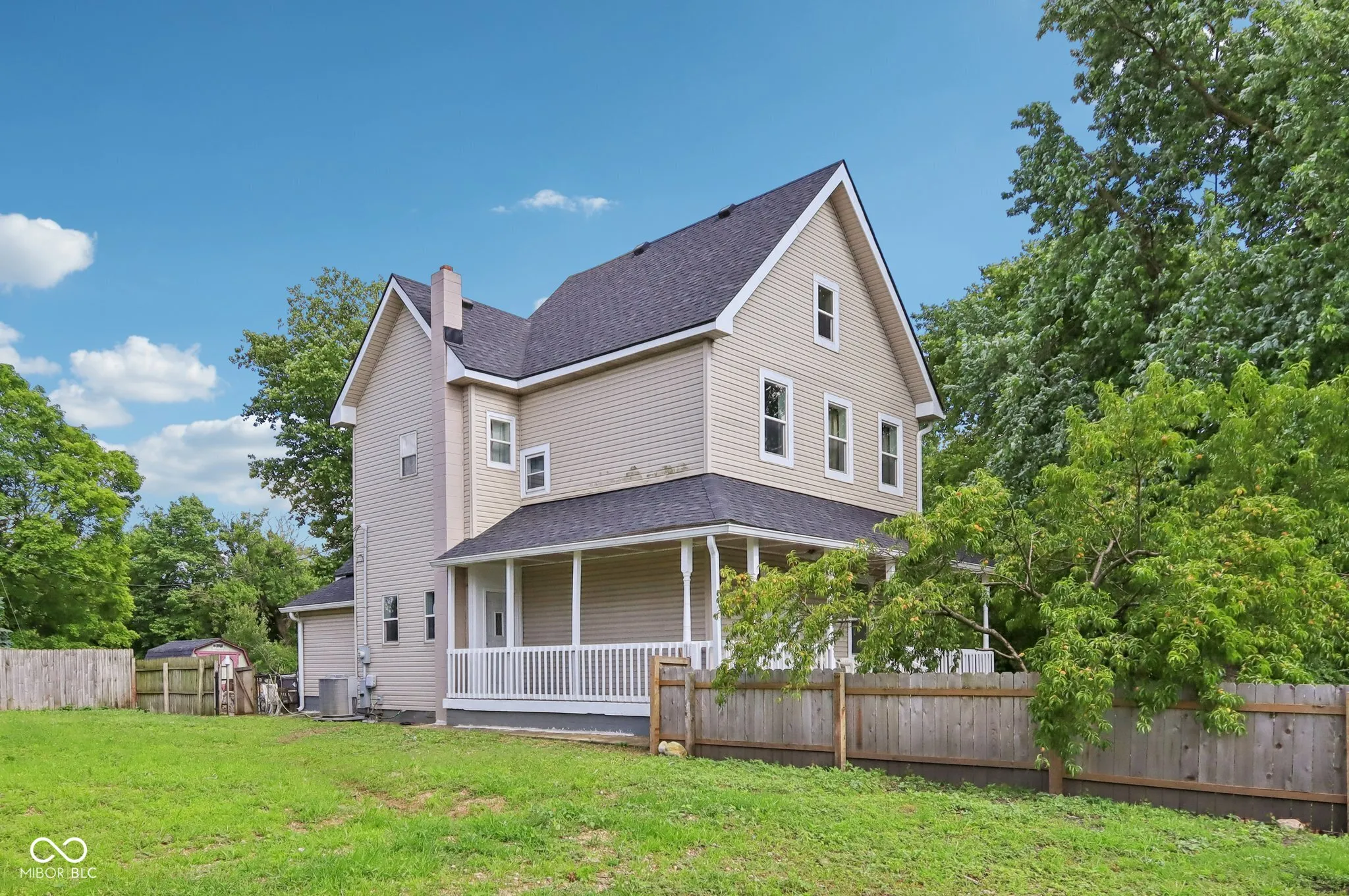 4 BR/ 2 BA Fountain Sq area home has much to be appreciated. Nice corner lot w/ Mature trees. Living Room w/ tall glass french doors & hardwood pocket door display craftsmanship of days gone by. Formal dining room with built in Hutch and newer LVP floors. Large eat-in Kitchen has Walk in pantry and good counter/cabinet space. Main lvl Primary BR w/ 9′ ceiling. Main level BA w/ tiled walk in shower. 2 separate stairways to the upper level. Upper level shows off 3 large bedrooms w/ newer vinyl flooring and 9′ ceilings throughout. Guest BA w/ tub/shower combo. Huge Finished attic provides ample flex space. Enjoy the outdoors on the wrap around porch or covered back patio. Fenced in backyard with stone woodburning grill and garden space. Newer concrete walk around the home. Roof/gutters/downspouts 2023, Windows 2017, Vinyl Siding 2018, New sewer line /electrical/pvc to upstairs BA 2015. Basement partially skim coated.