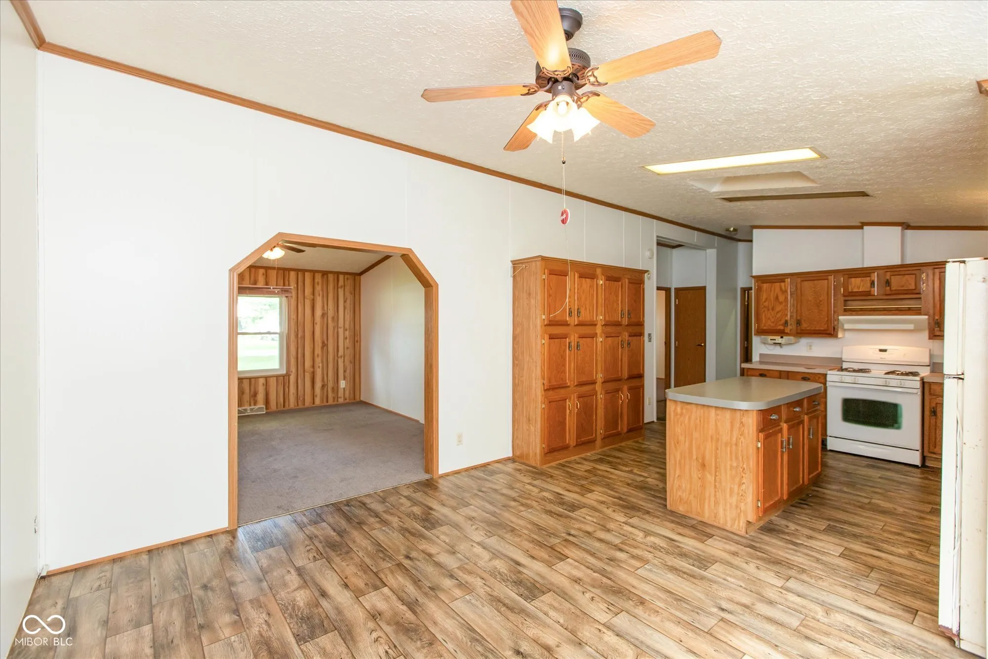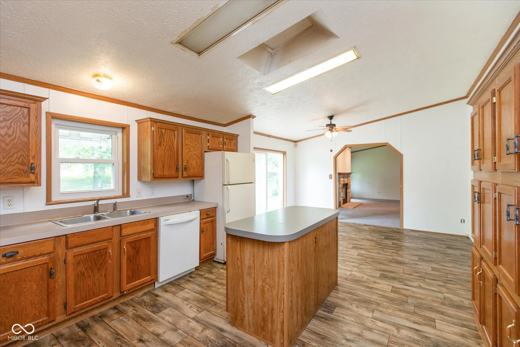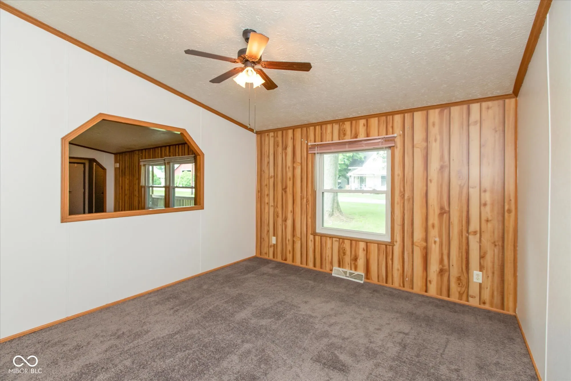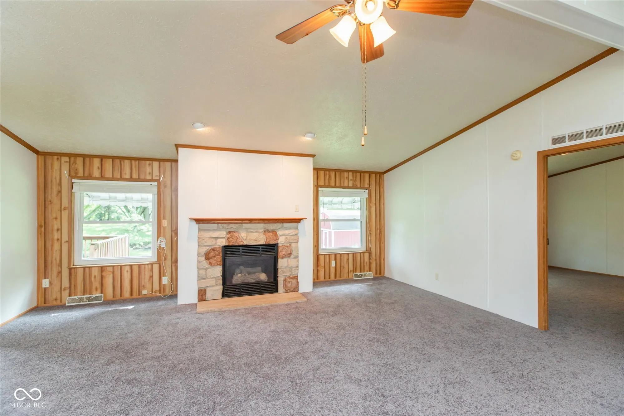 This 3bedroom/2Bth, home on an ACRE of land is ready to welcome its new owner with new flooring and fresh paint throughout! Vaulted ceiling with beam, crown molding, and a wood wall accent in the large living room create an open, spacious atmosphere enhanced by the fireplace feature. The kitchen boasts new floors and paint as well, an island and additional built-in cabinets great for extra counter and storage space. The split floor plan with primary suite on one side is ideal for additional privacy and offers a walk-in closet with a generously sized primary bathroom with separate garden tub and shower. There is a dedicated laundry room for ease of living. The outdoor porch area is great for relaxing and guest entertaining as it overlooks the spacious backyard with mature trees and a creek. An oversized garage serves as extra storage space. Quick access to State Road 47, Rocky Ridge Golf Course, grocery stores and an easy drive to Lafayette make it an ideal location. Schedule your private tour today!