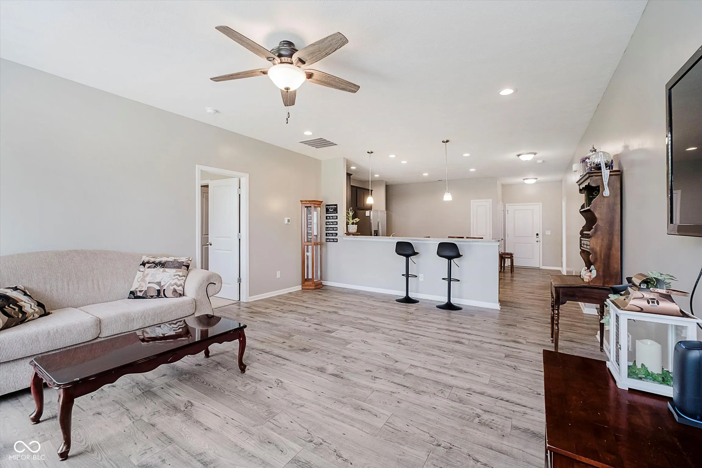 Welcome to 6644 Aberdeen Drive-a move-in ready ranch in the fast-growing community of McCordsville! Built in 2021 and freshly painted throughout, this 4-bedroom, 2-bath home feels like new and offers modern style, thoughtful layout, and low-maintenance living-all on one level. Luxury vinyl plank flooring runs through the main living spaces, complementing the open-concept design that connects a spacious living area to a well-appointed kitchen with stainless steel appliances, generous cabinet and counter space, and a seating bar perfect for casual meals or entertaining. The split-bedroom floorplan offers privacy, with a spacious primary suite featuring a walk-in closet and an updated en suite with dual vanities and a floor-to-ceiling tiled shower. The front bedroom gets beautiful natural light and is ideal as a home office, guest room, or flex space. All bedrooms are carpeted for comfort. Other highlights include a 2-car garage, all mechanicals just 4 years old, and a clean, neutral design that’s truly move-in ready. Outside, enjoy the benefits of a community pool and playground-perfect for summer fun without the upkeep. Located in a highly rated school district and surrounded by McCordsville’s continued development, this home is a standout for first-time buyers, families, or investors. Schedule your showing today-this opportunity won’t last!