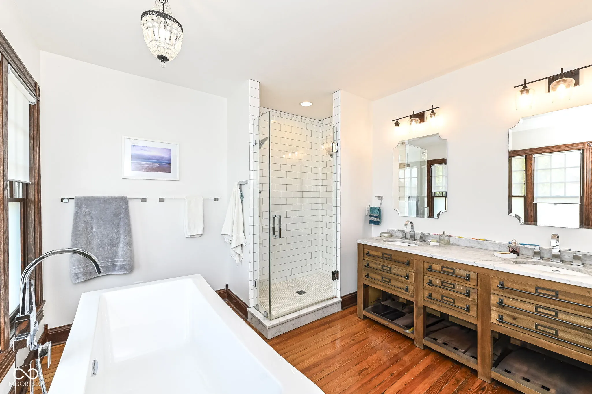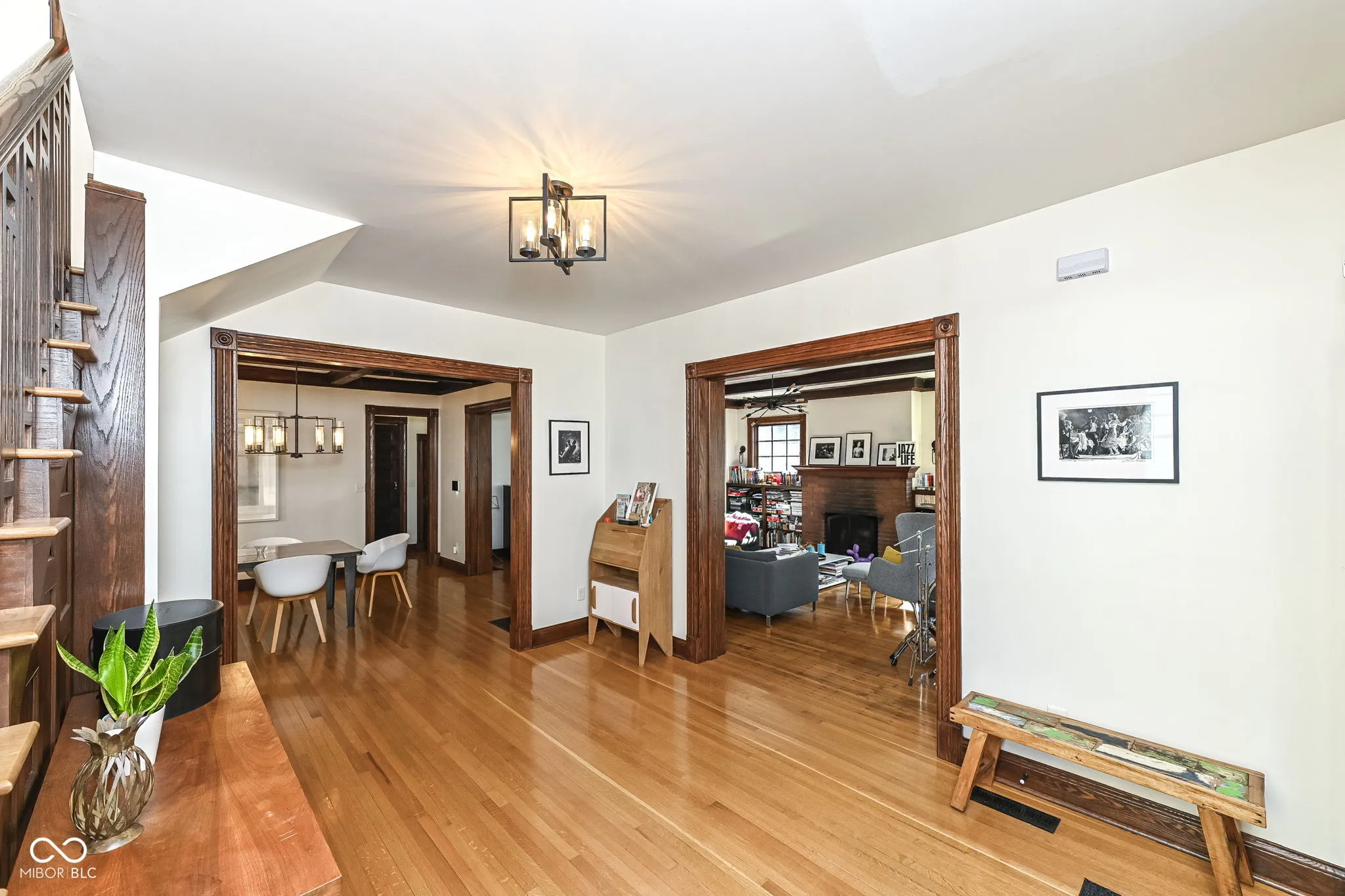 This American Foursquare is fully renovated & maticulously restored, located in Fall Creek Place! The spacious 1901 historic home boasts beautiful 4BR/3.5 baths with upgrades throughout completed in keeping with the its turn of the century charm. Large living room with fireplace, wood trimmed new windows, beautiful dining room, high ceilings makes for a perfect home to enjoy family and friends! Formal dining room opens to modern kitchen with custom cabinetry, quartz counters, stainless appliances & delightful coffee nook. The primary suite features an impressive private spa bath with carrara marble as do the other 2 baths on the second floor, gorgeous! Third level loft is perfect for a play space or bonus room. Basement has abundant storage space can also be a perfect project area. Completely refinished back porch looks onto the large fenced in backyard which has plenty of room for a garage, play area and garden. Location, location, location! Close to Goose Market, Children’s Museum and entrance to I65. Home has a special history, starting with jazz concerts, heavy metal in the 90’s and more in its musical history, known as the “Secret Location”, written in the concrete in front of the home!
