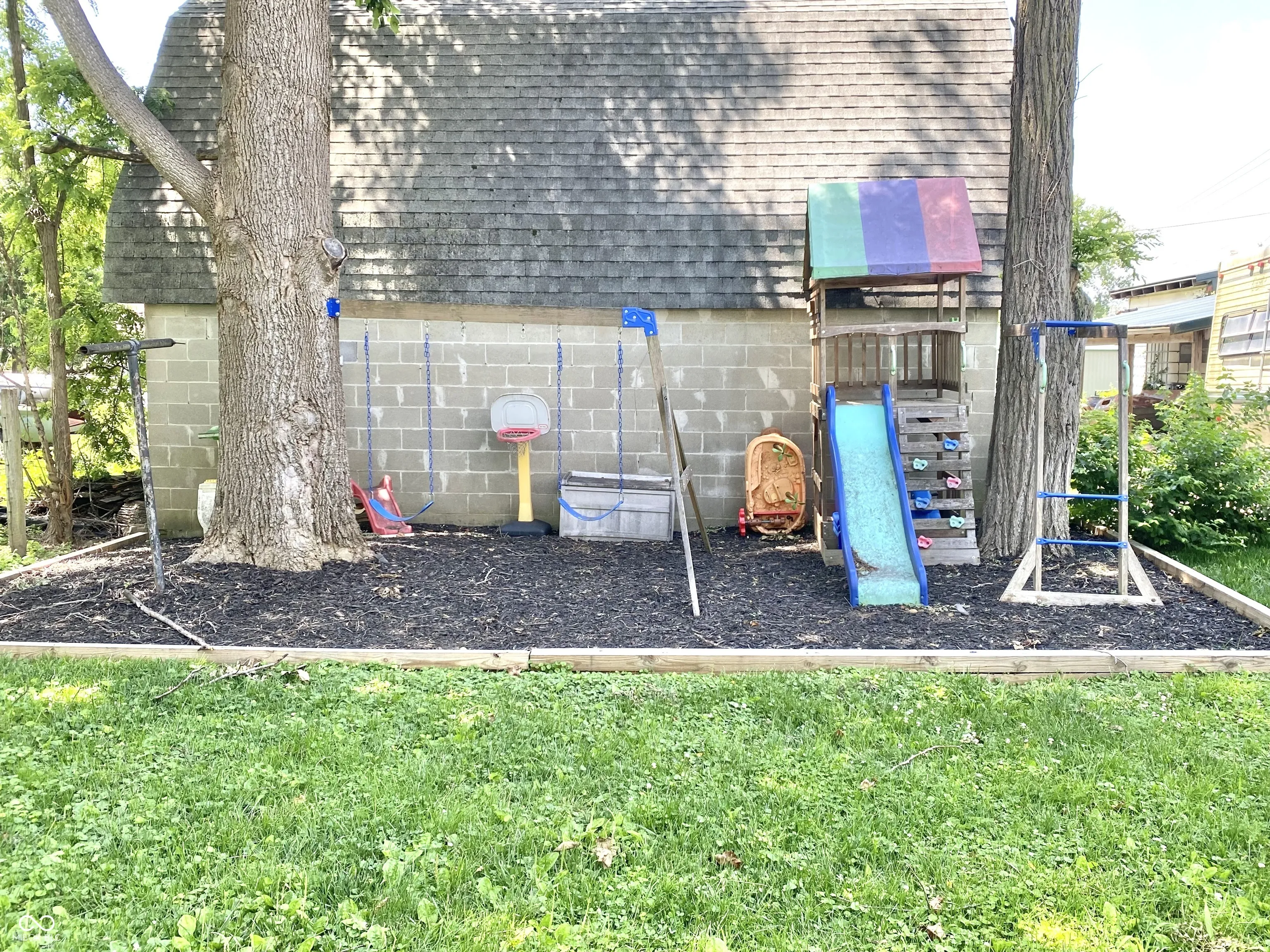 Feast your eyes on this single-family residence offering 3 bedrooms, 1 bath, a bonus room, large living room, laundry room and roomy kitchen with over 1600 sq. ft of living space. This home is practically begging for a new story to be written within its walls – and guess what? It’s ready to move in! Let’s talk kitchen, shall we? Imagine yourself whipping up meals in this haven, complete with a backsplash that adds a touch of pizzazz. The large kitchen island is practically begging for you to gather around it. Complete with all kitchen appliances! The laundry room/mud room offers a great space with storage or pantry plus washer and dryer are included. Updates inside include new carpeting, new vinyl flooring, updated bath complete with extra storage and double vanity. Outside, a porch stands ready to greet you with open arms, inviting you to kick back with a glass of lemonade and watch the world go by with easy access via steps or ramped sidewalk. And when you’re ready to soak up some sunshine, the deck awaits, promising lazy afternoons and starlit evenings under the Indiana sky. With a generous 9714 square feet lot area, the possibilities are as endless as your imagination; a garden party, a friendly game of croquet, or simply basking in the glory of your own private oasis, this space is yours to command. Play set is included along with a mini garden shed. The oversized 2 car garage plus carport offers plenty of parking and storage space. Privacy fence will be installed along the rear and west side of property before closing. This inviting home is calling your name, offering a delightful blend of comfort and style that’s sure to steal your heart.