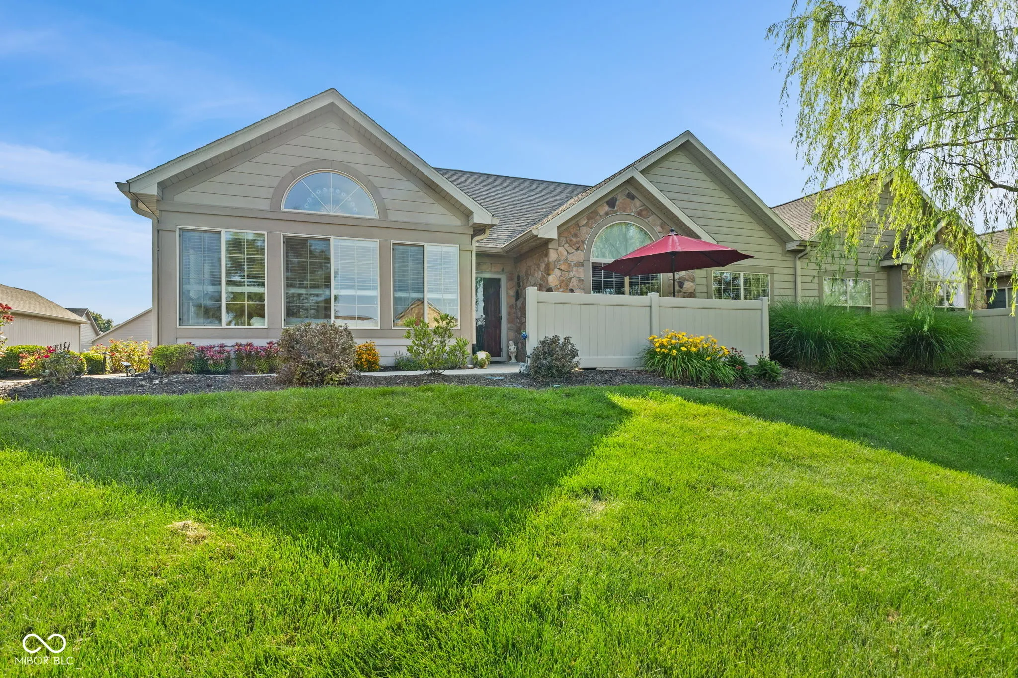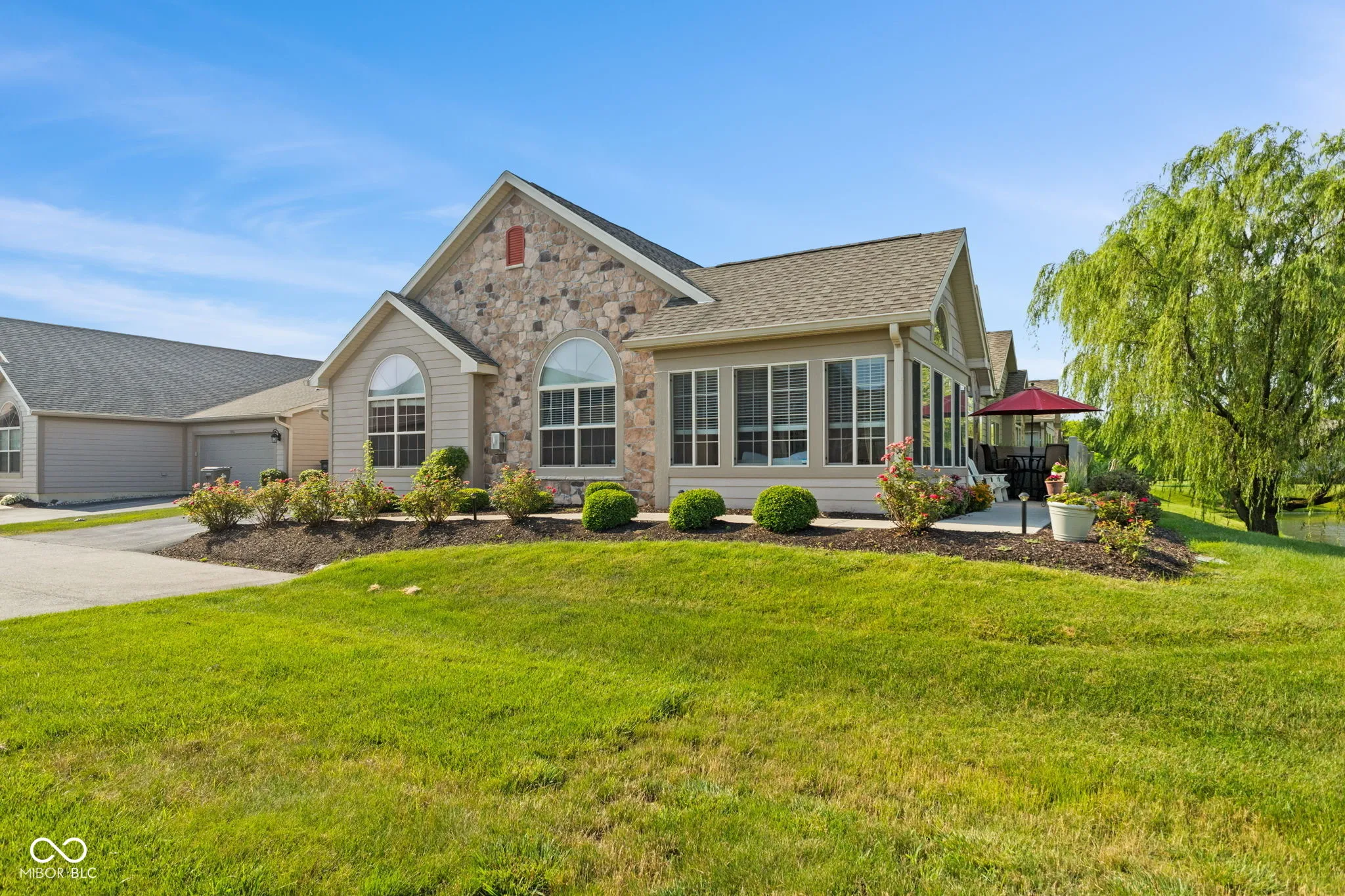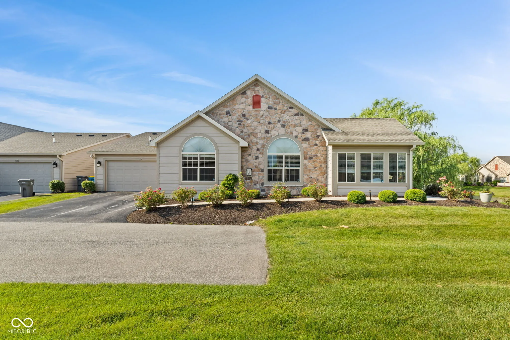 Welcome to effortless living in this beautifully maintained, one-level condo offering, comfort, style, and serene water views. Step into an open-concept layout designed for modern living, where the vaulted ceilings create a sense of spaciousness and light. The living room features a cozy gas fireplace and flows seamlessly into a bright sunroom, perfect for enjoying your morning coffee while taking in the peaceful views of the pond. The kitchen is a cook’s dream, with granite countertops, abundant cabinet space, and a layout ideal for both everyday living and entertaining. The primary bedroom is a private retreat, boasting vaulted ceilings, a walk-in closet with upgraded shelving and hanging system, and a spa-like en-suite bath with double sinks and step-in full shower. Ample storage located in garage attic with easy access pull-down stairs. Enjoy the advantages of a desirable private lot nestled along the pond, offering both privacy and tranquility. The community adds to the lifestyle with access to a clubhouse, swimming pool, and exercise room. Whether you’re downsizing, simplifying or simply seeking a maintenance free home with thoughtful finishes and a prime location, this move-in-ready condo is a rare find.