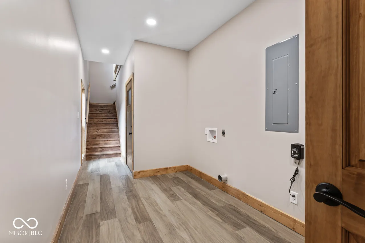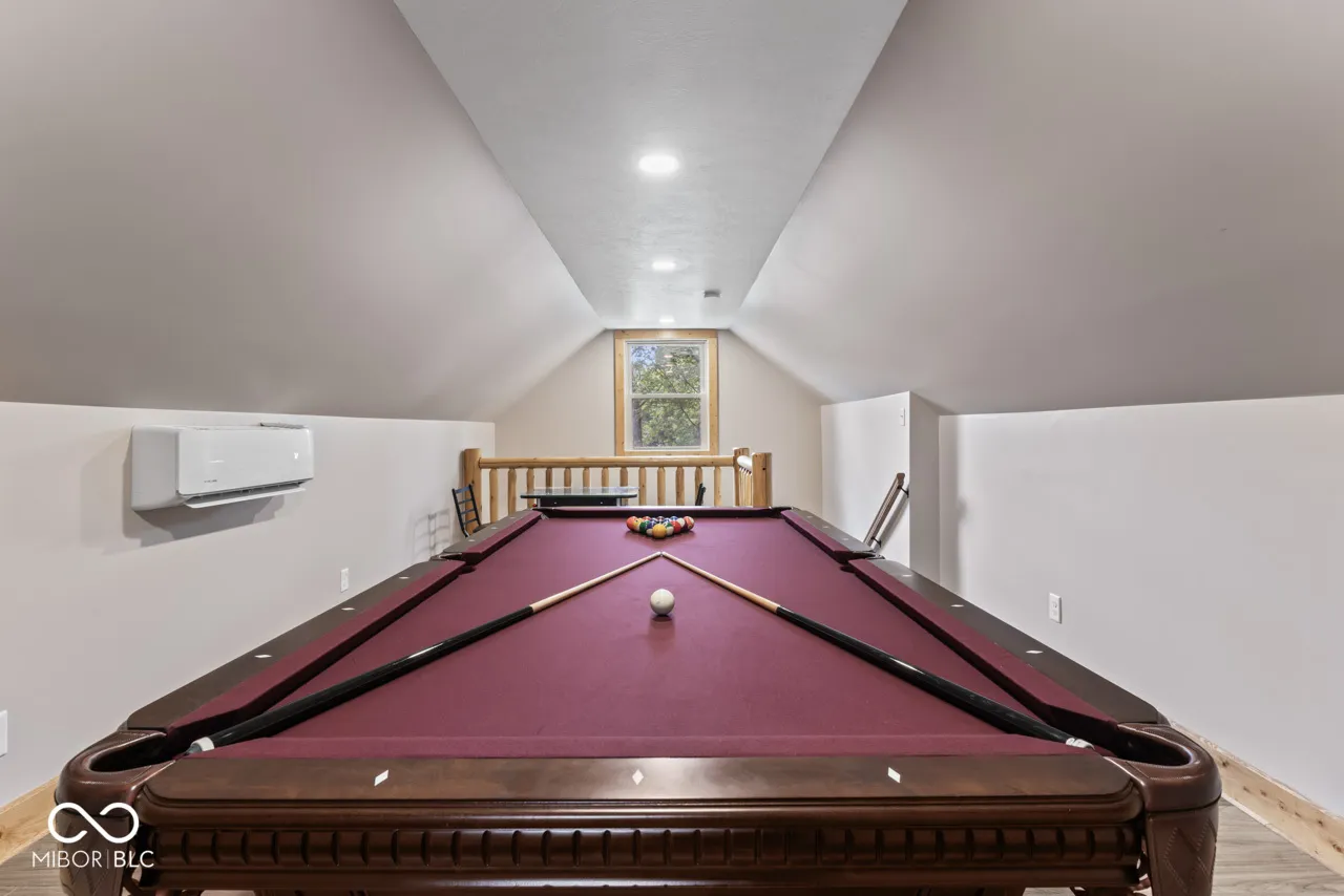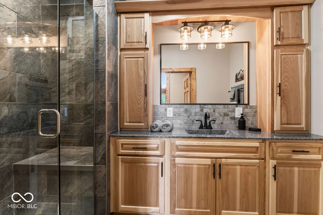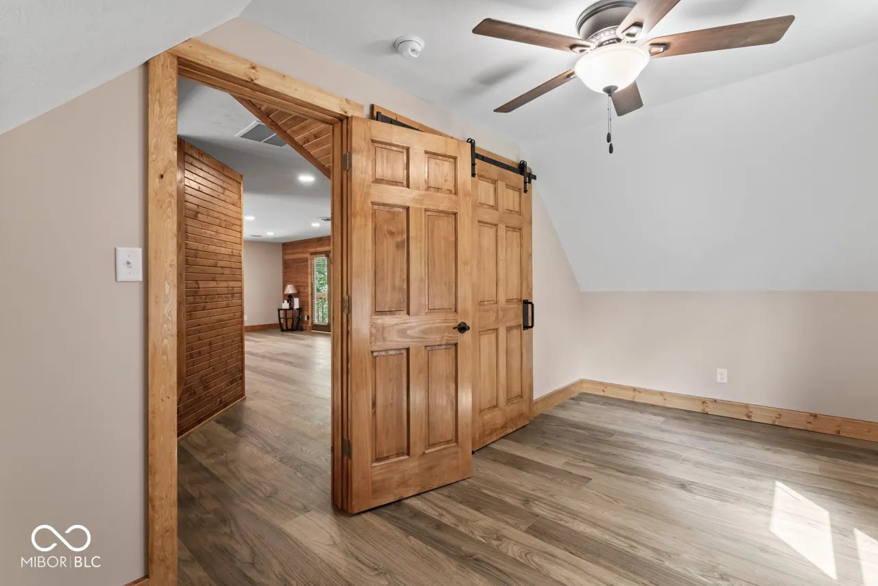 A very long winding driveway that takes you over the Little Blue River to your new cabin home on just under 30 beautiful, wooded acres with 2 ponds is no longer a wish. This could be your dream home and setting. Tucked away in Henry County, you will find this unique parcel, that is heavily wooded, has 2 stocked ponds, an artesian well, several well-defined trails, abundant wildlife and vegetation. A new cabin home has been constructed, 3 or 4 bedrooms, 2 full baths, large open living space on the main level with vaulted ceilings, ample windows, and a floor to ceiling wood burning fireplace. This home has a rustic cabin feel, but it is new and designed to be maintenance free. You can enjoy the home and the property, but not the typical repair and upkeep of a cabin home. The main floor has 2 bedrooms, living space and dining space, open kitchen with all new stainless steel appliances. There is a bonus room (could be 4th bedroom), open loft space, walk out deck, bedroom and bath on second level. The wrap around porch overlooks the ponds and the woods providing endless enjoyment. New construction just completed in 2024. Home has never been lived in. The owner has added many upgrades and unique features. The Little Blue River runs through this property, a small waterfall added by bridge. You must view the drone videos of the property. High speed internet is available. Just over an hour to Indianapolis airport, downtown Indianapolis, Dayton airport. Location provides easy access to I-70, SR 3, SR 38, SR36, SR 1, US HWY 40